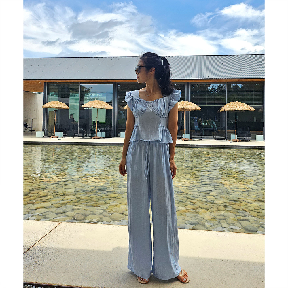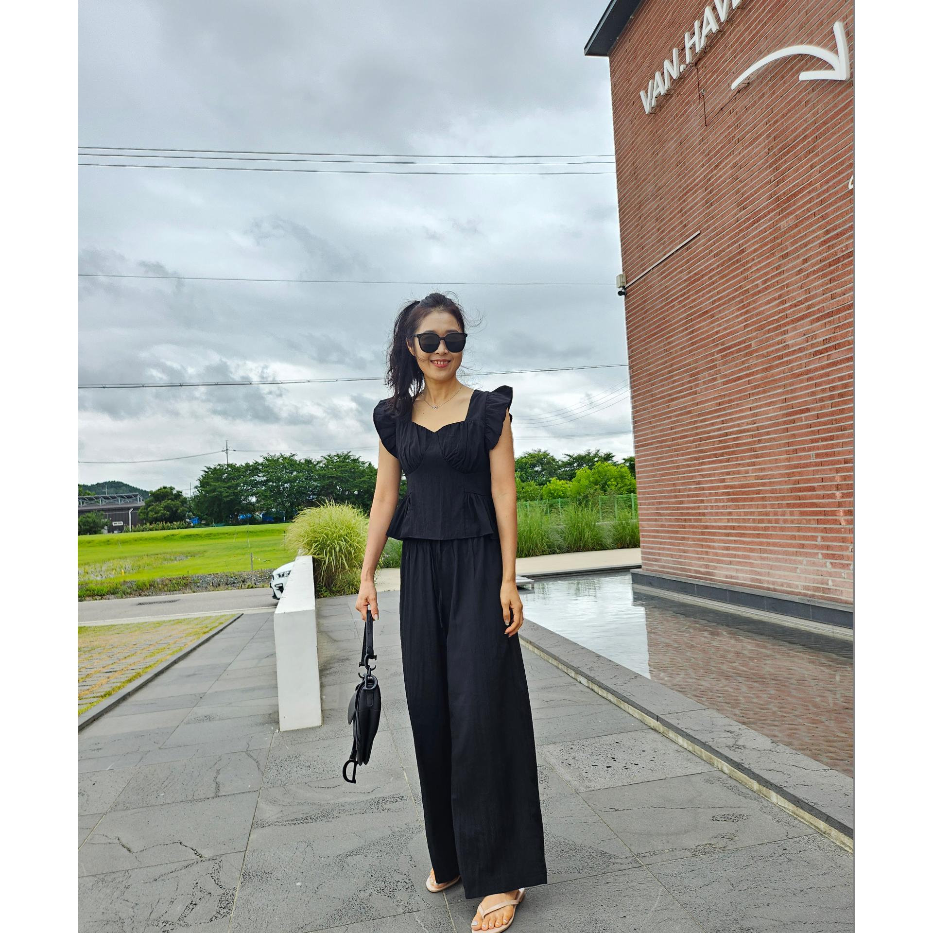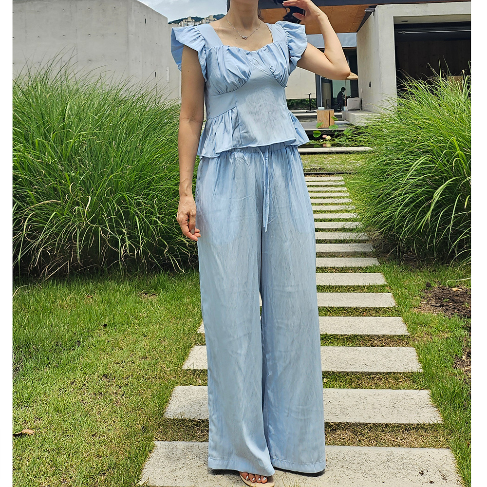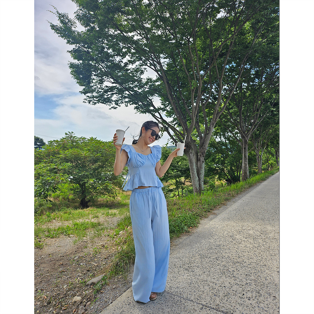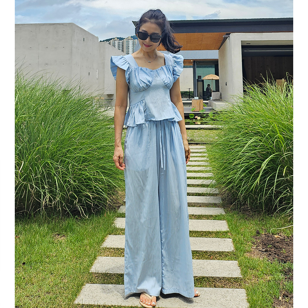 아이비 러플 나시와 와이드 팬츠 세트 투피스