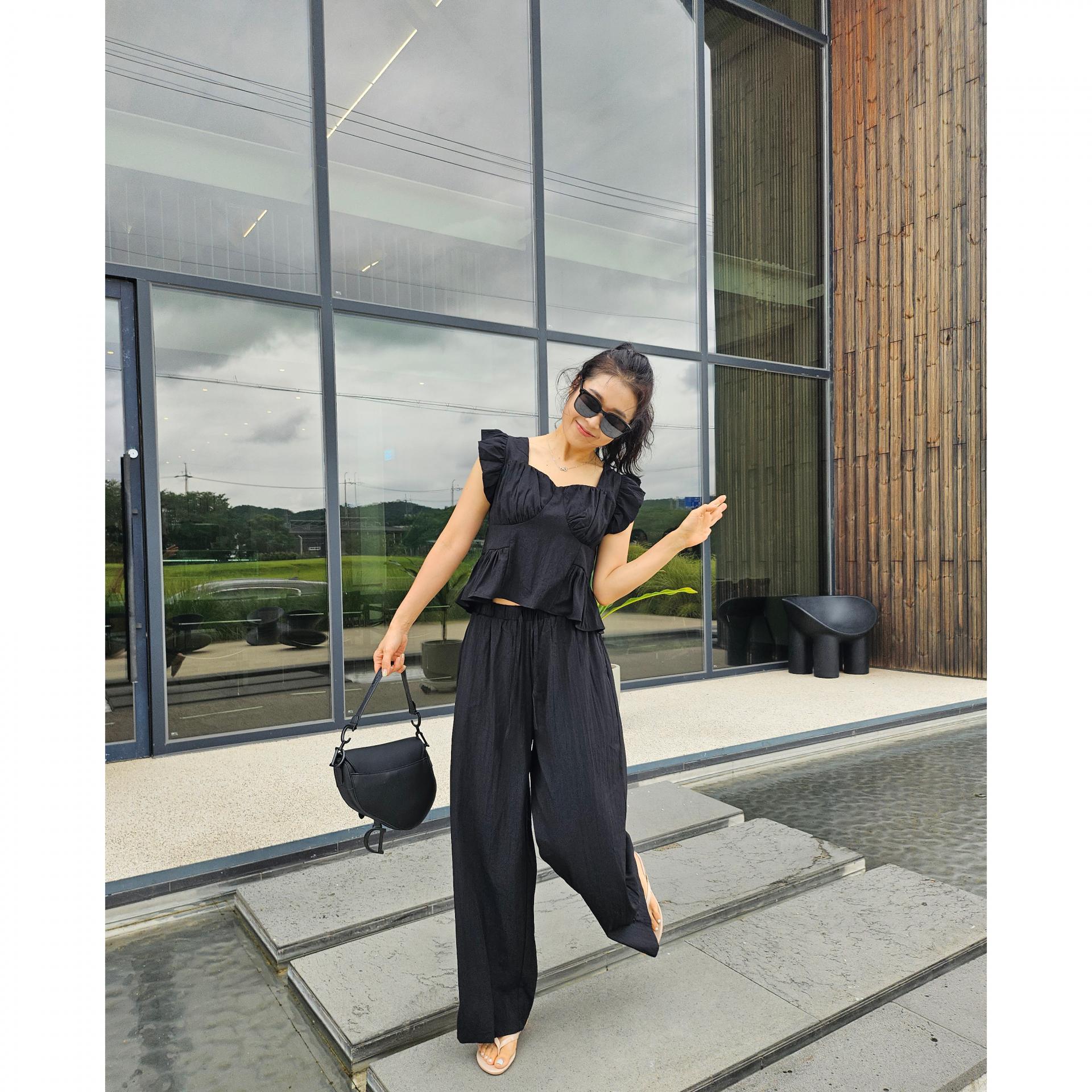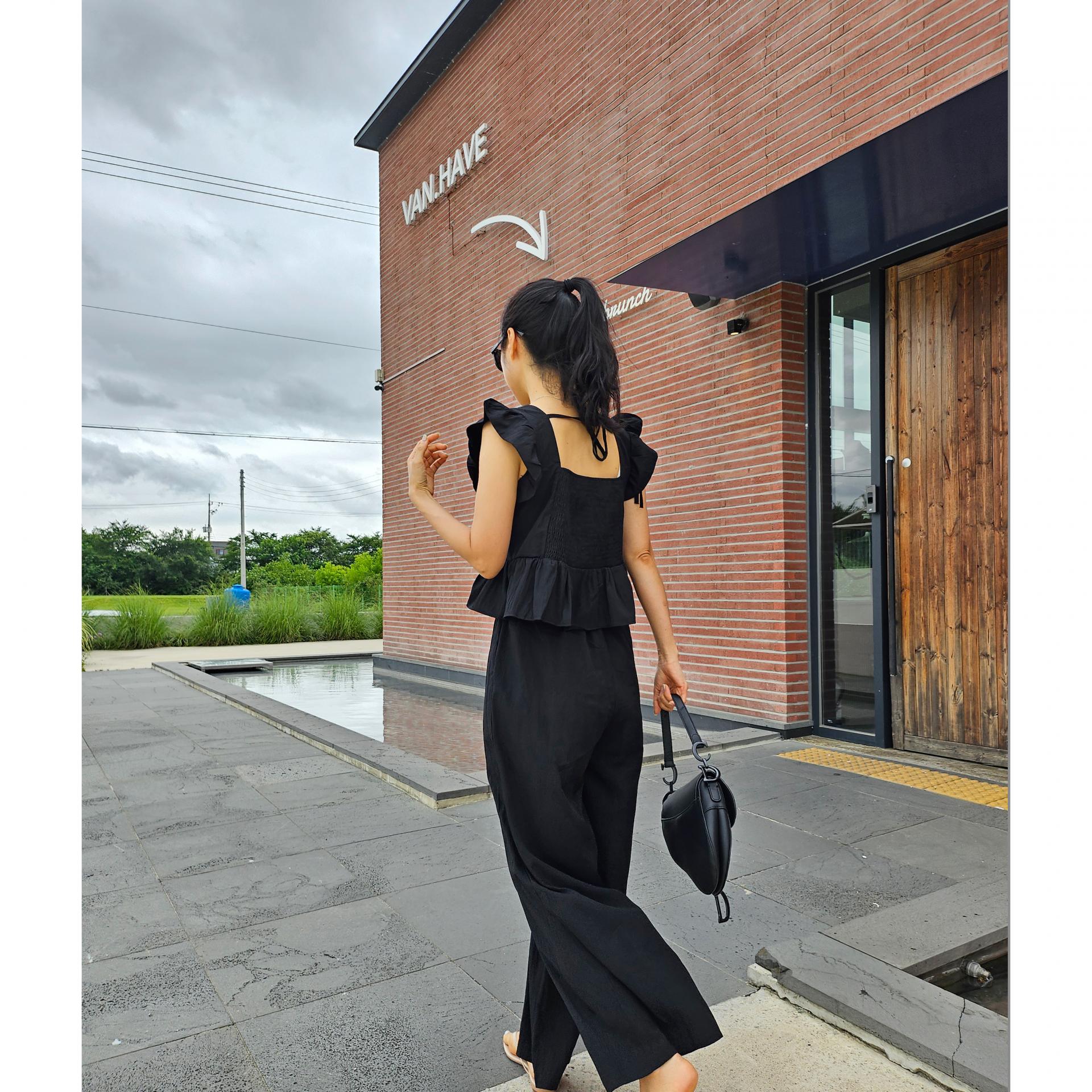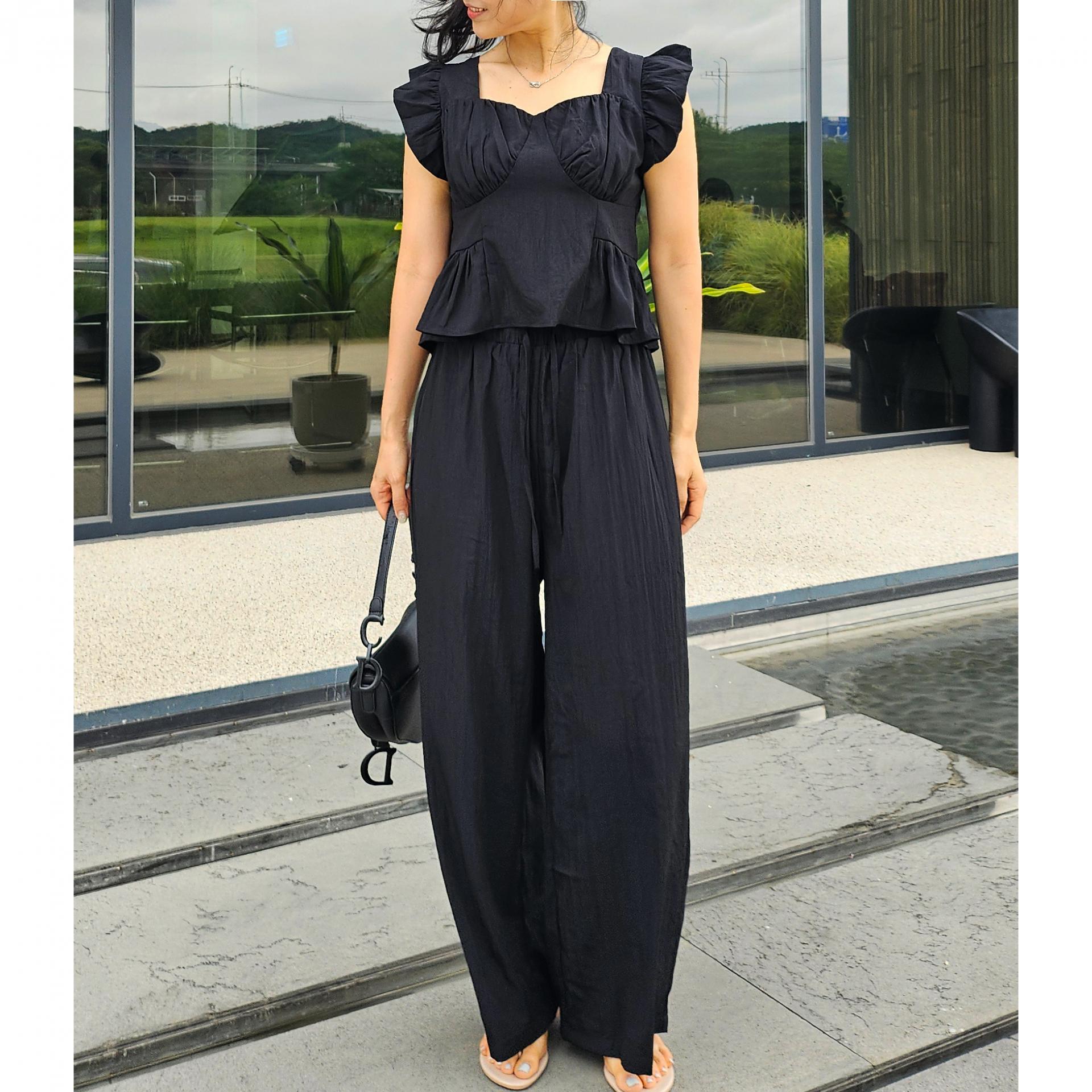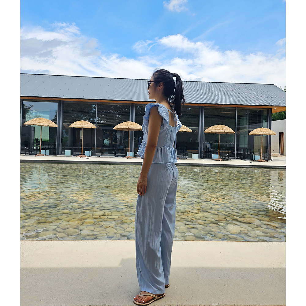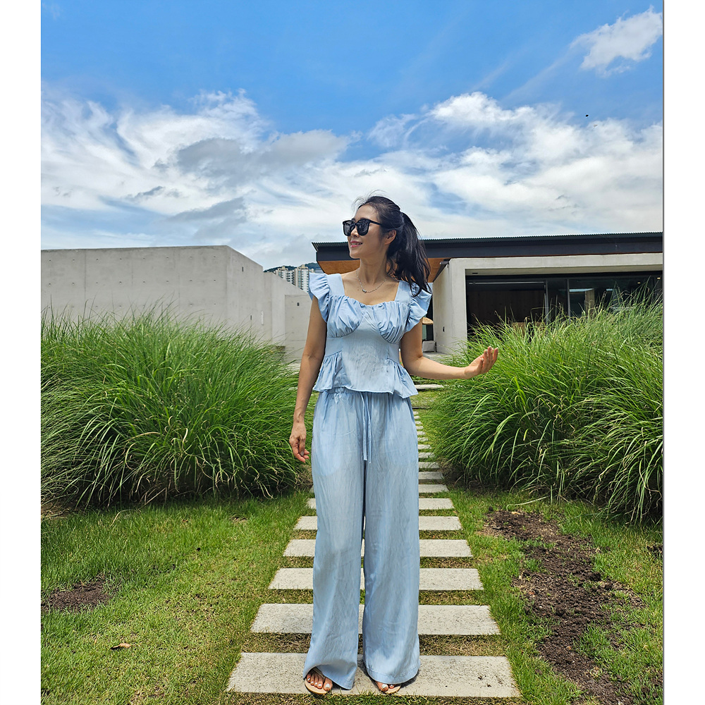 아이비 러플 나시와 와이드 팬츠 세트 투피스