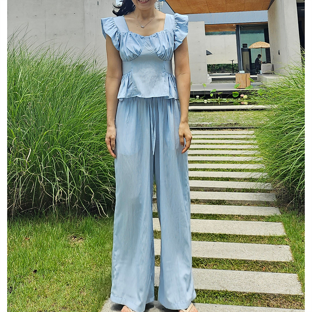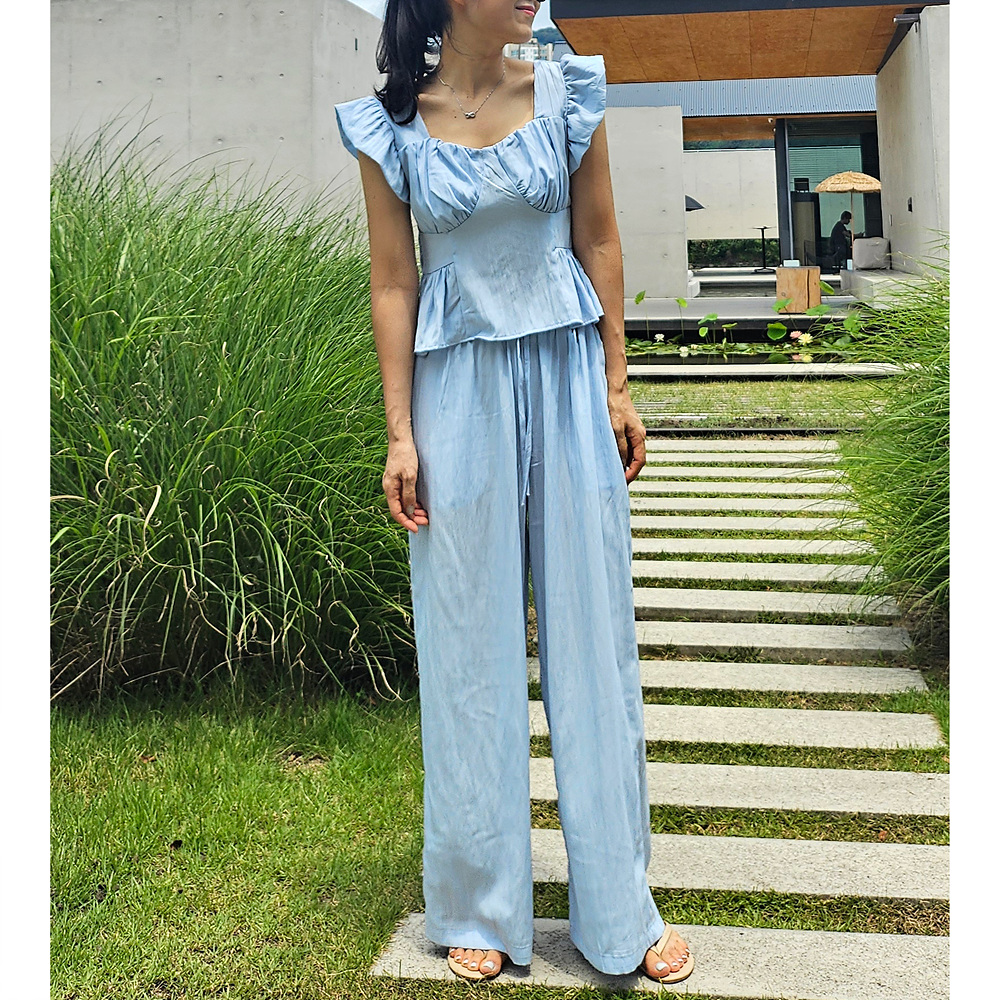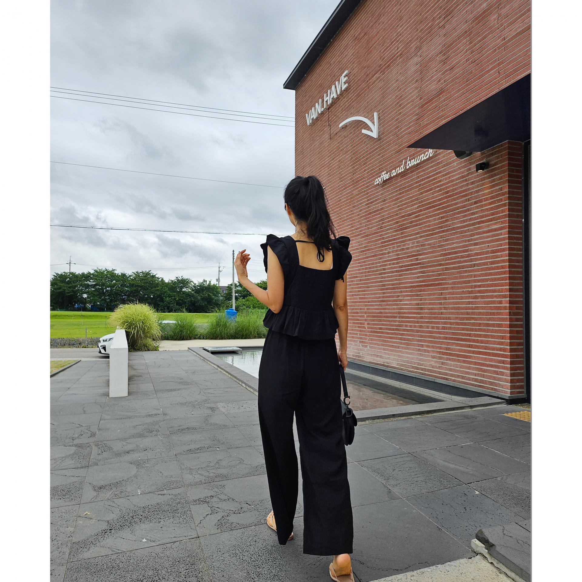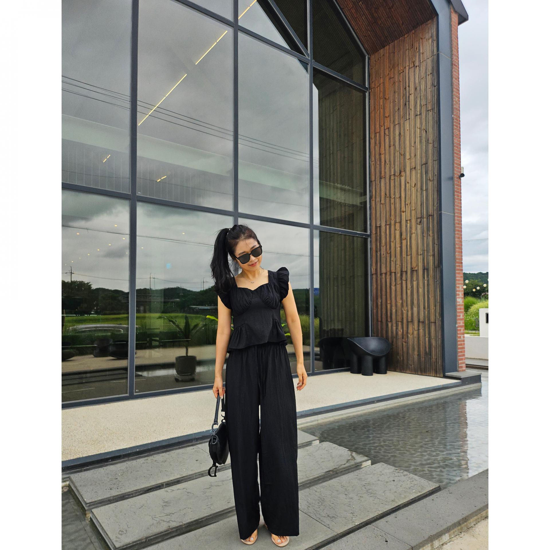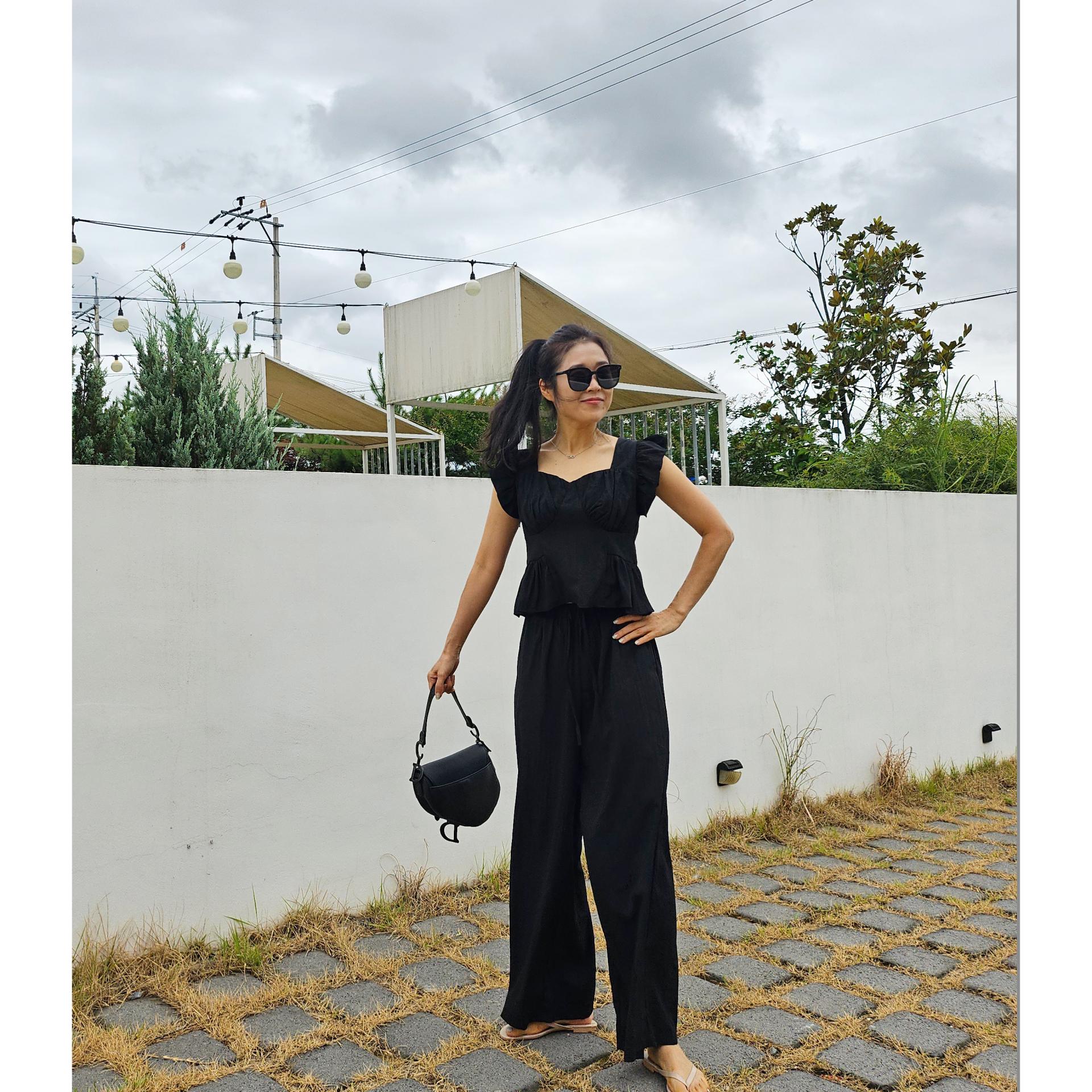 아이비 러플 나시와 와이드 팬츠 세트 투피스