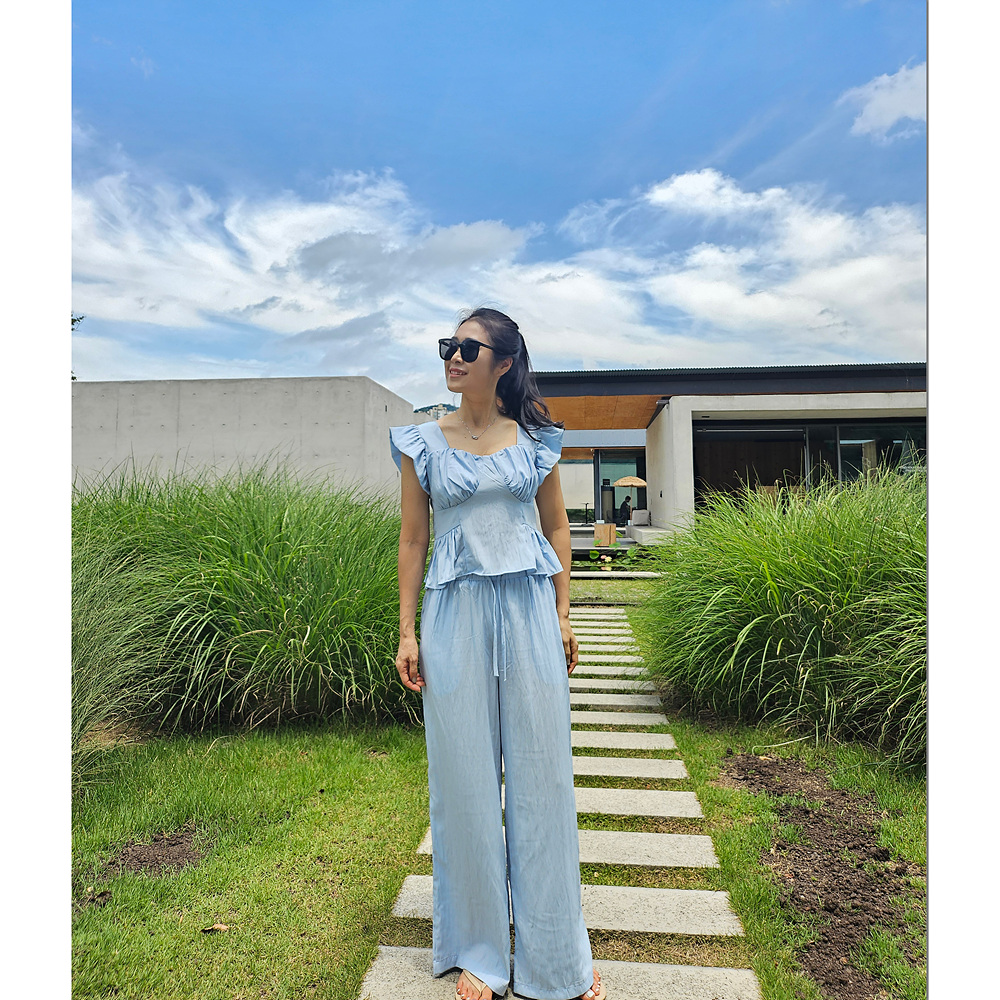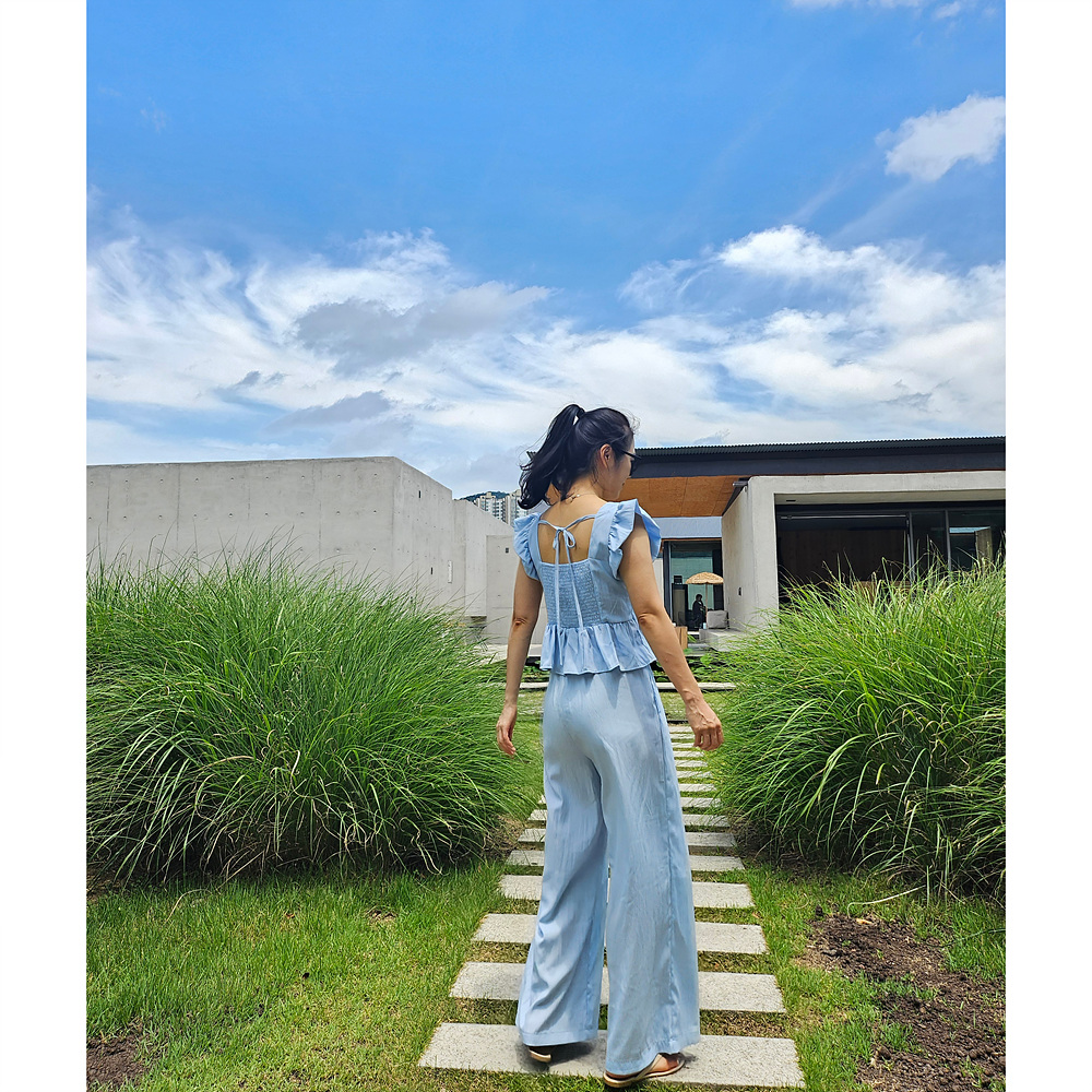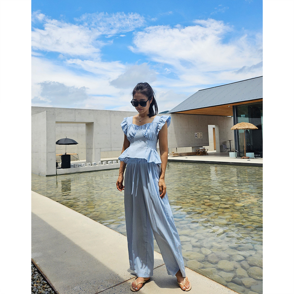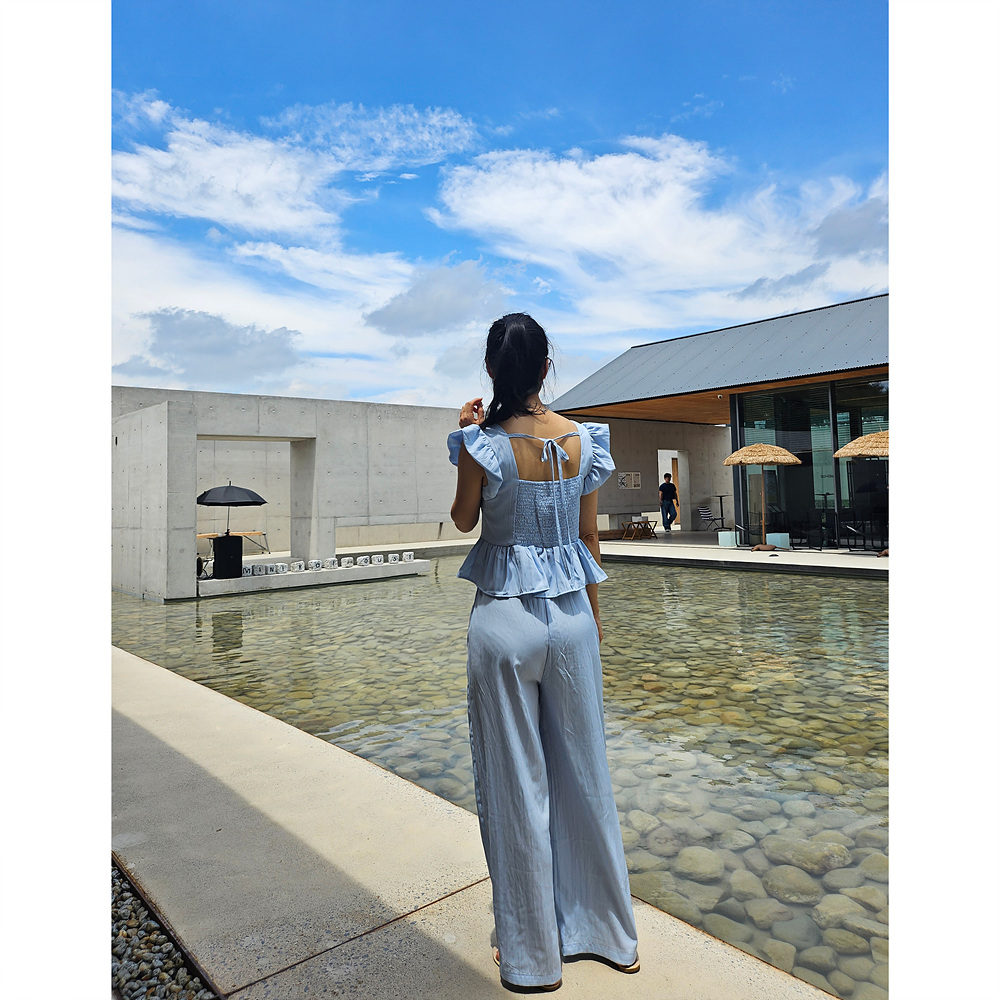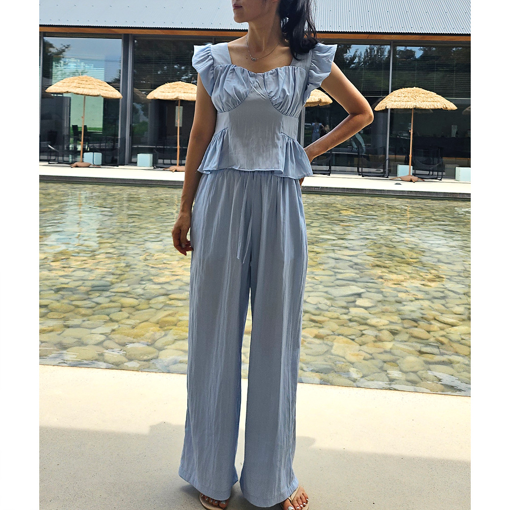 아이비 러플 나시와 와이드 팬츠 세트 투피스