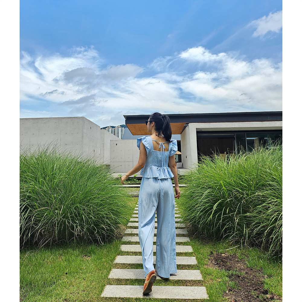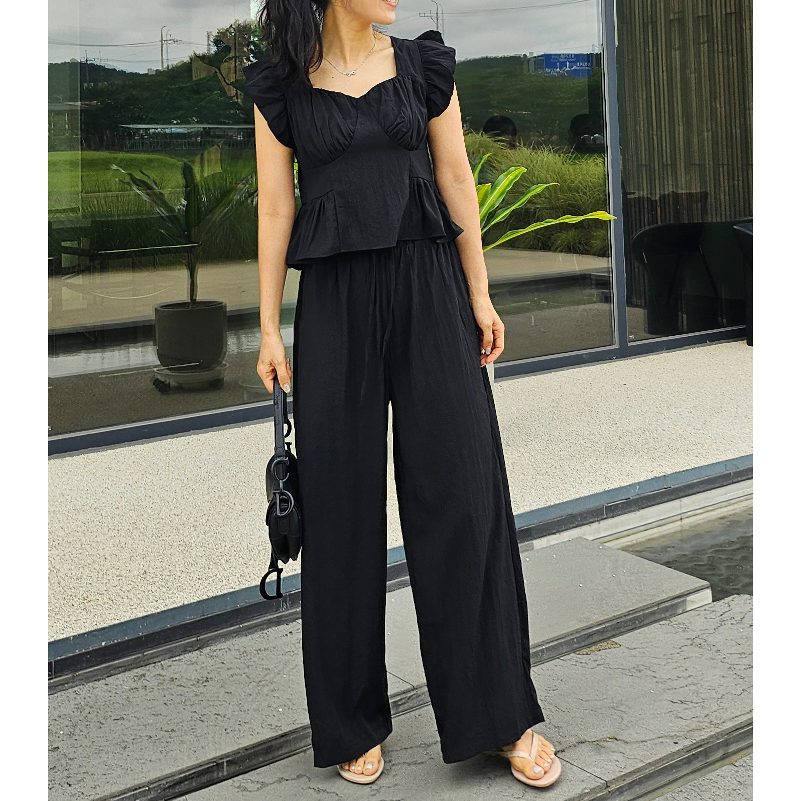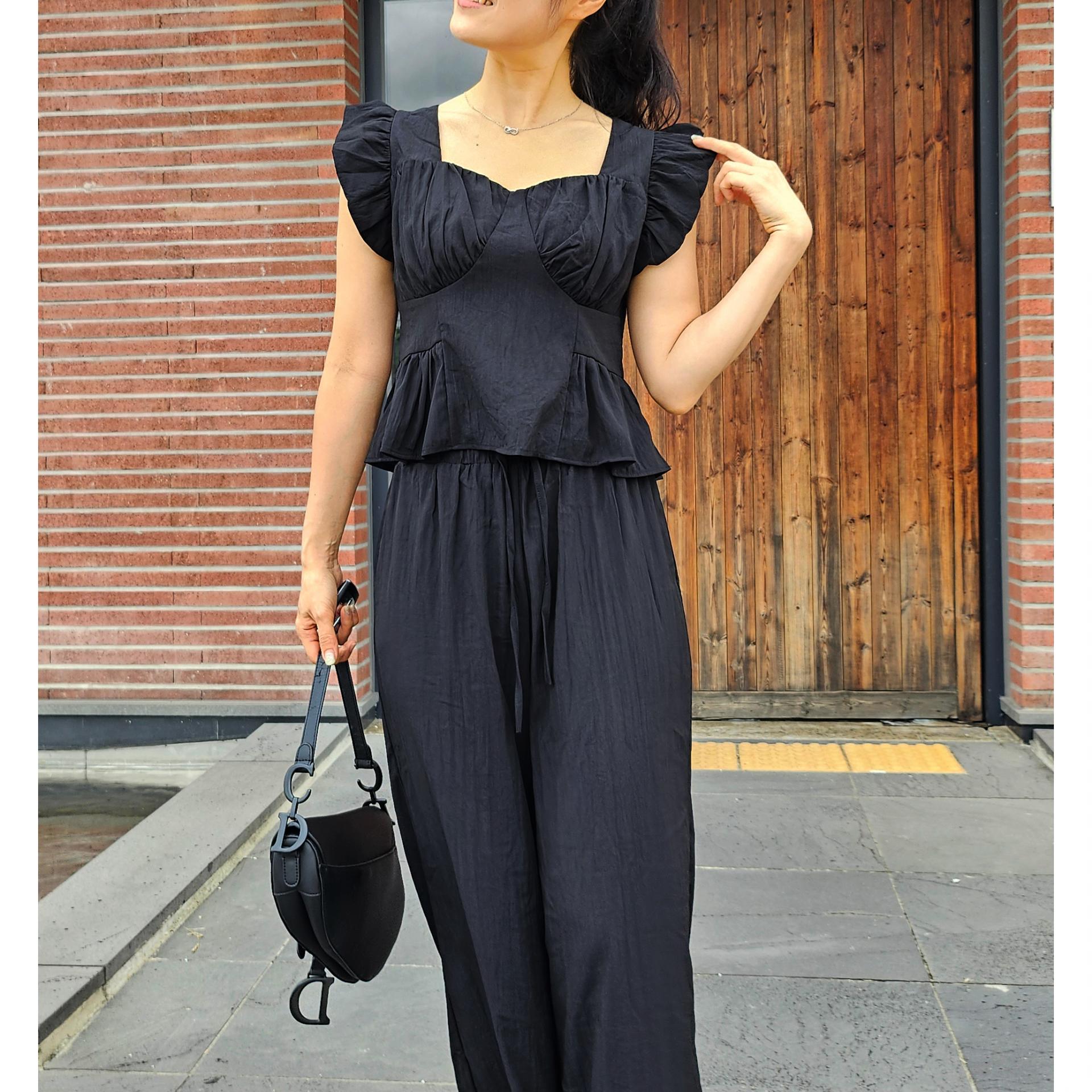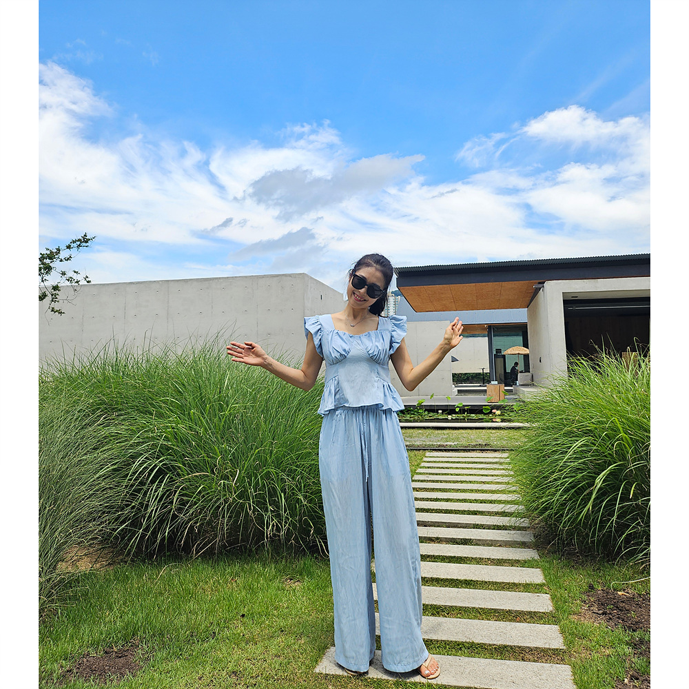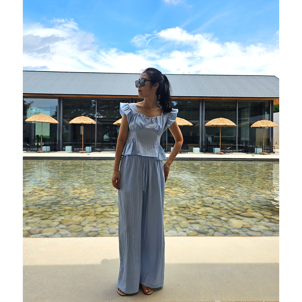 아이비 러플 나시와 와이드 팬츠 세트 투피스