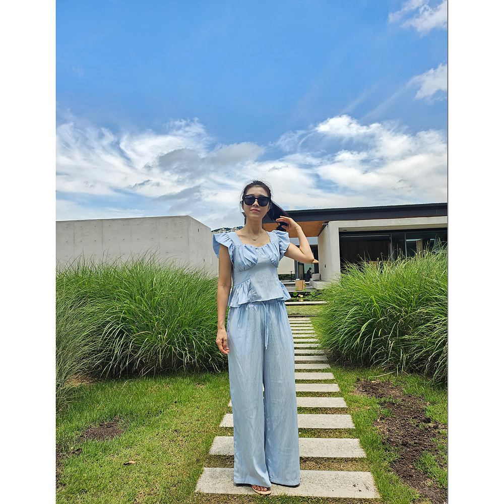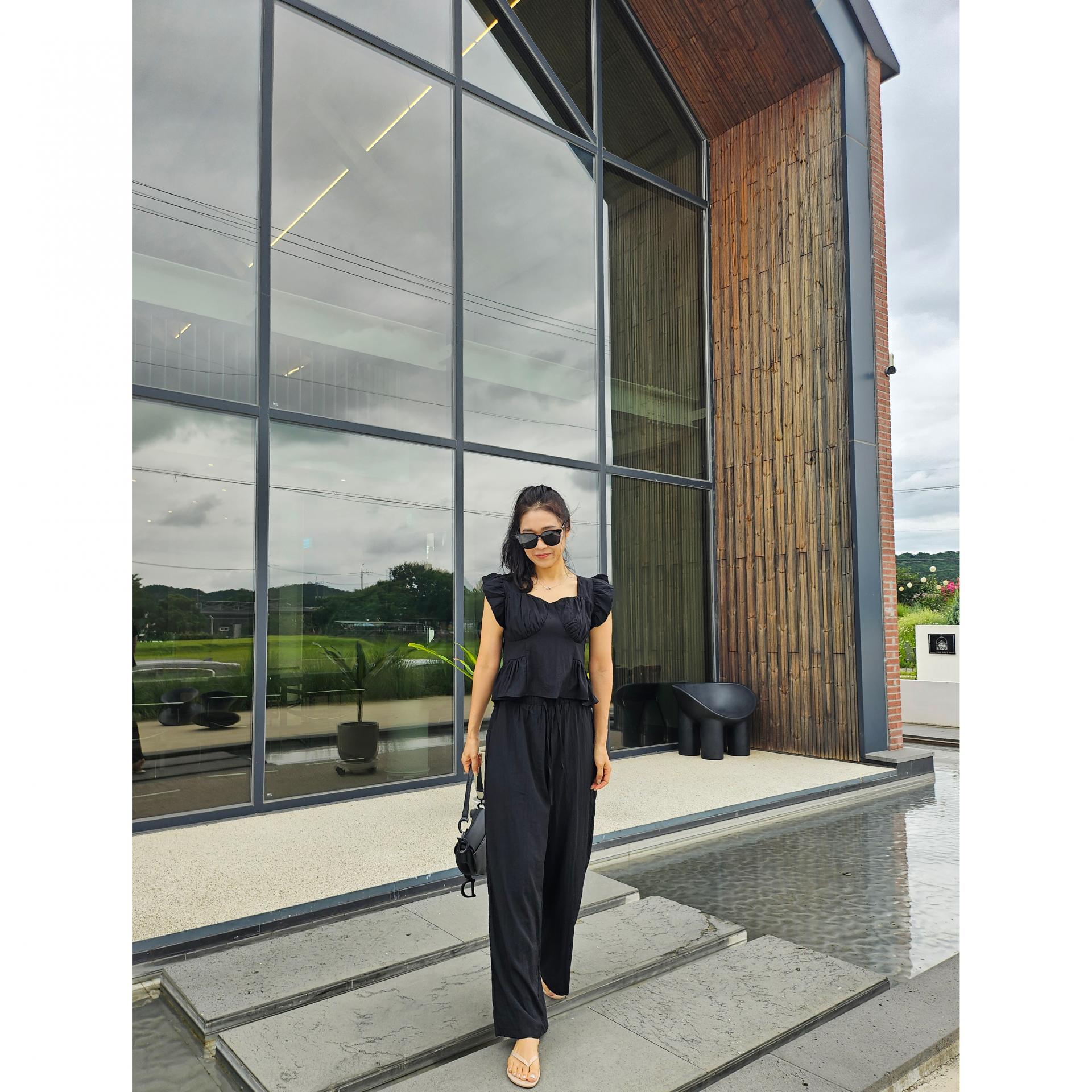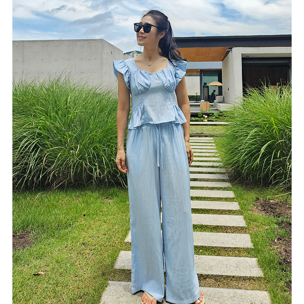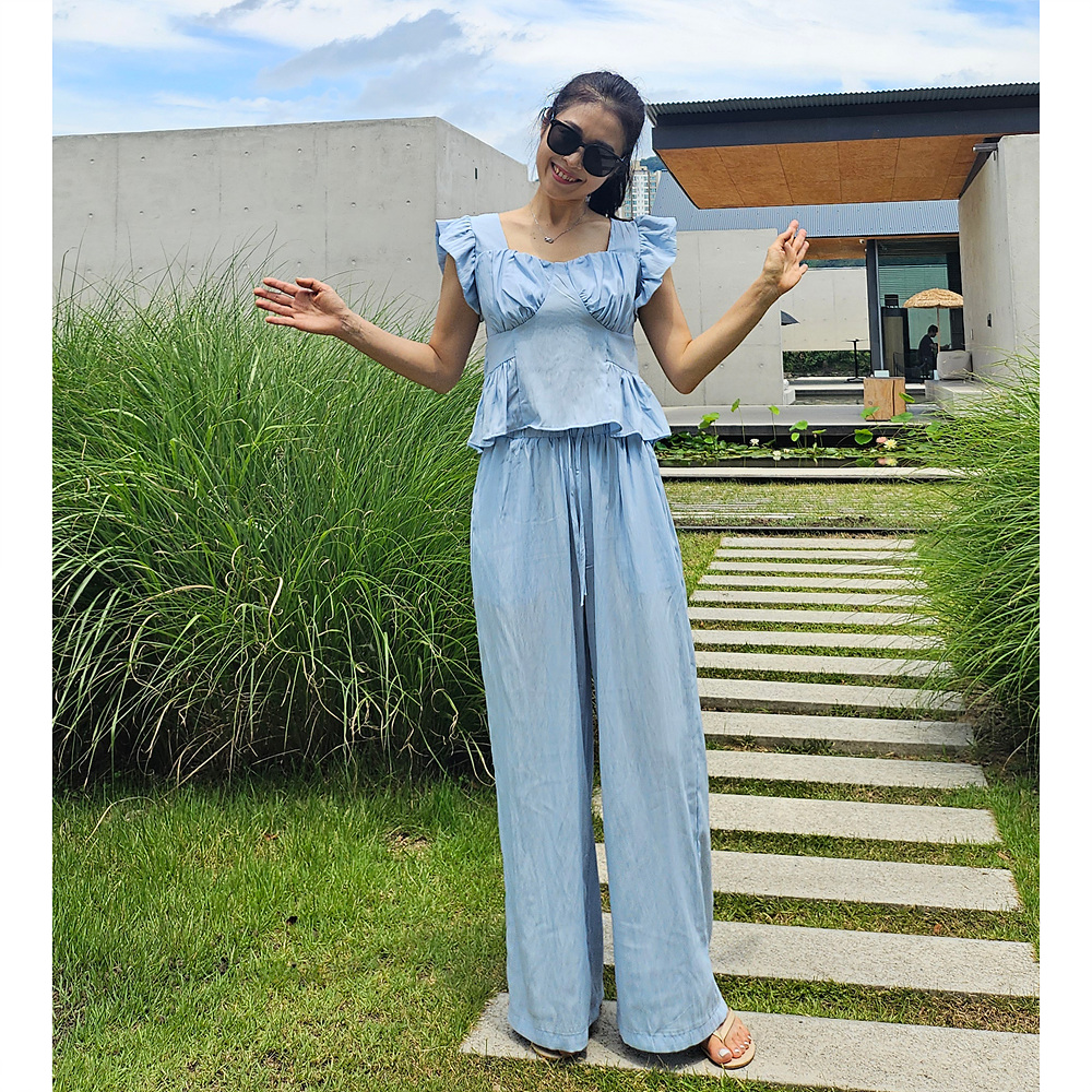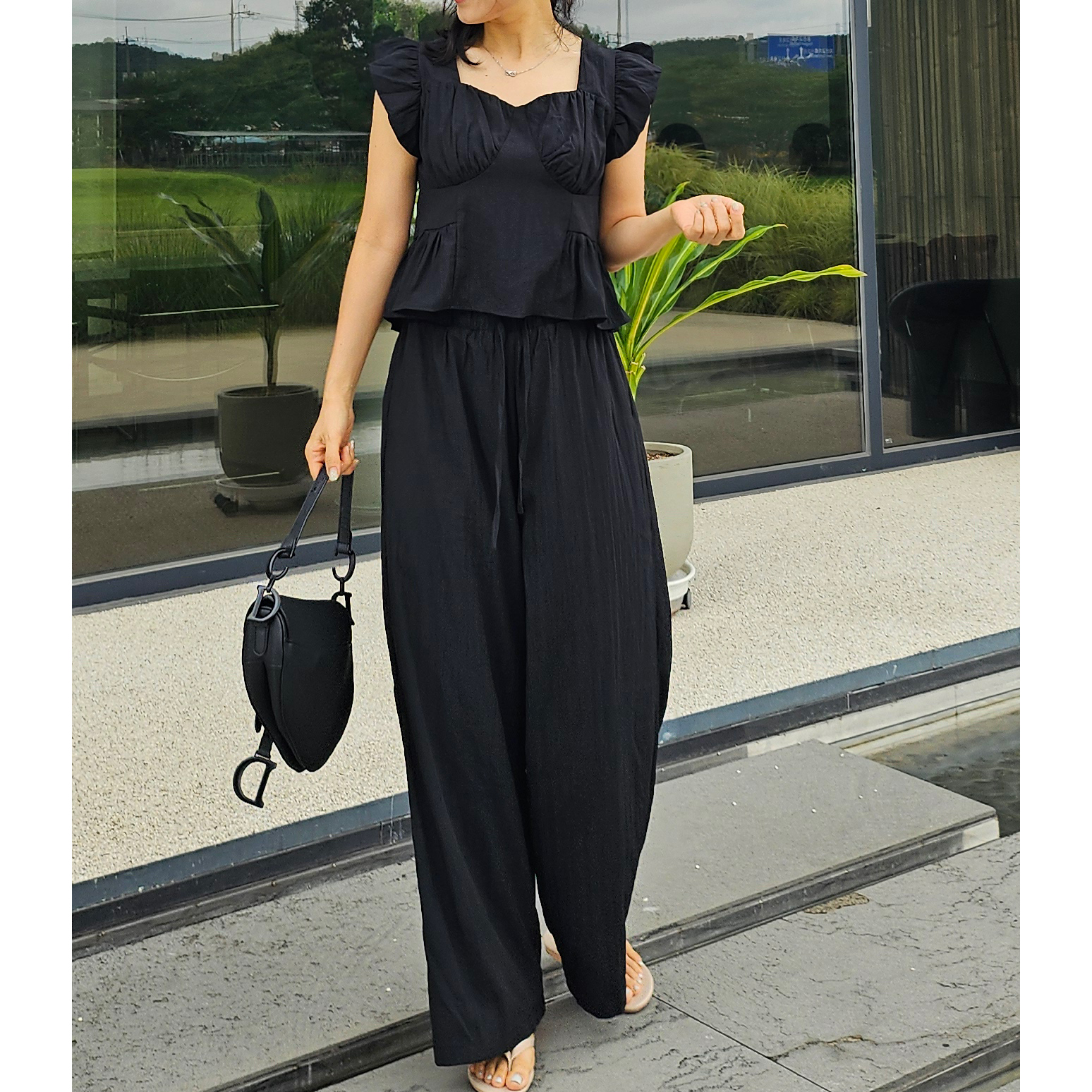 아이비 러플 나시와 와이드 팬츠 세트 투피스