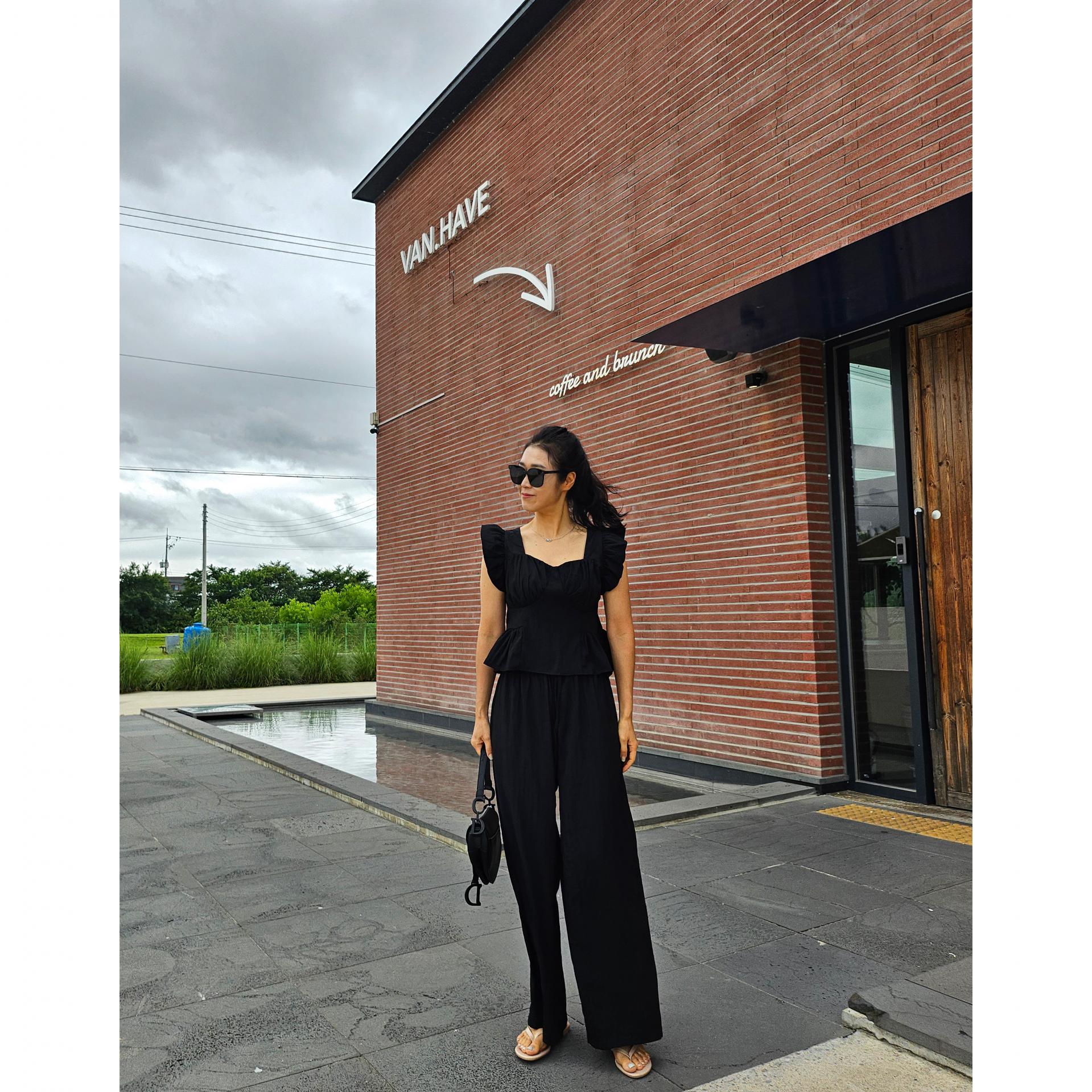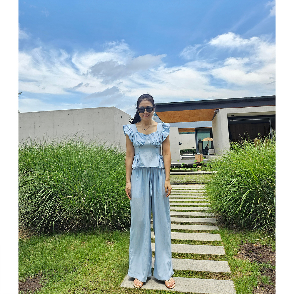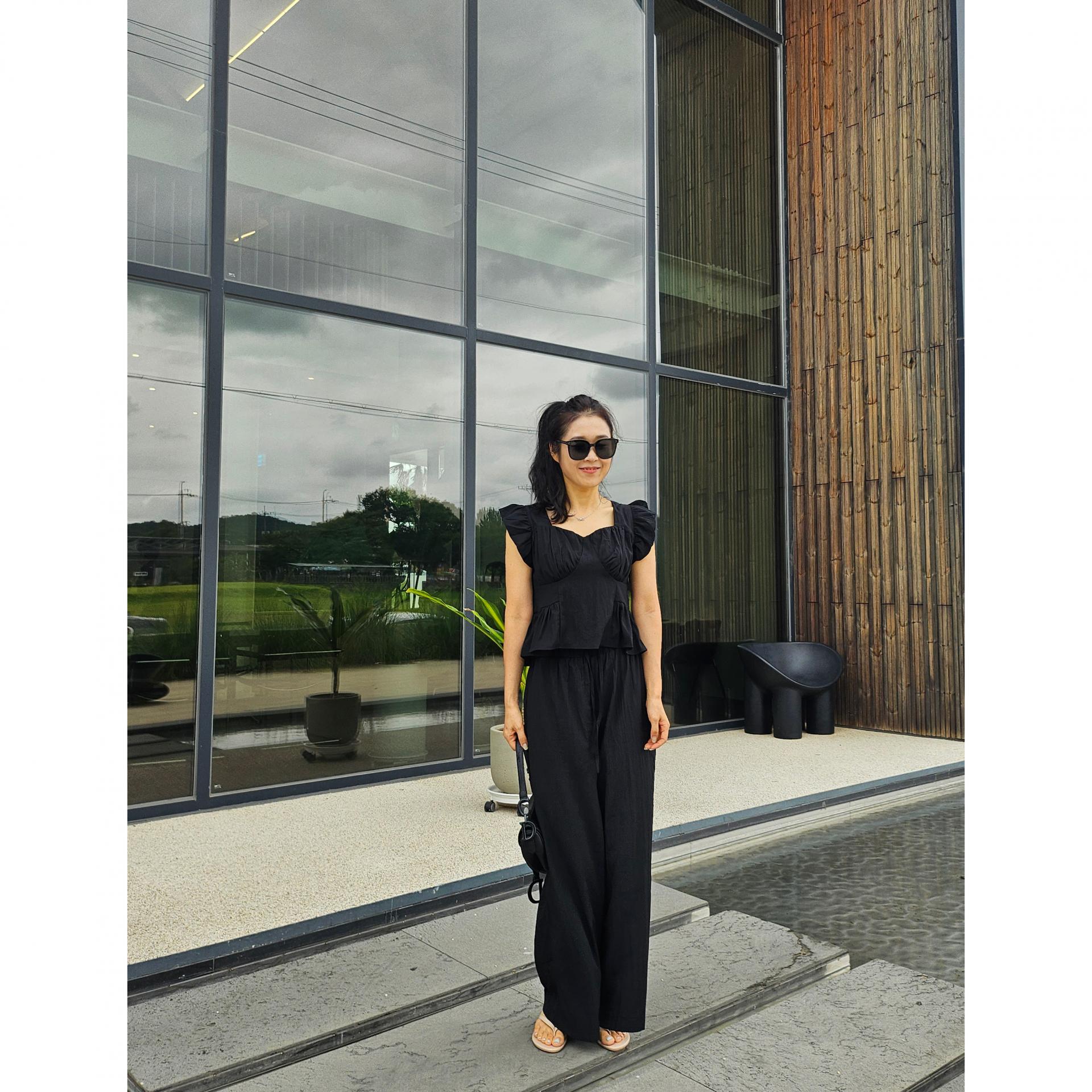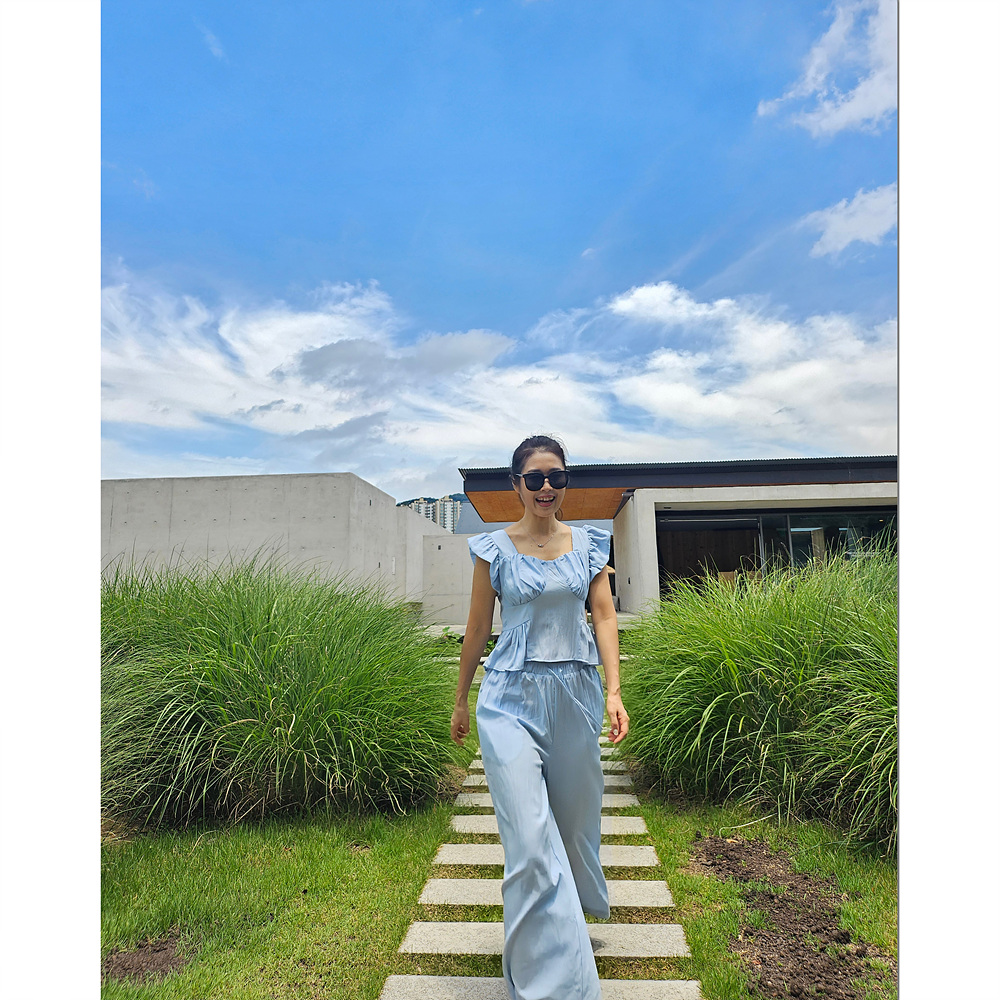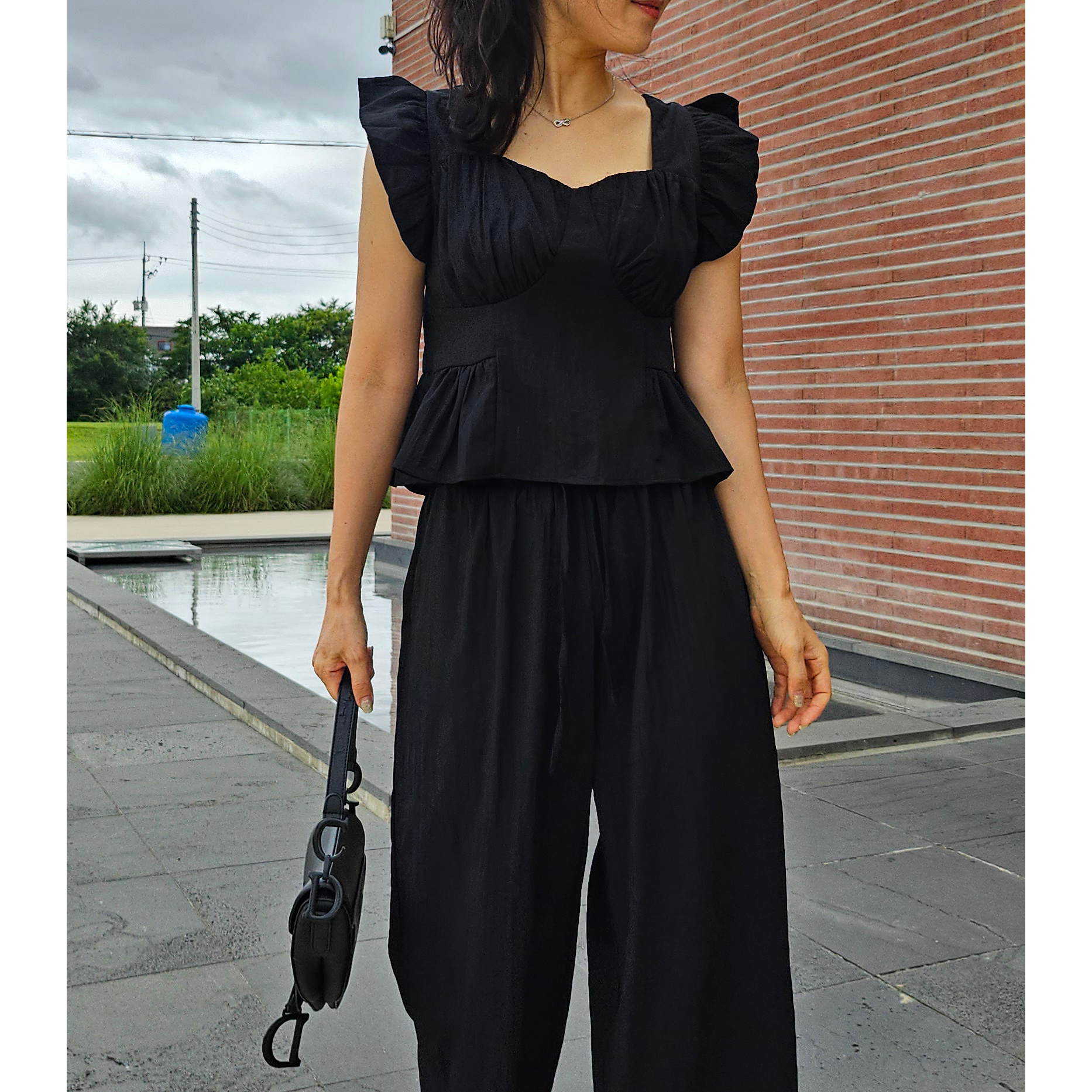 아이비 러플 나시와 와이드 팬츠 세트 투피스