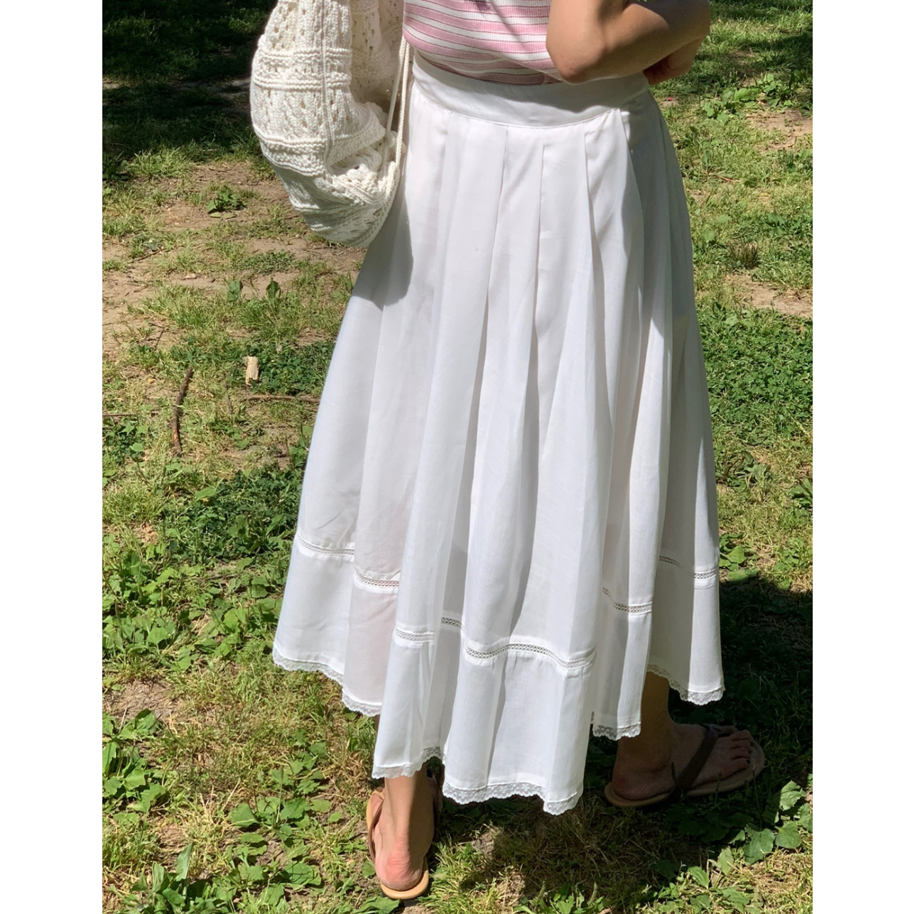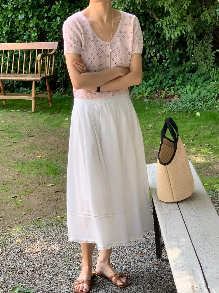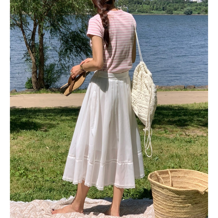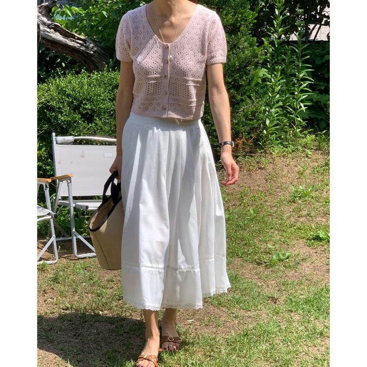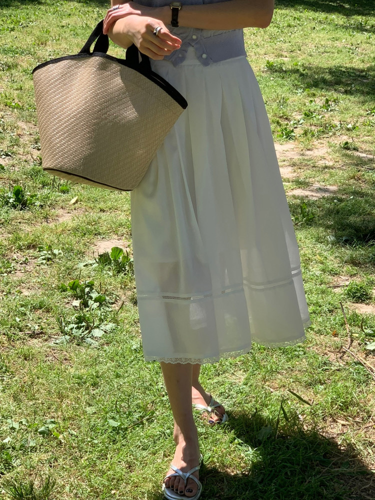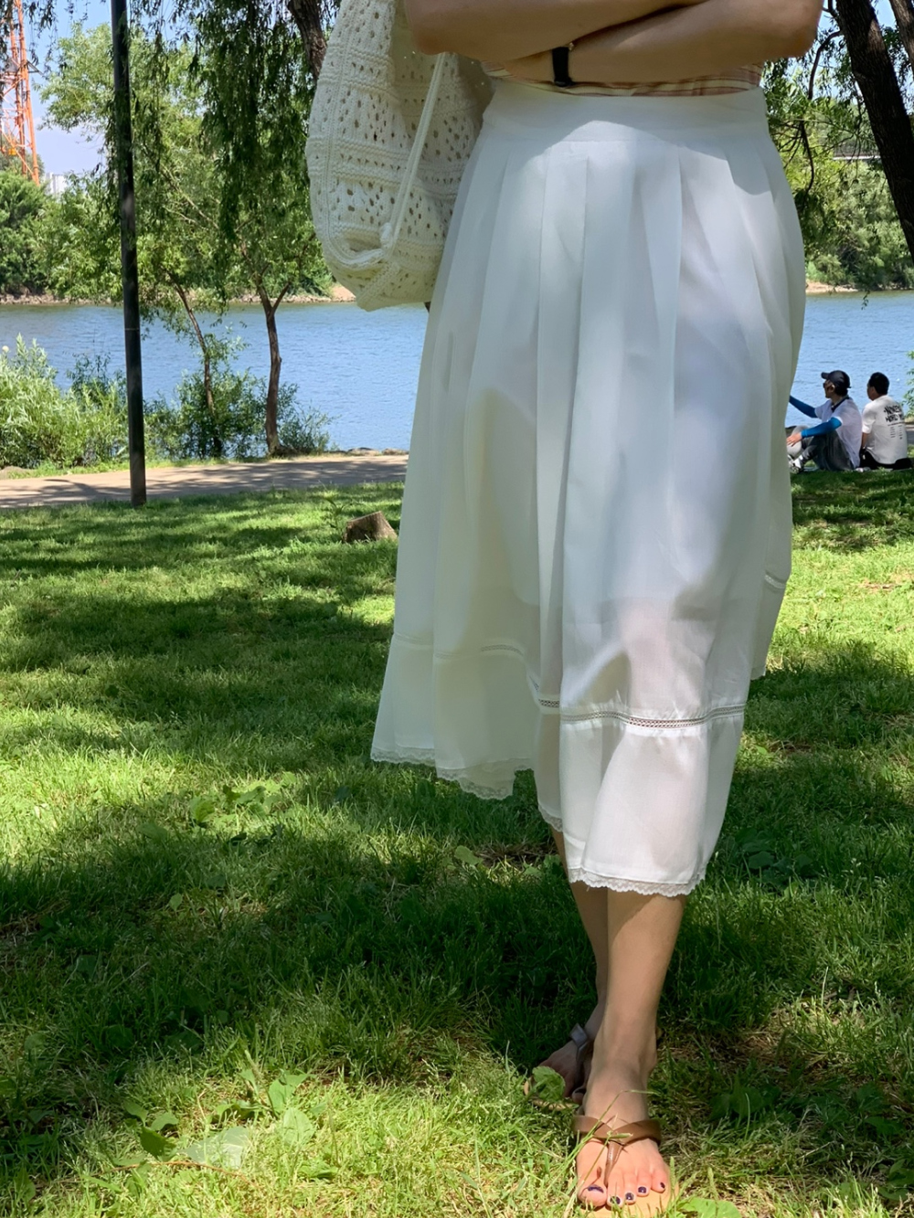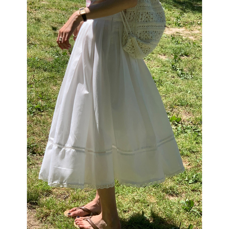 럽 코튼 훌 스커트 핀턱 화이트 텐셀 레이스 롱스커트