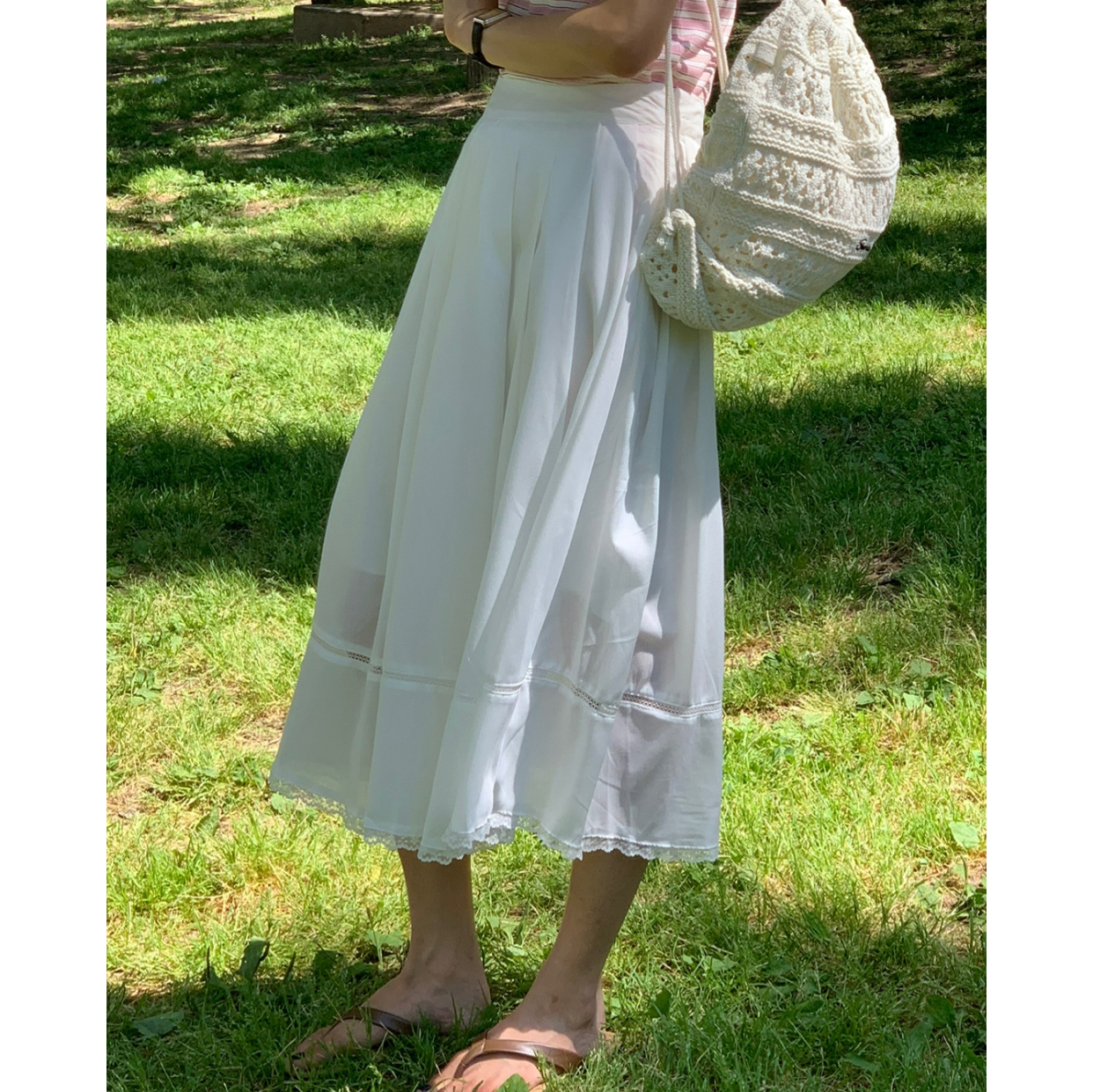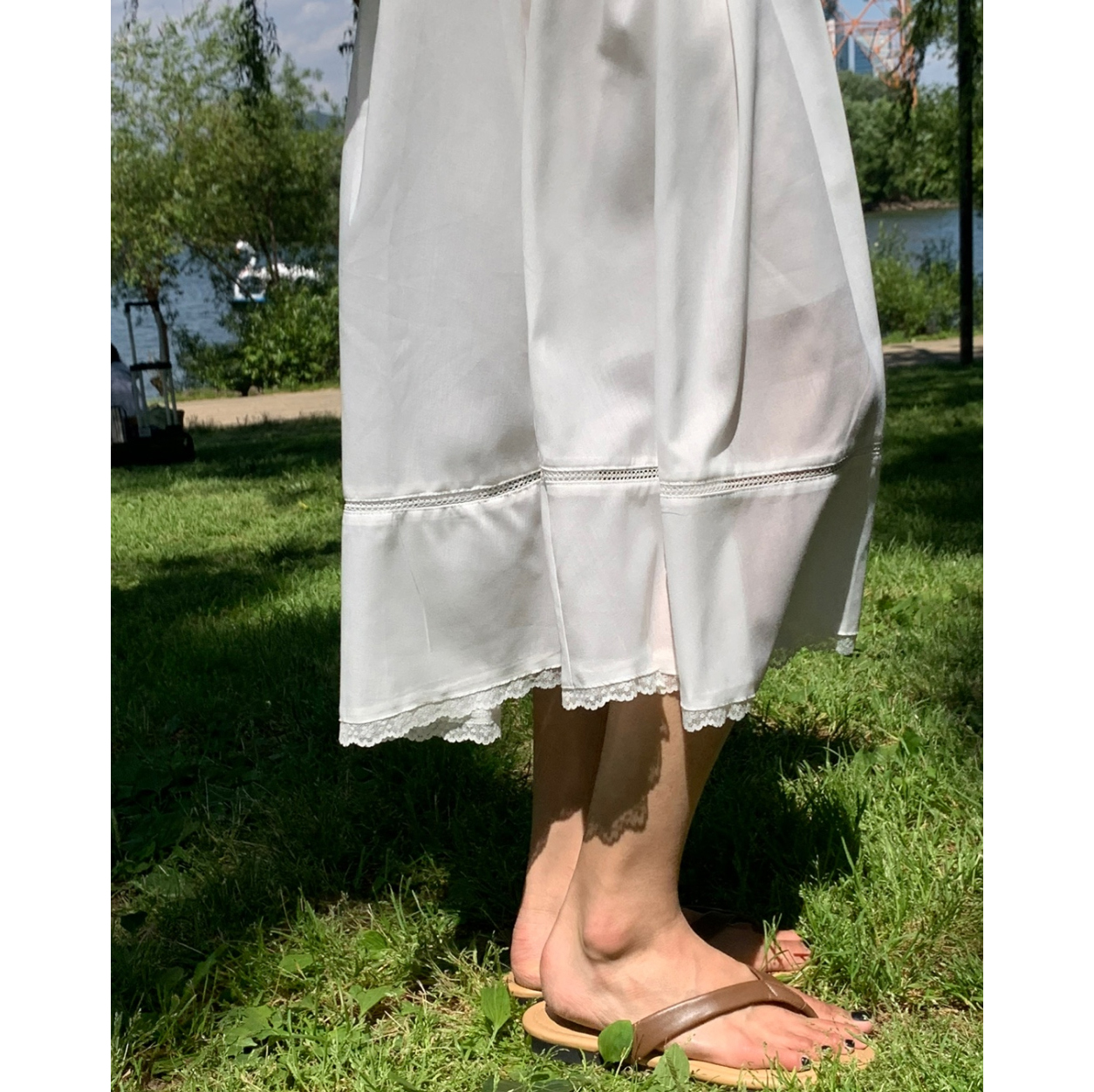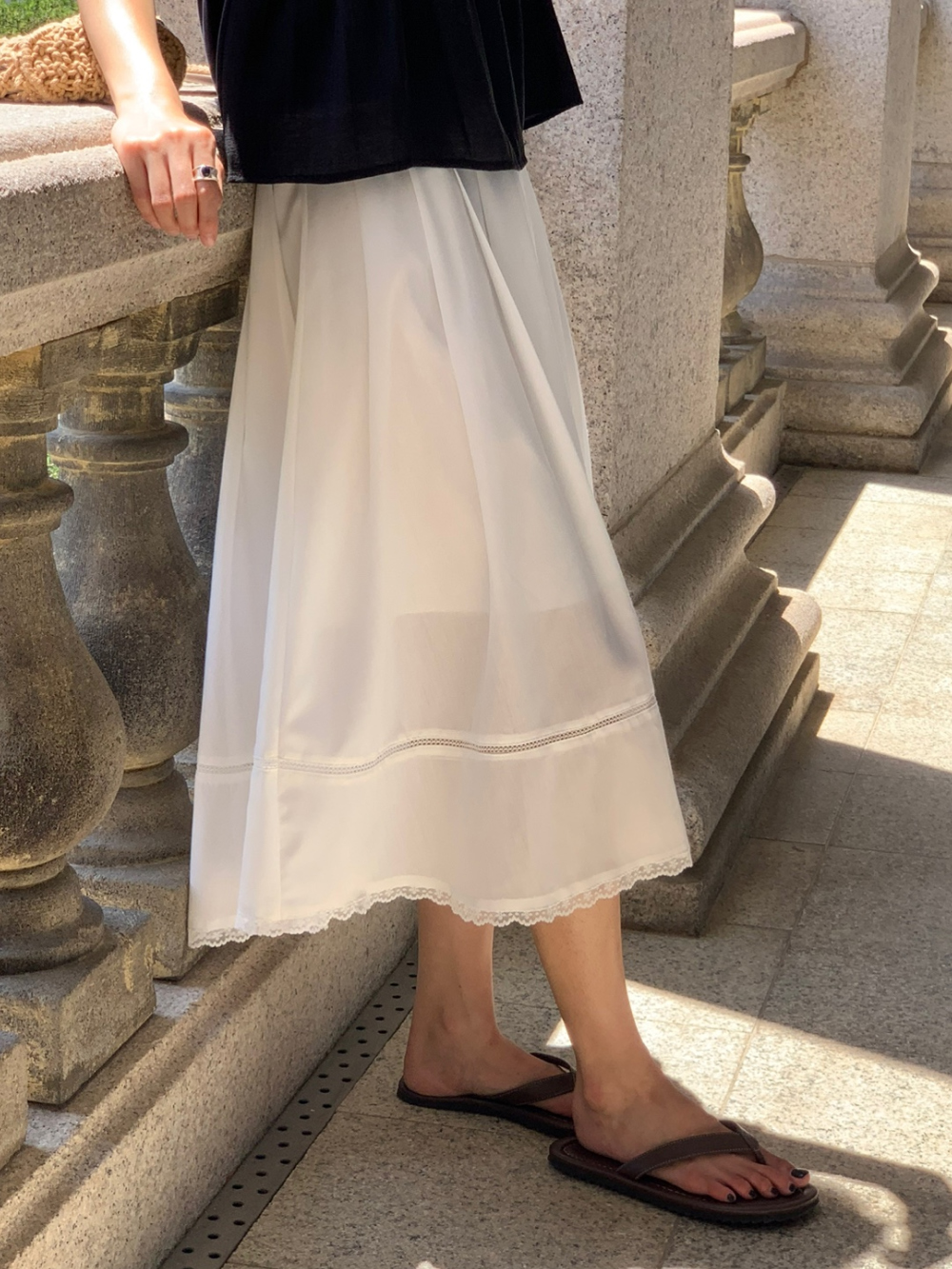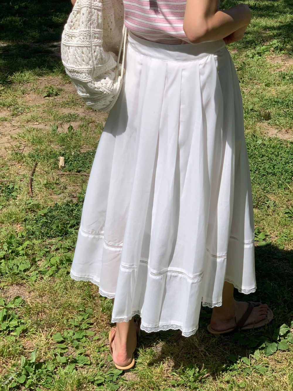 럽 코튼 훌 스커트 핀턱 화이트 텐셀 레이스 롱스커트