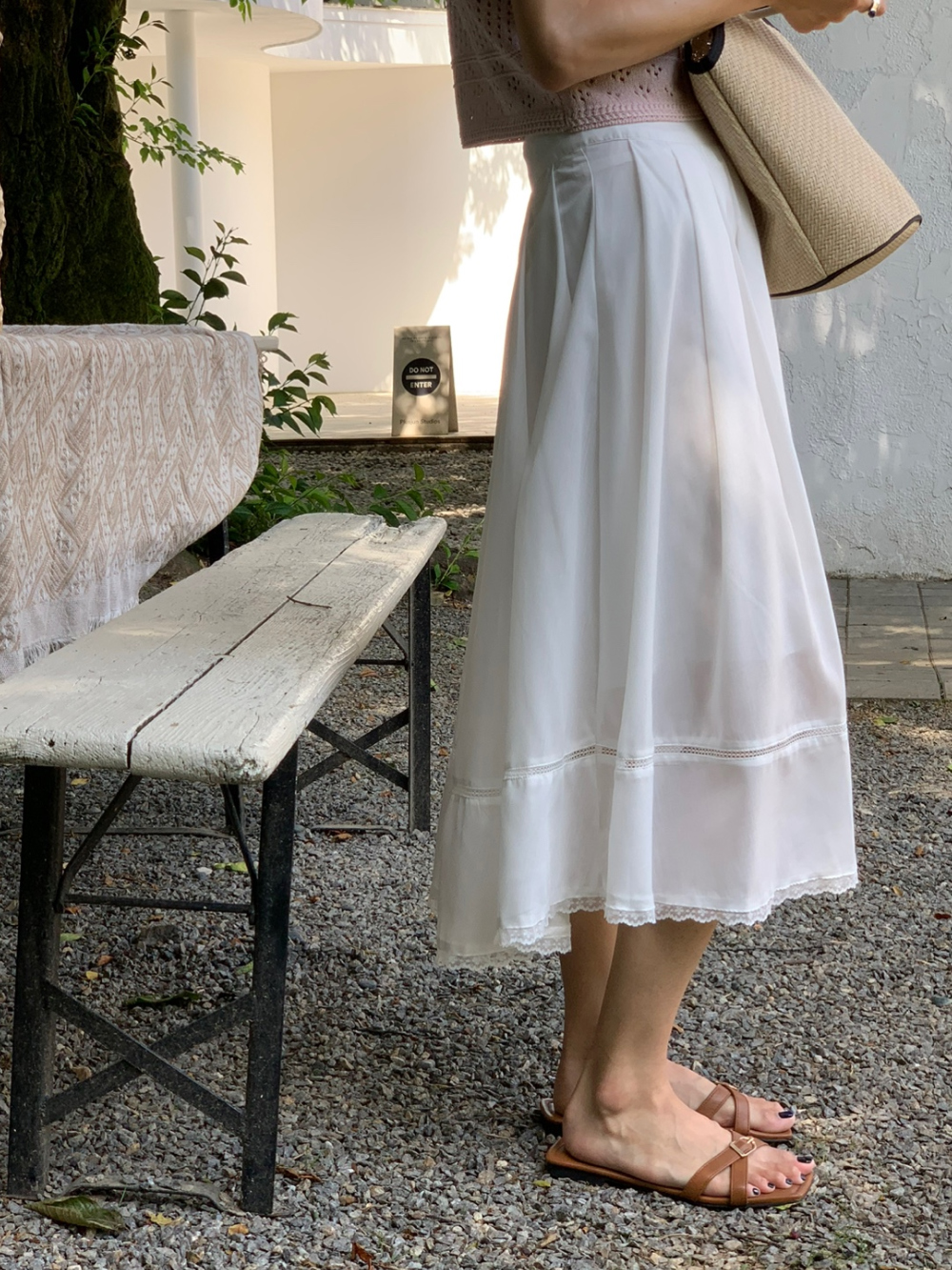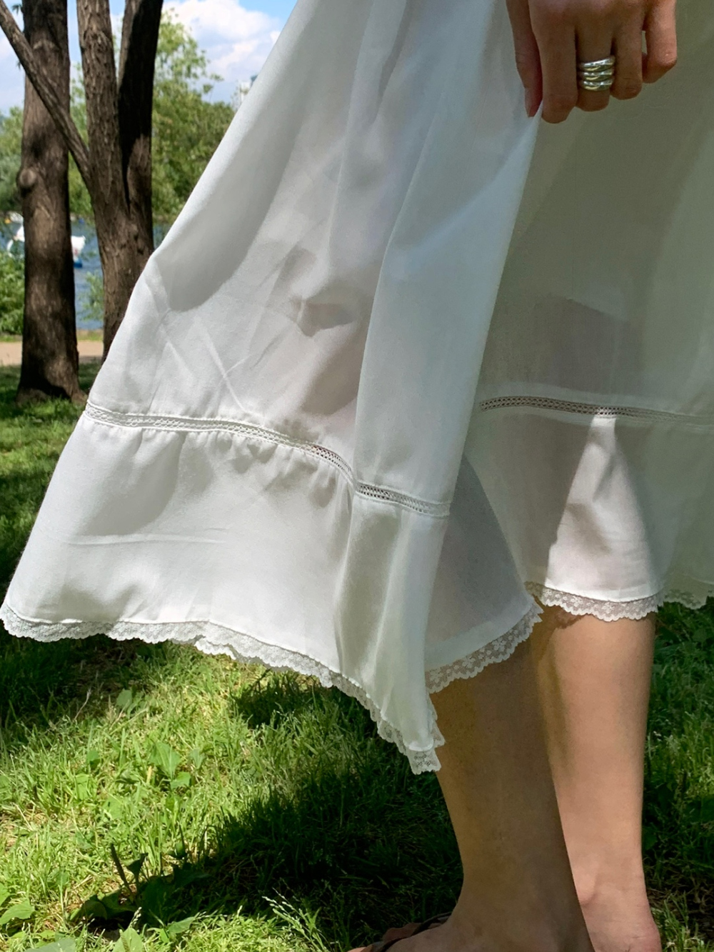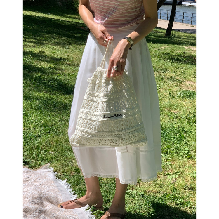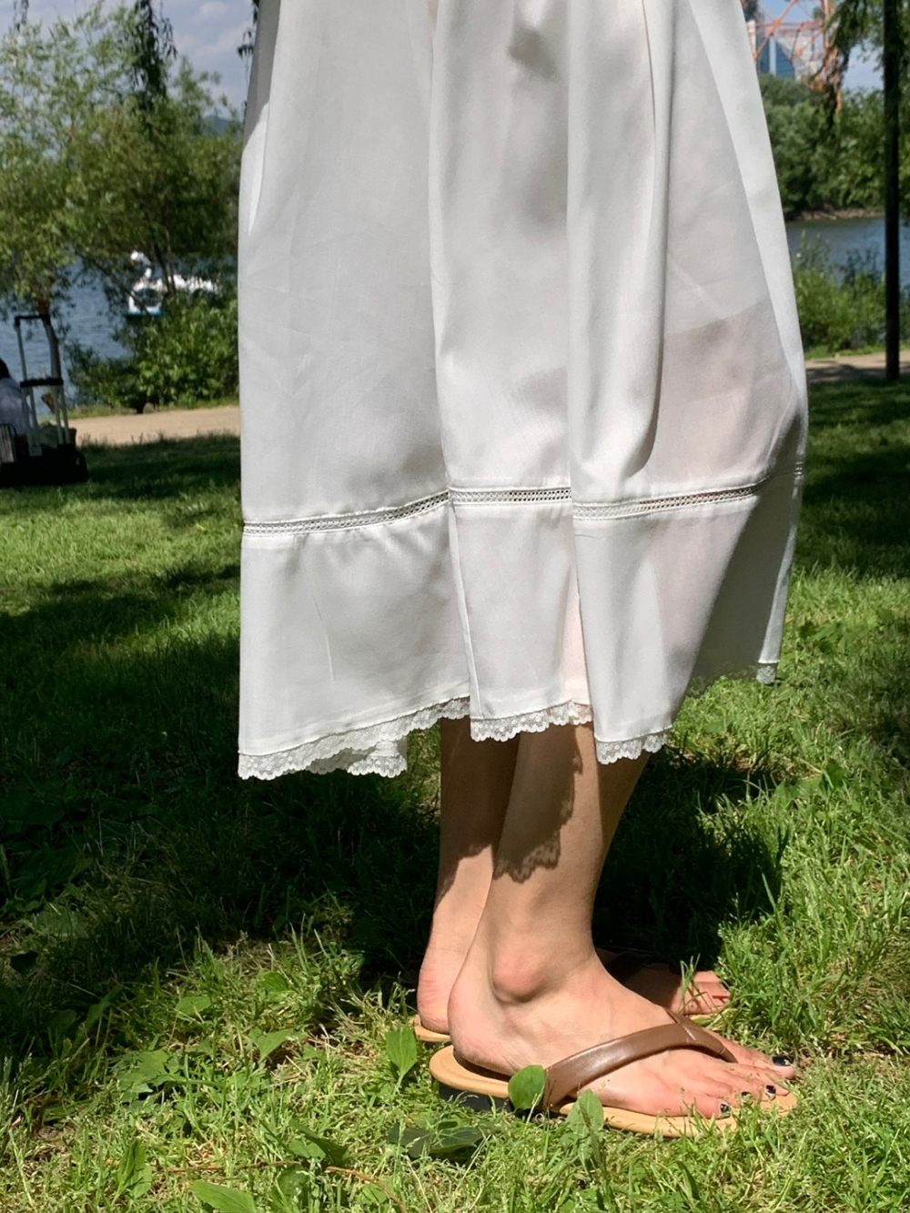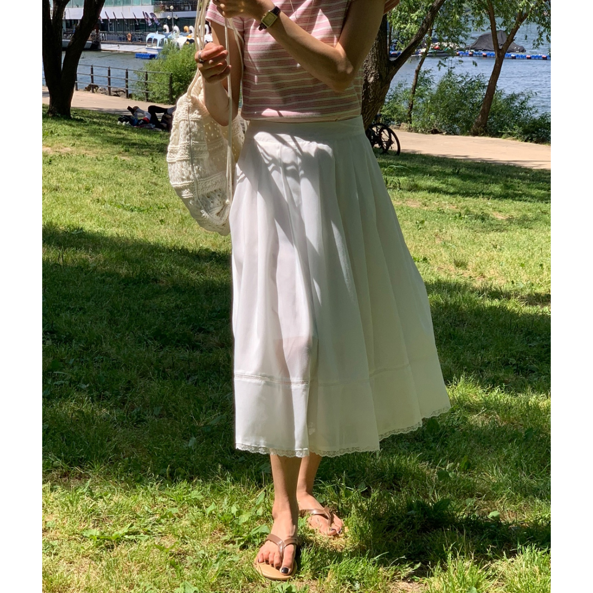 럽 코튼 훌 스커트 핀턱 화이트 텐셀 레이스 롱스커트