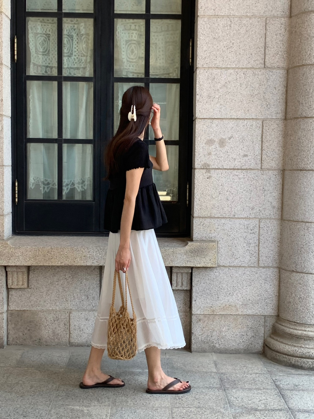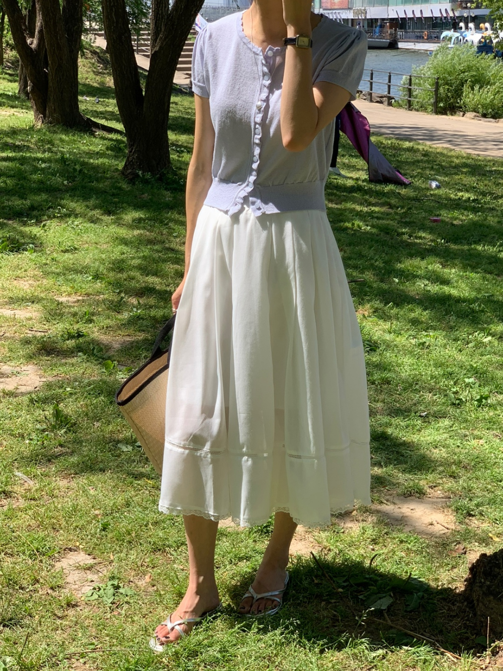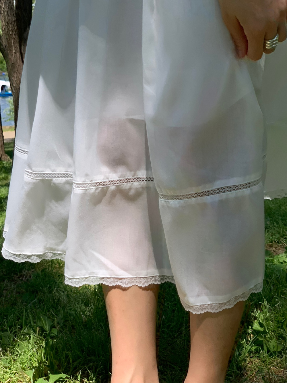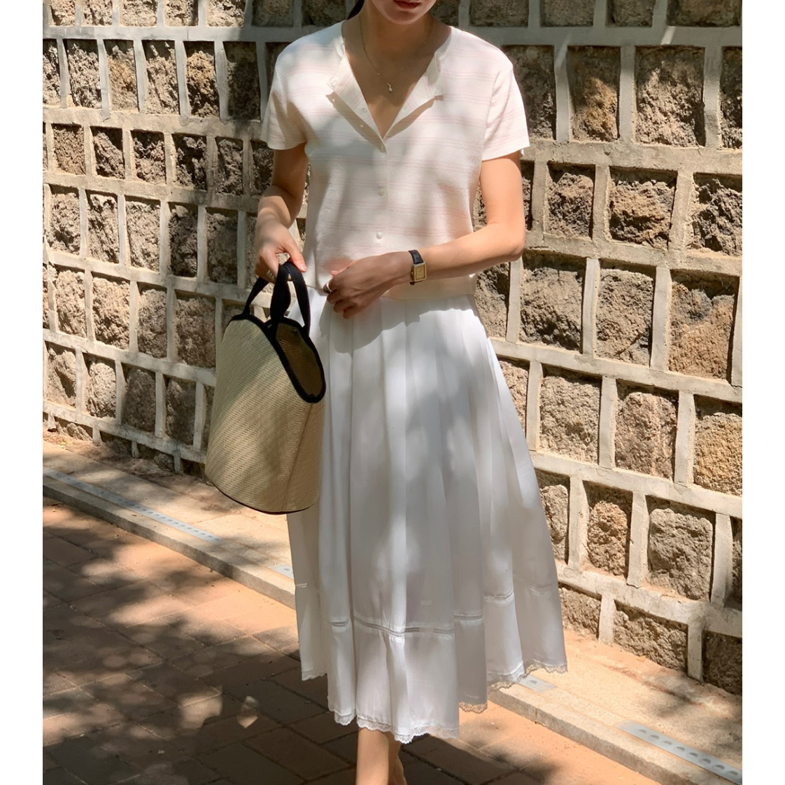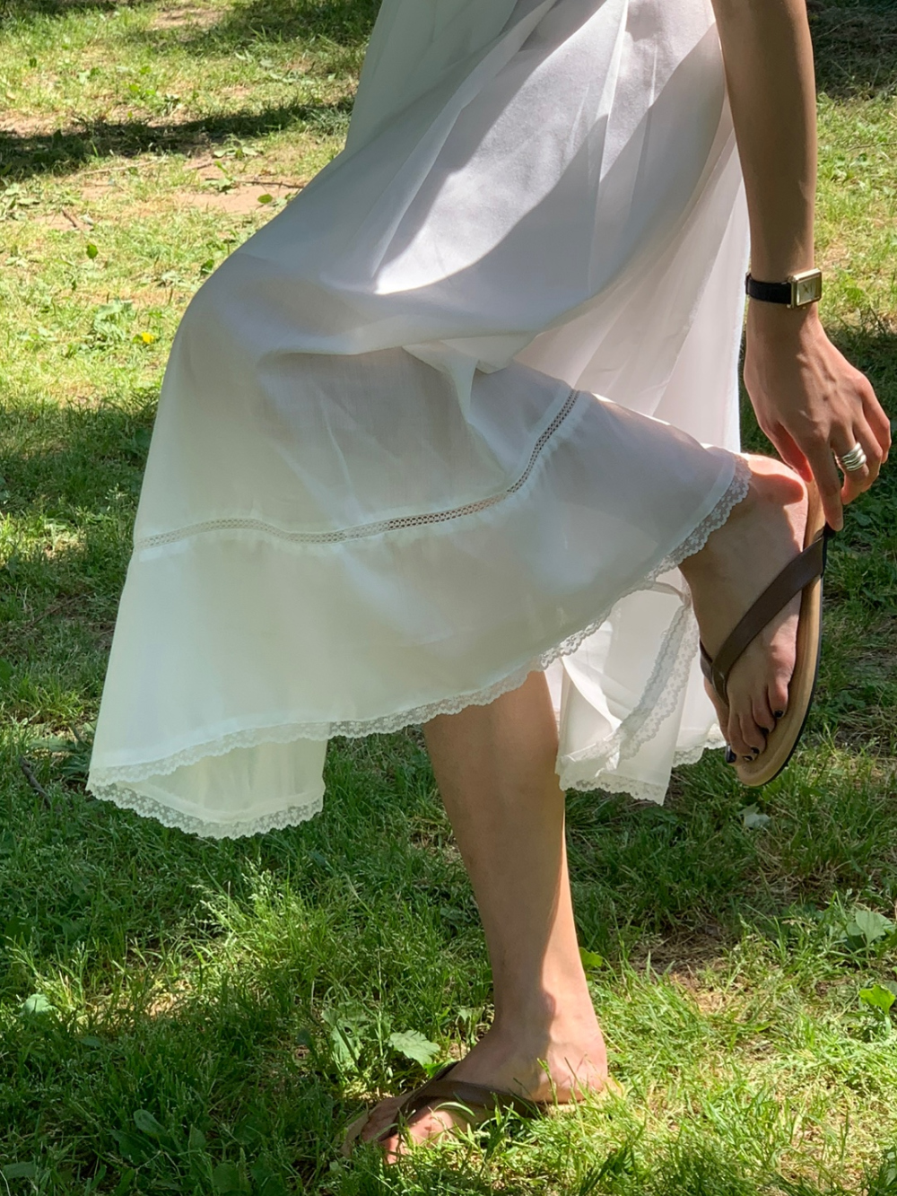 럽 코튼 훌 스커트 핀턱 화이트 텐셀 레이스 롱스커트