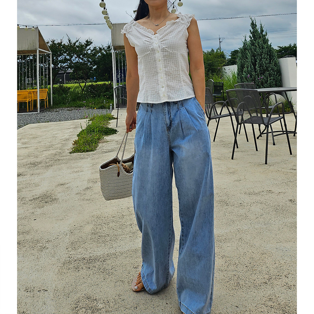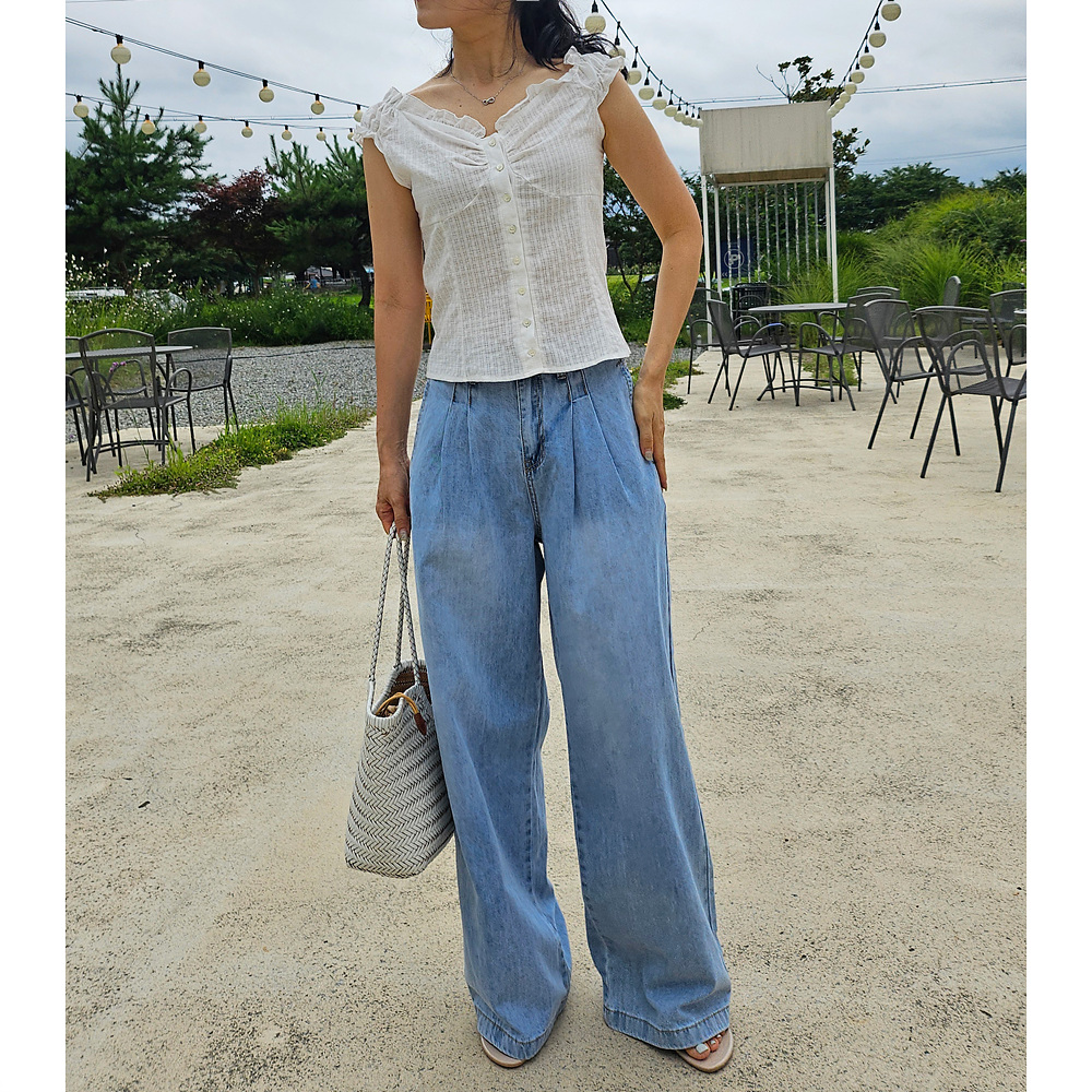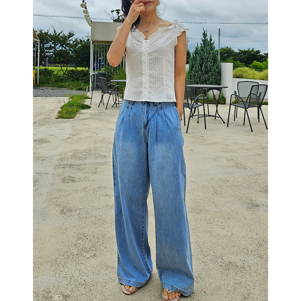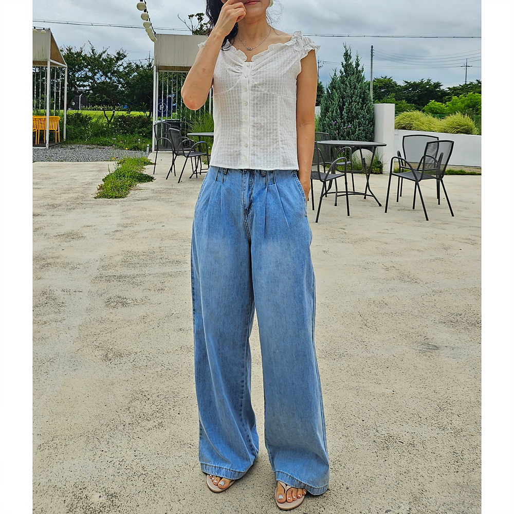 메리미 핀턱 와이드 데님 팬츠