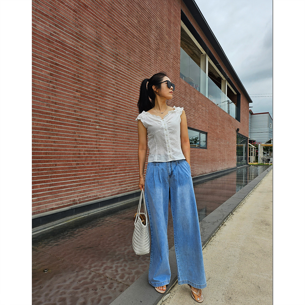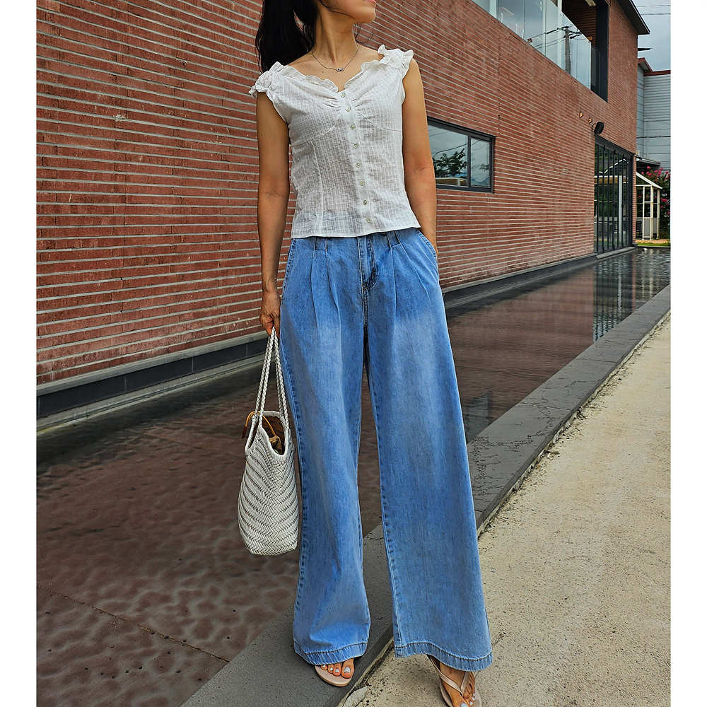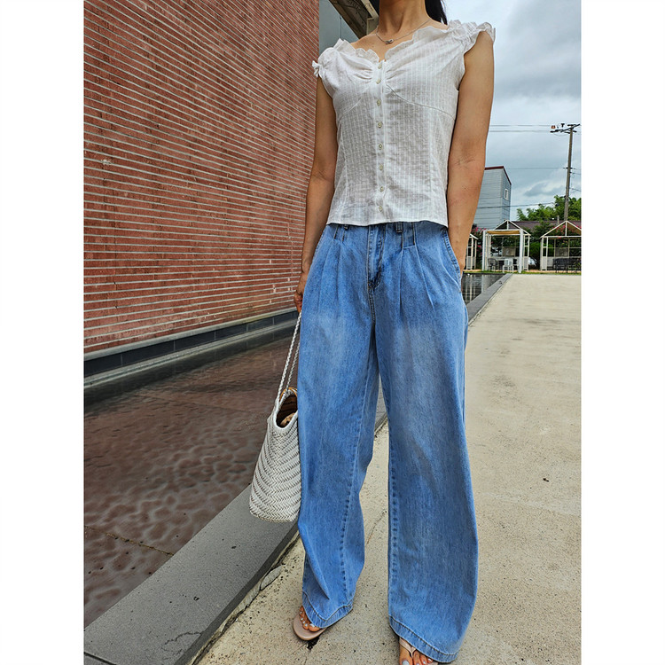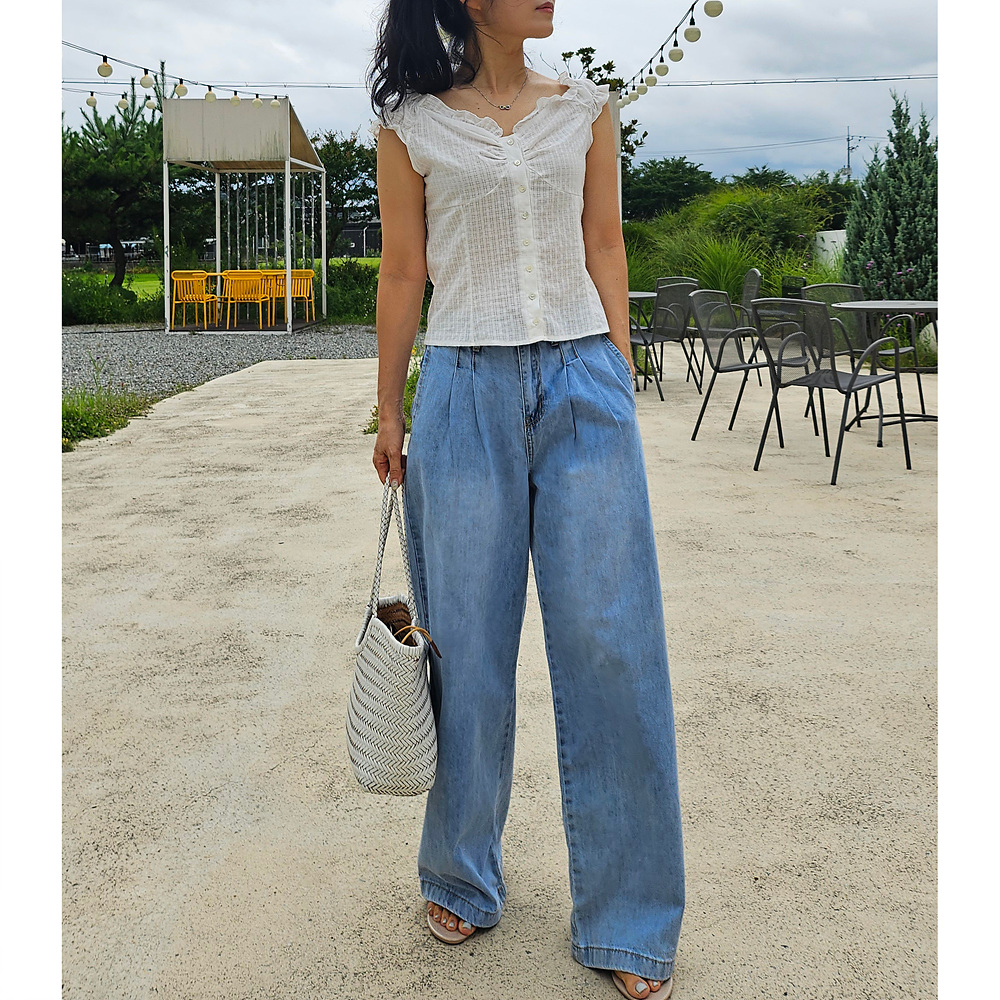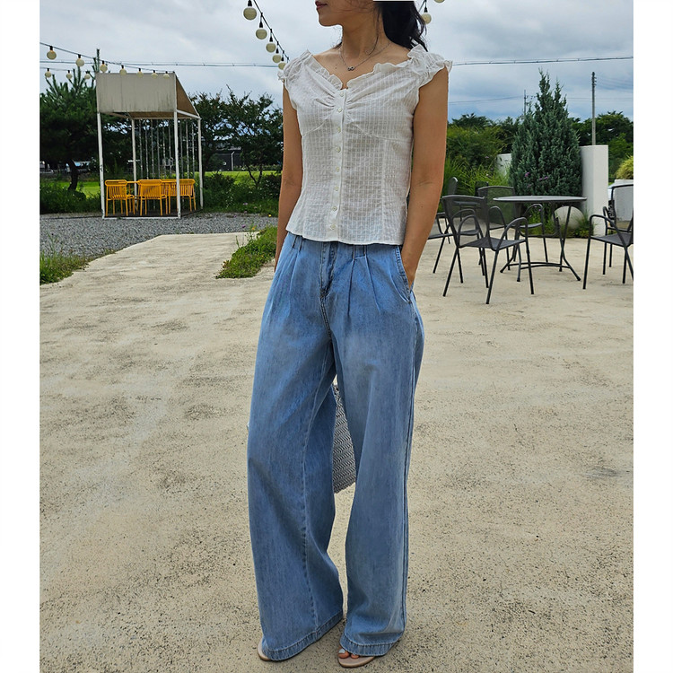 메리미 핀턱 와이드 데님 팬츠