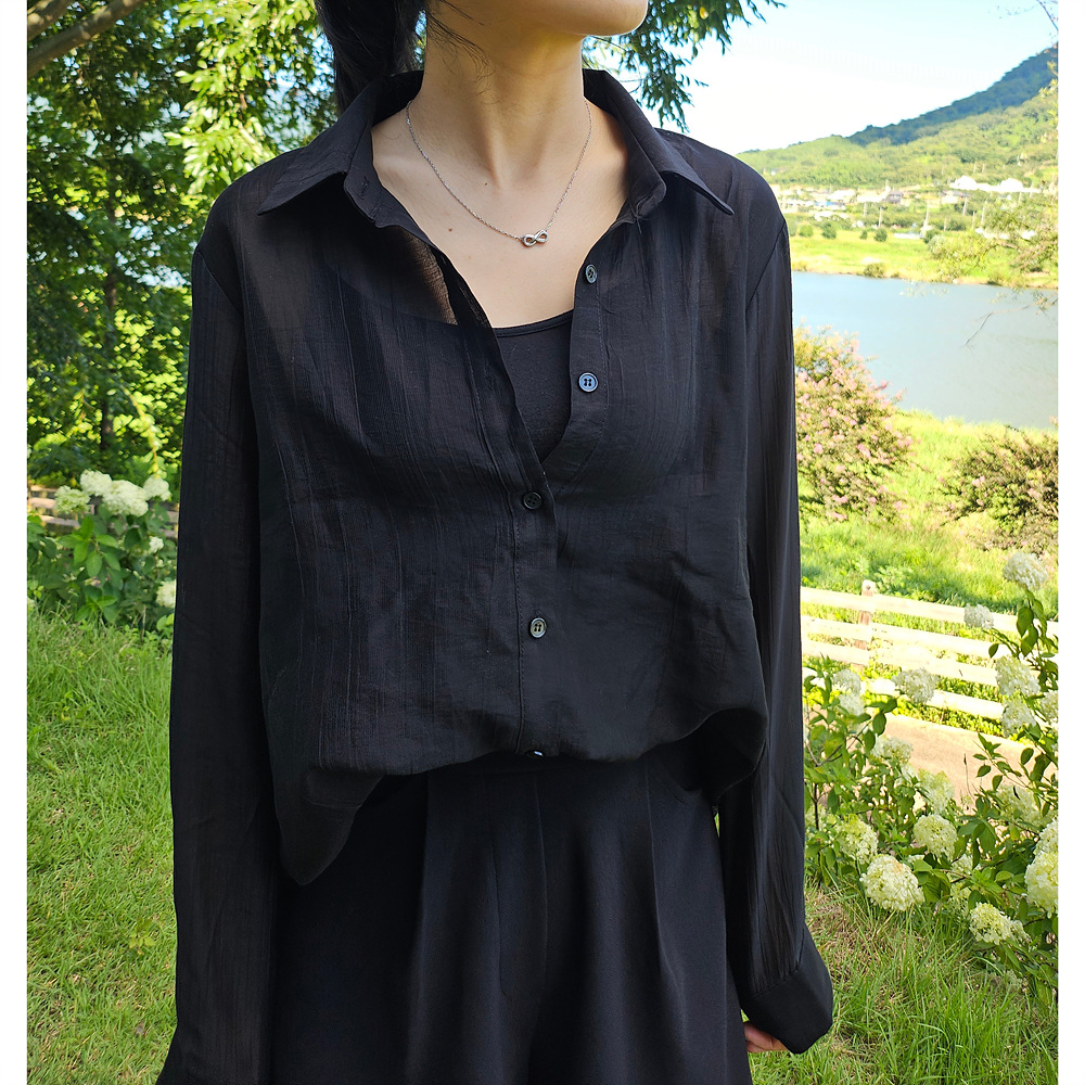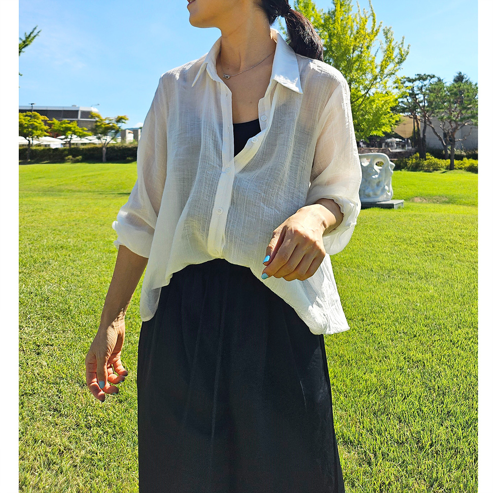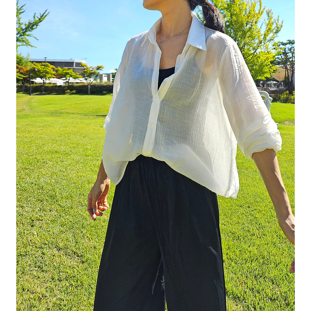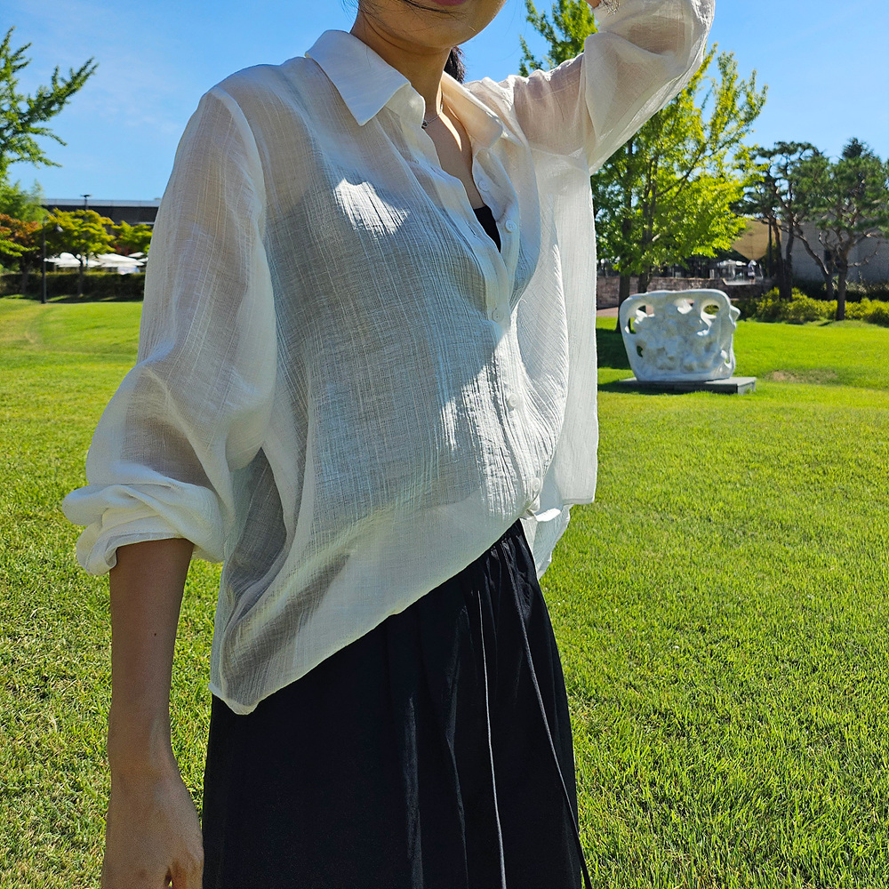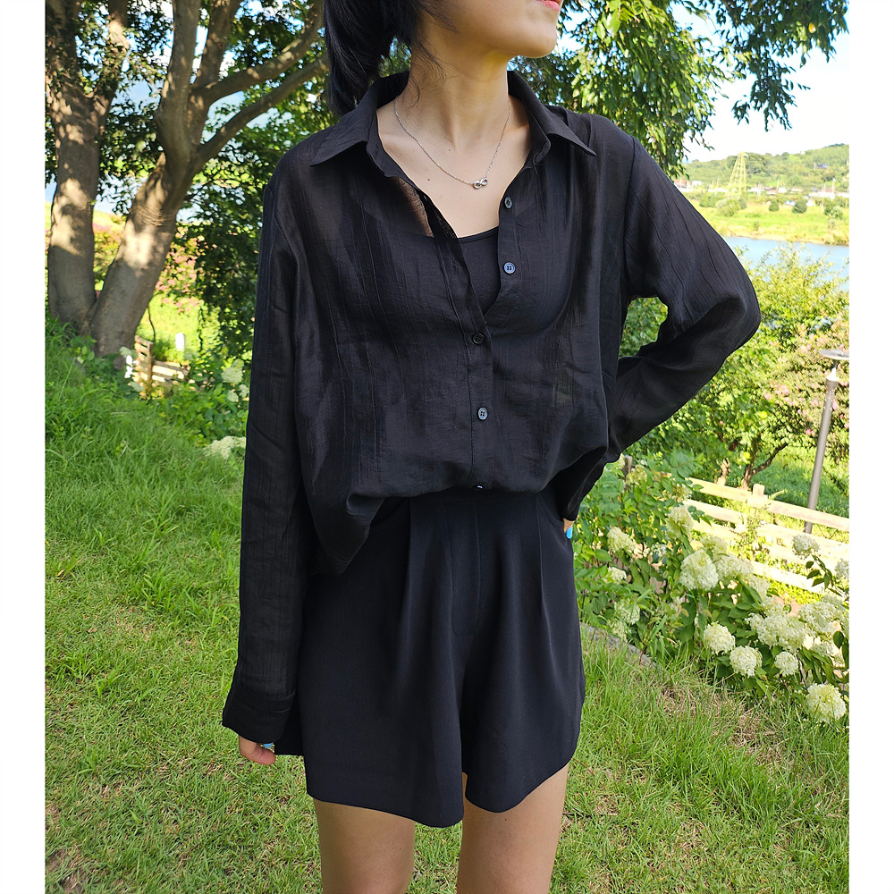 촤르르 시원한 여름 긴팔 텐셀 블라우스 남방