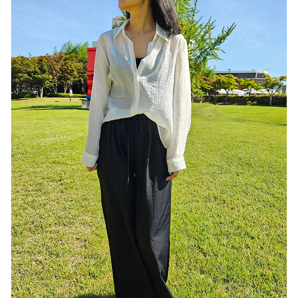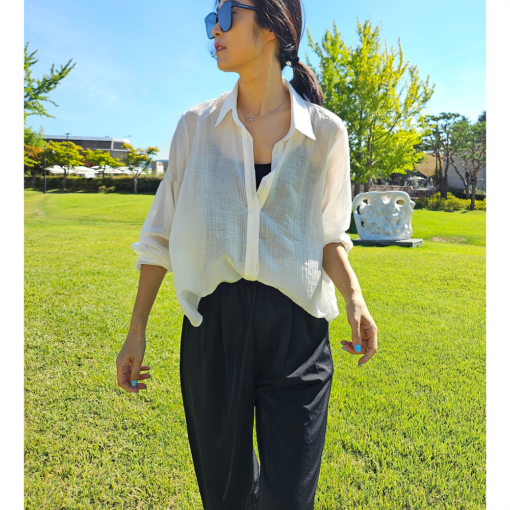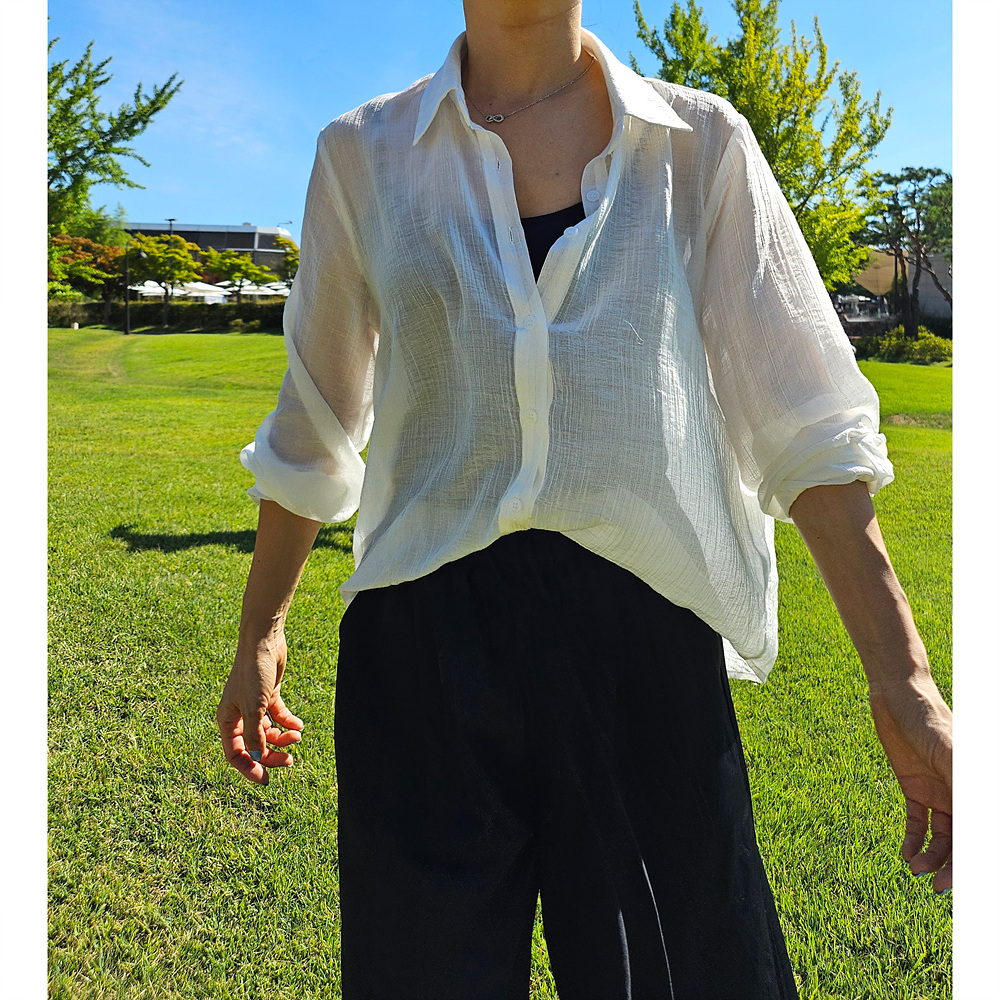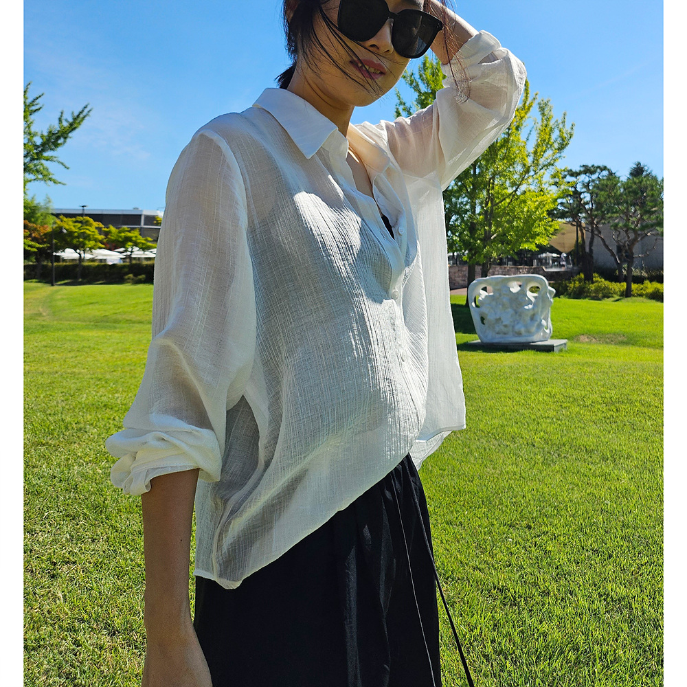 촤르르 시원한 여름 긴팔 텐셀 블라우스 남방