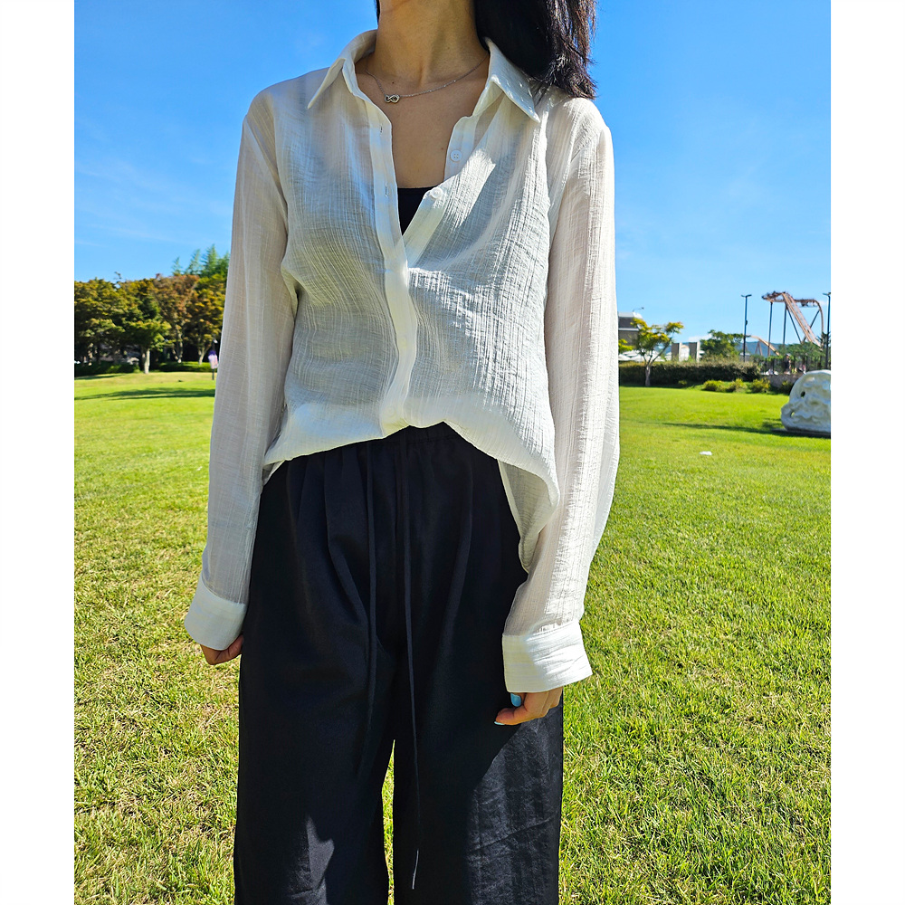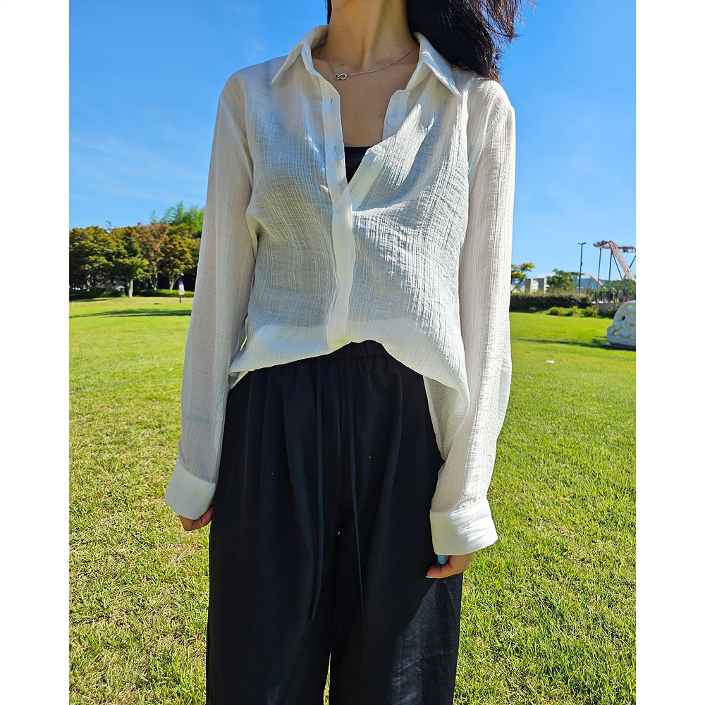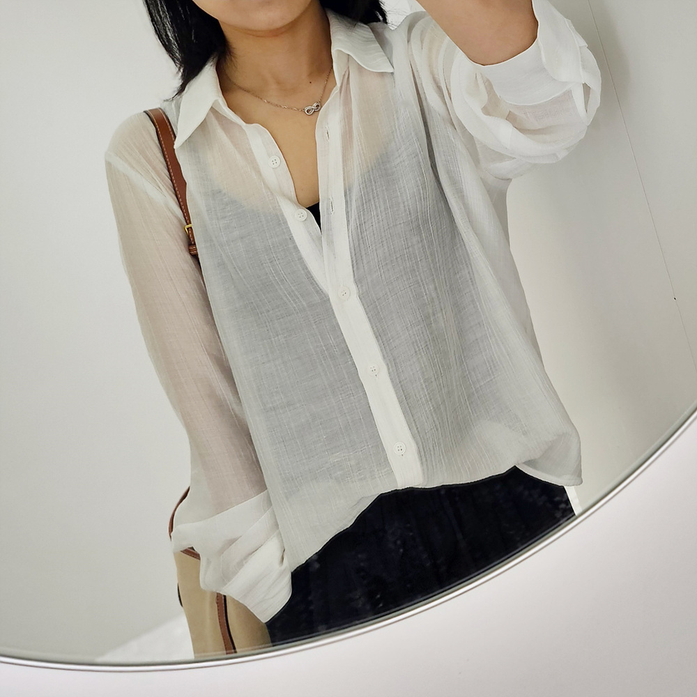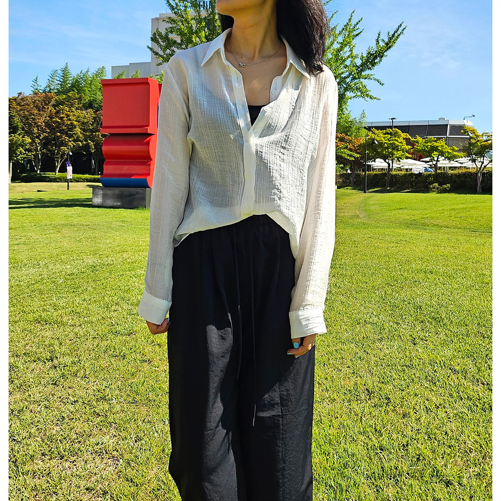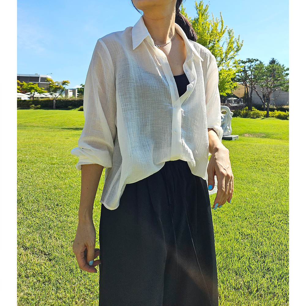 촤르르 시원한 여름 긴팔 텐셀 블라우스 남방