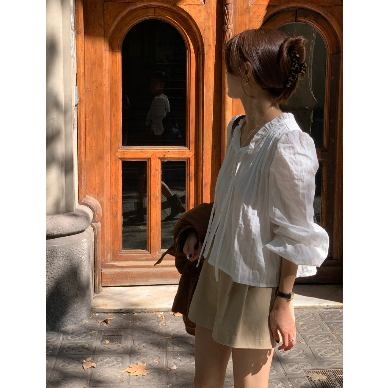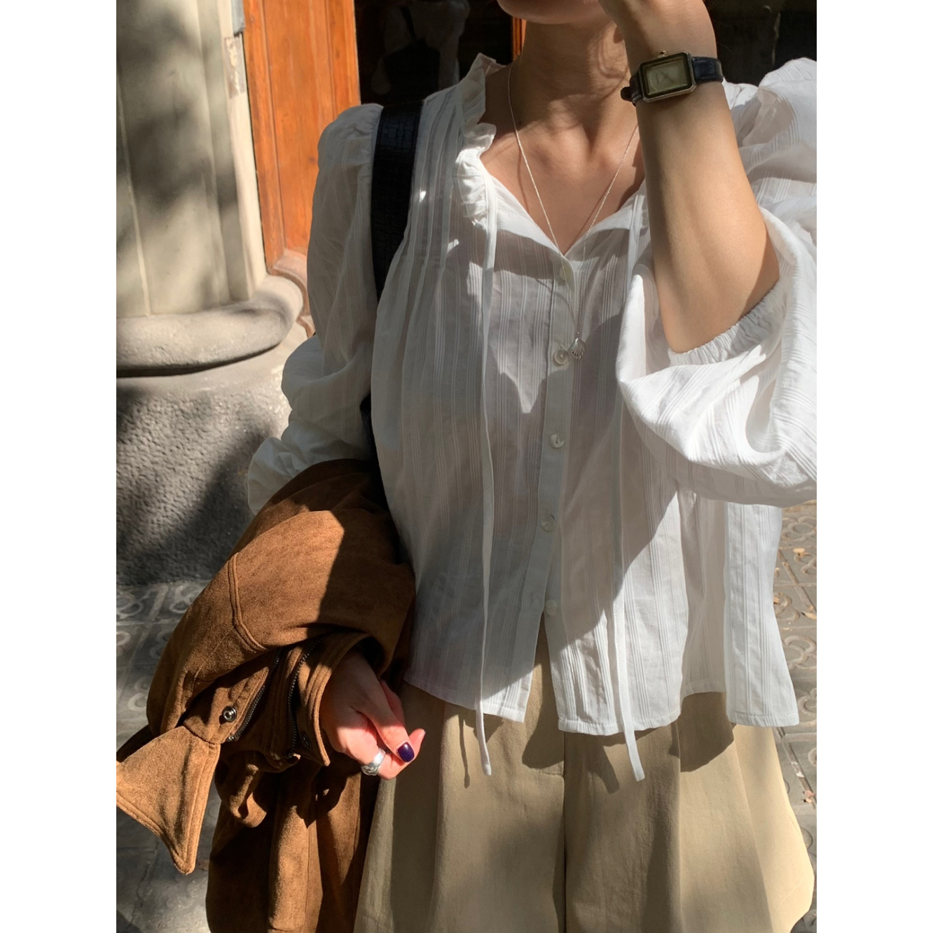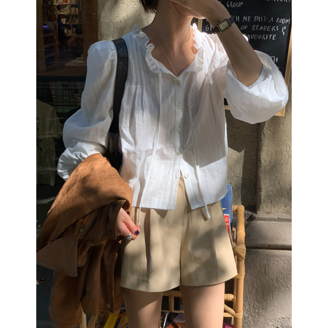 간절기 신상 화이트 프릴 핀턱 블라우스
