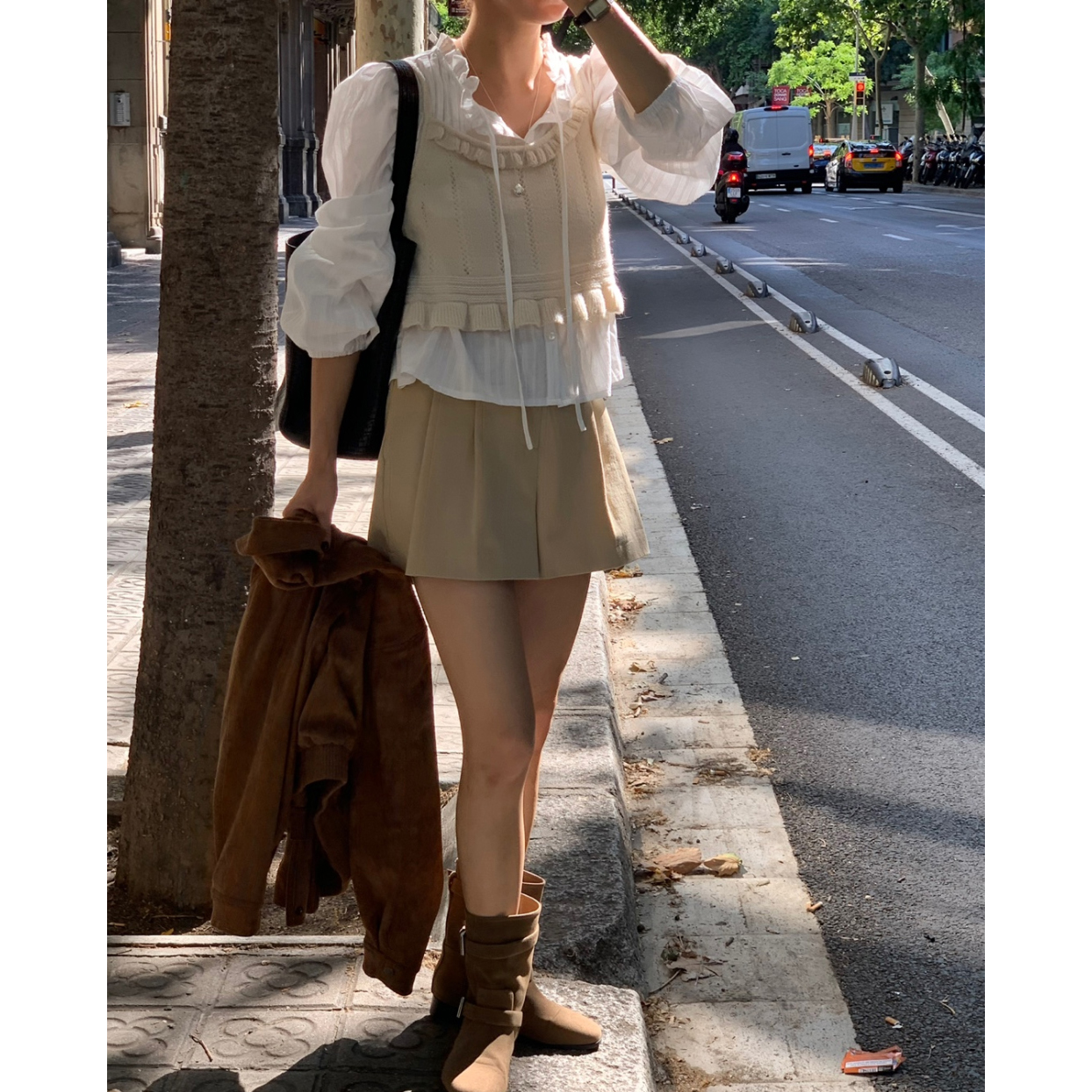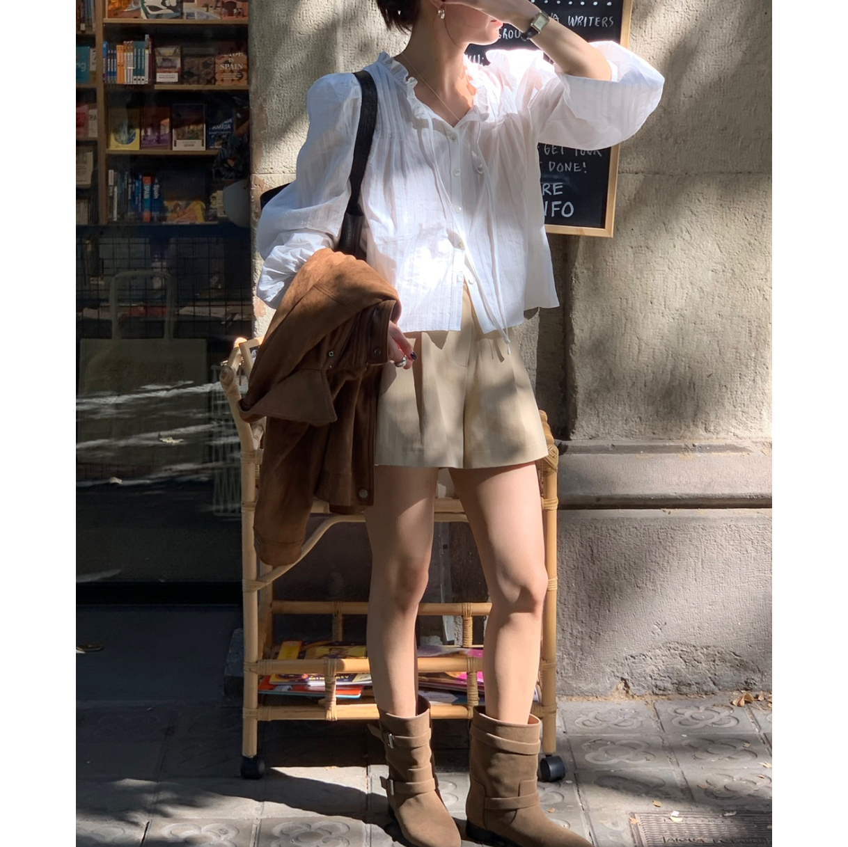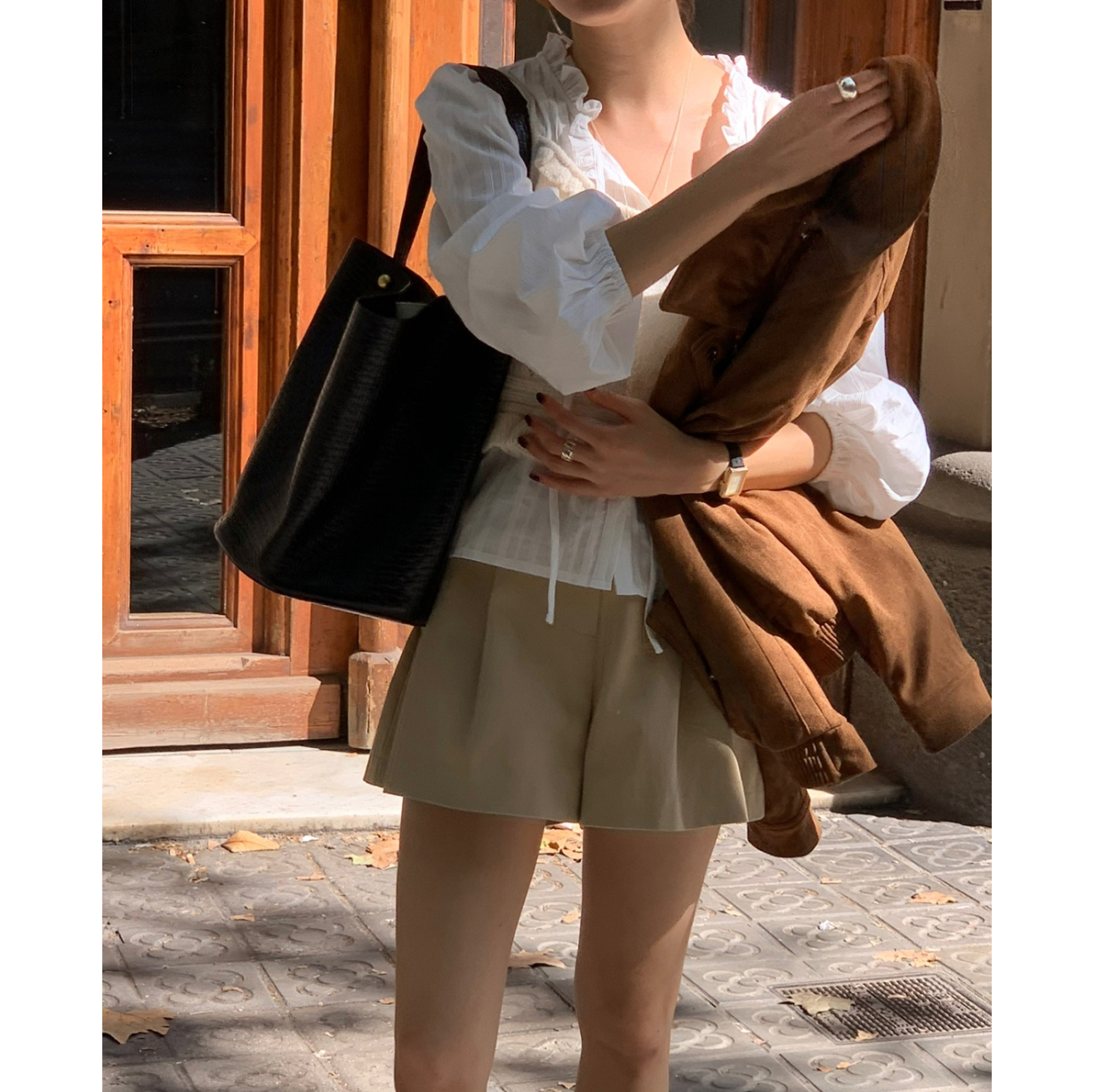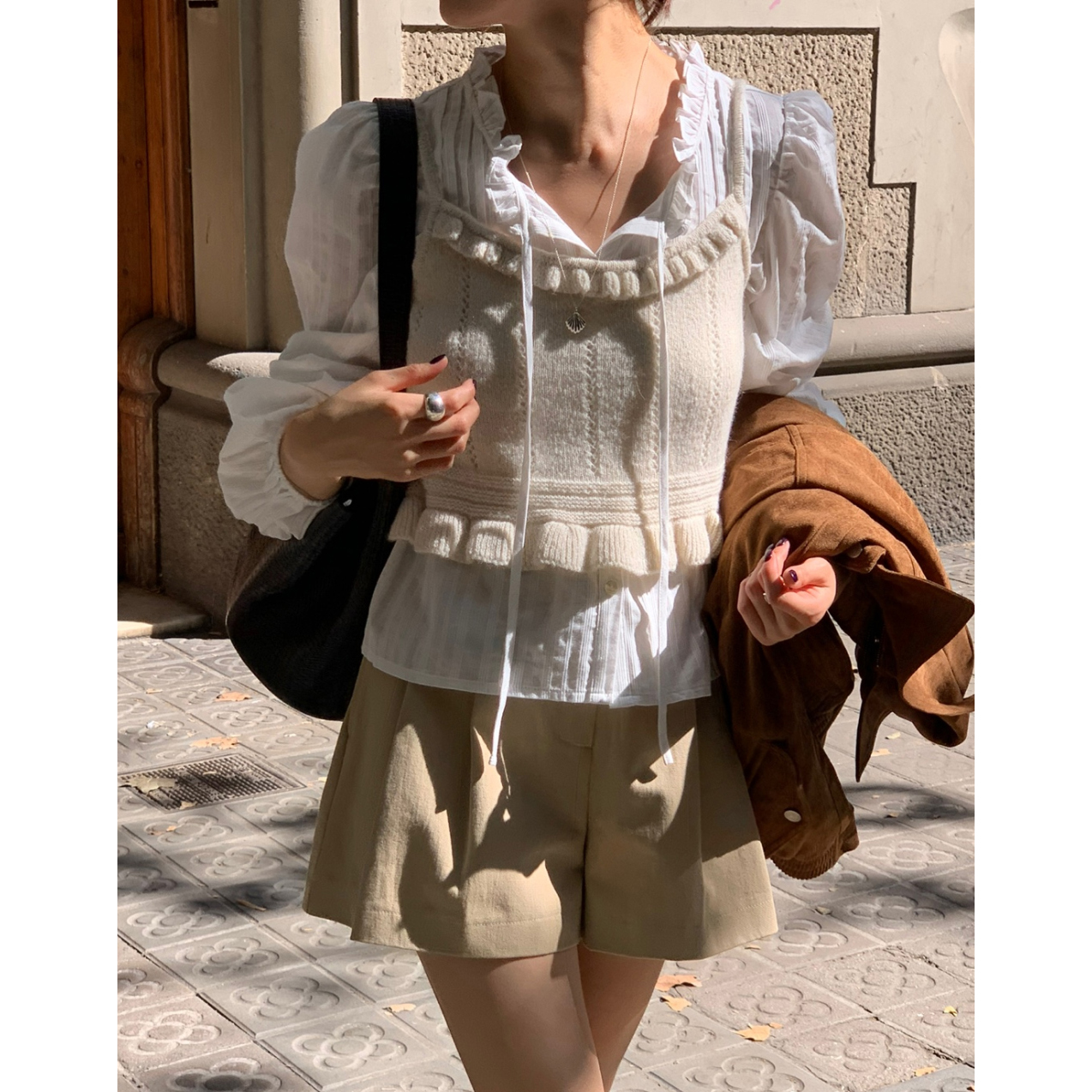 간절기 신상 화이트 프릴 핀턱 블라우스