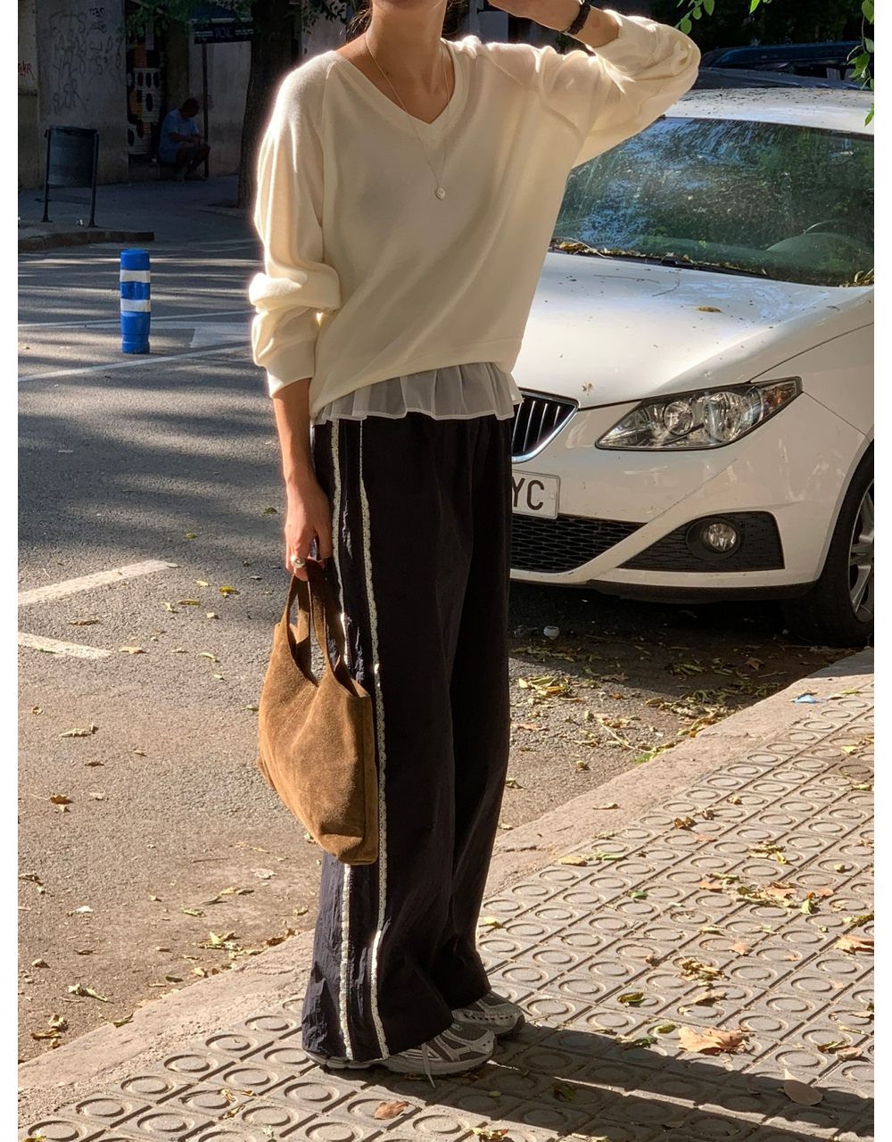 간절기 신상 이안 와샤 레이스트리밍 밴딩 팬츠