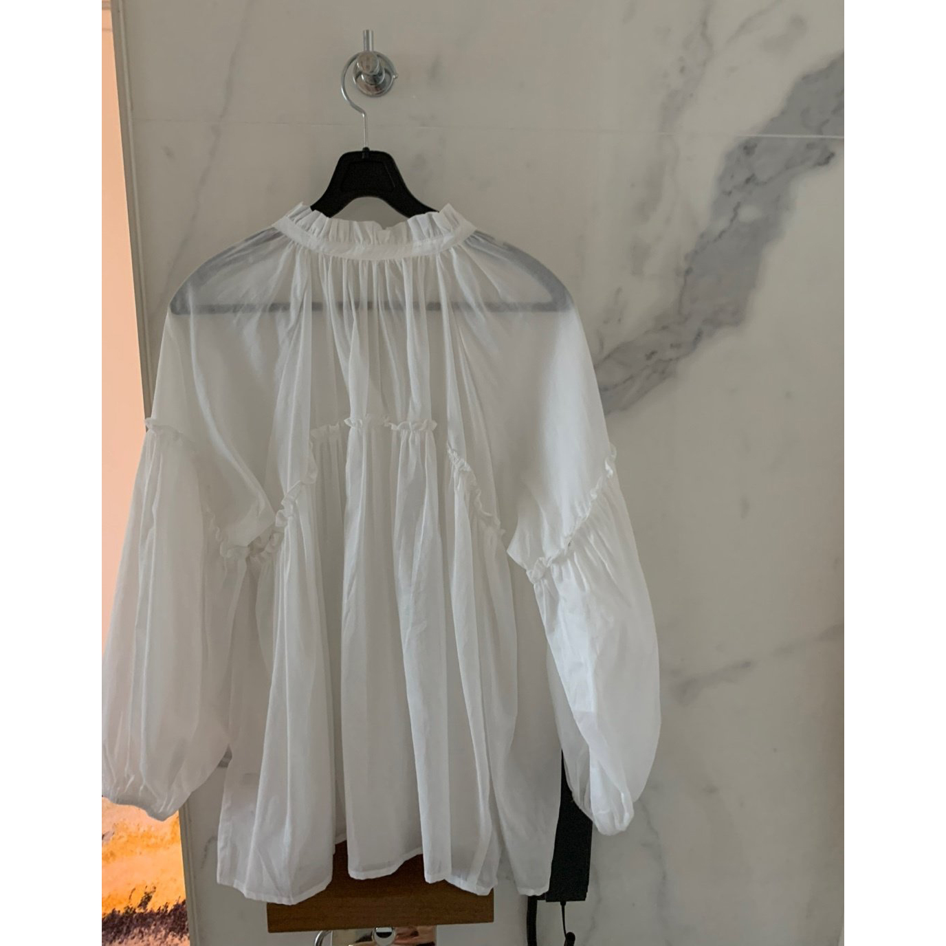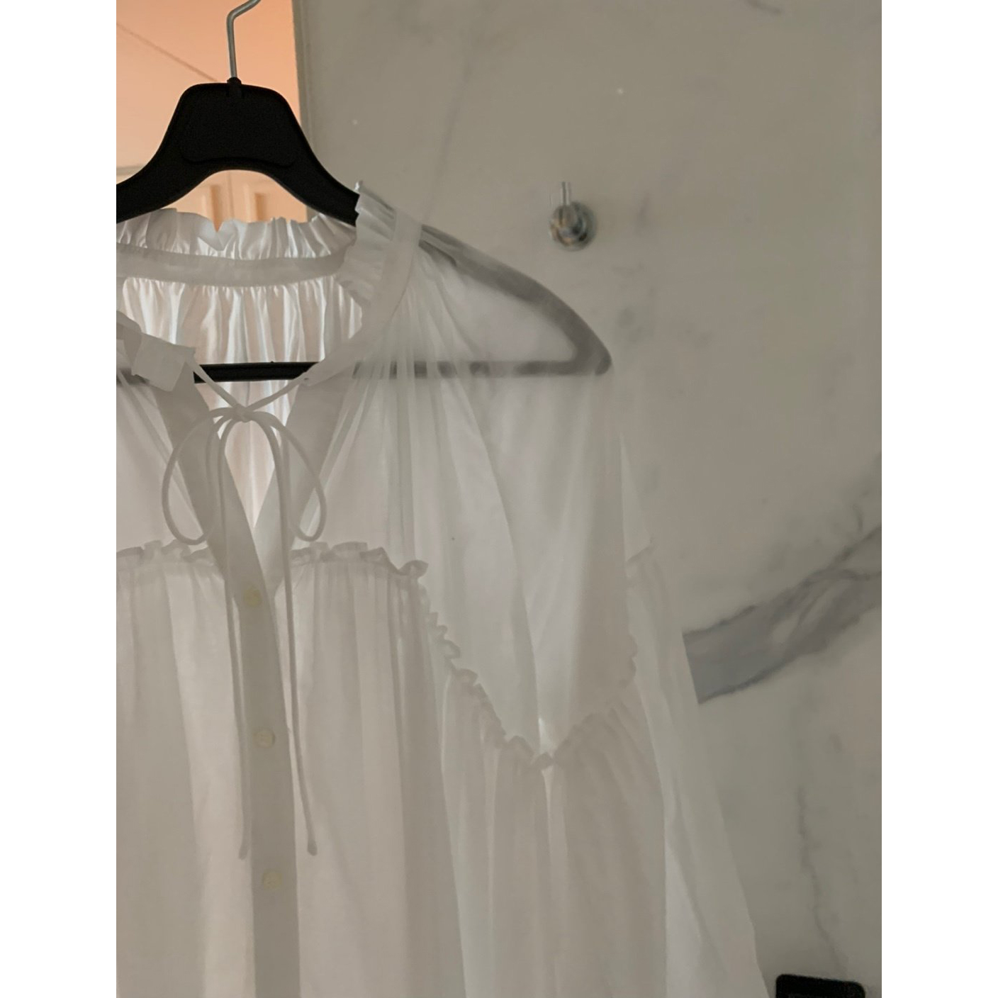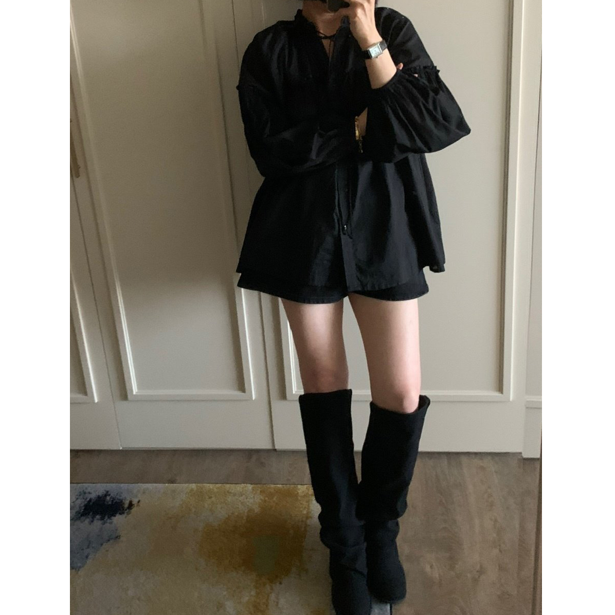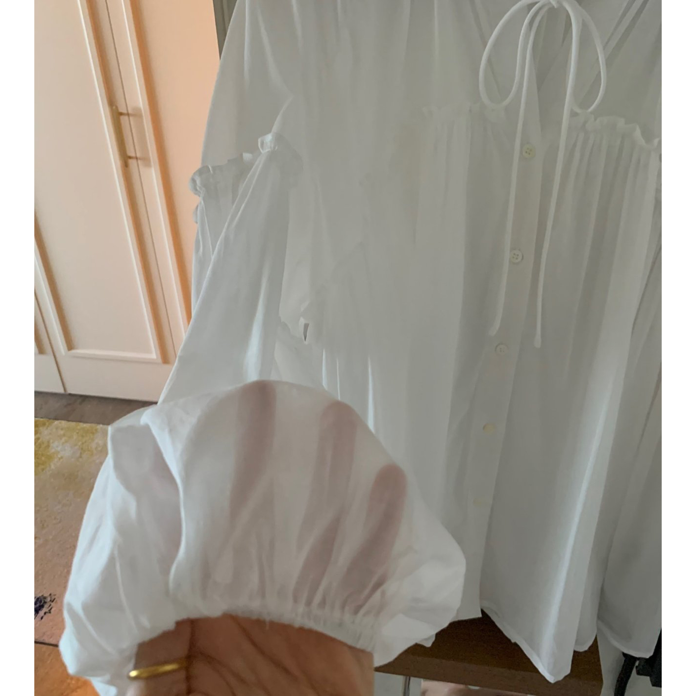 미요 얇은 긴팔 셔링 롱블라우스