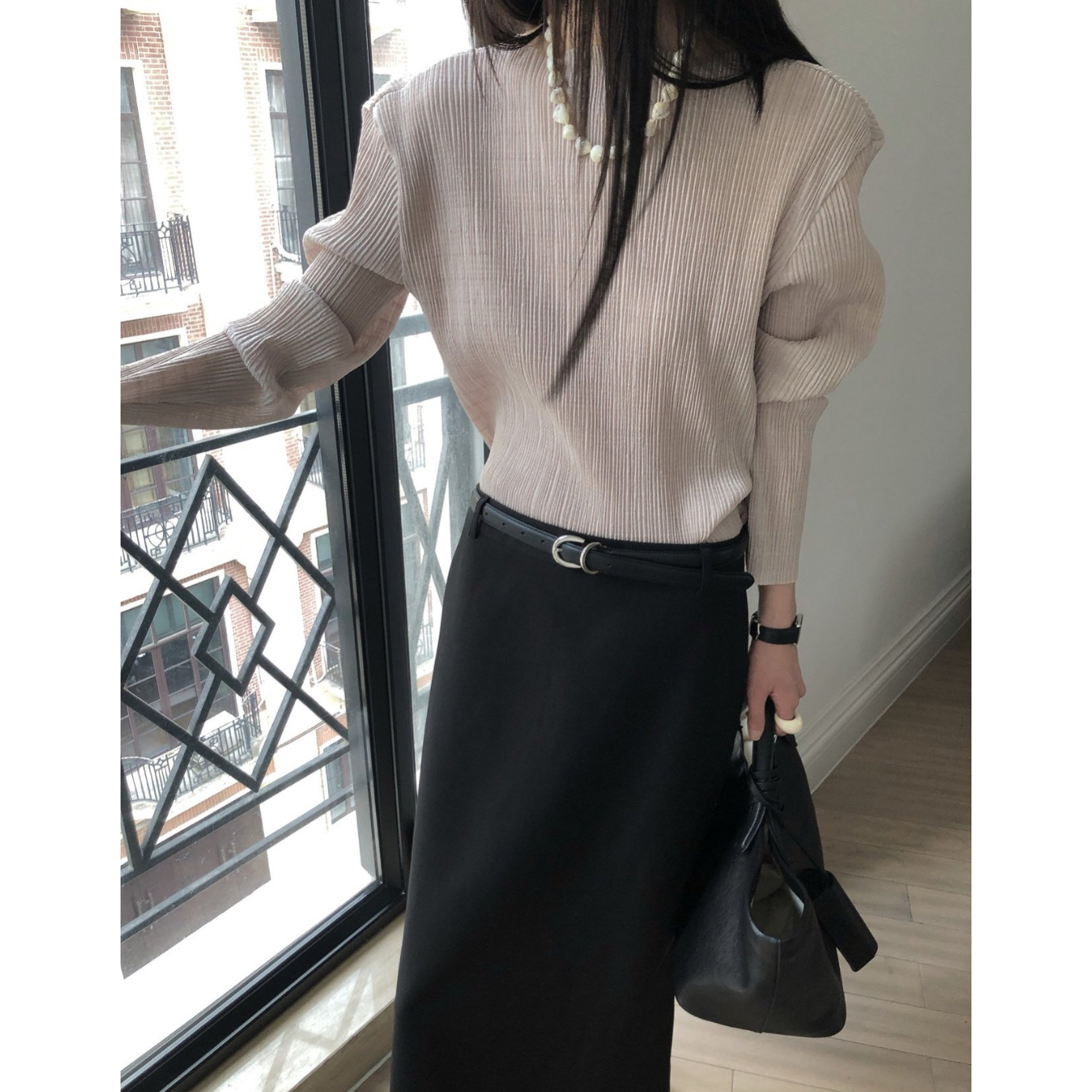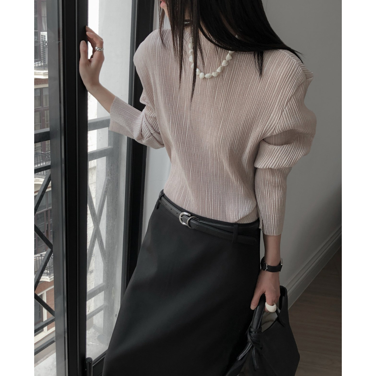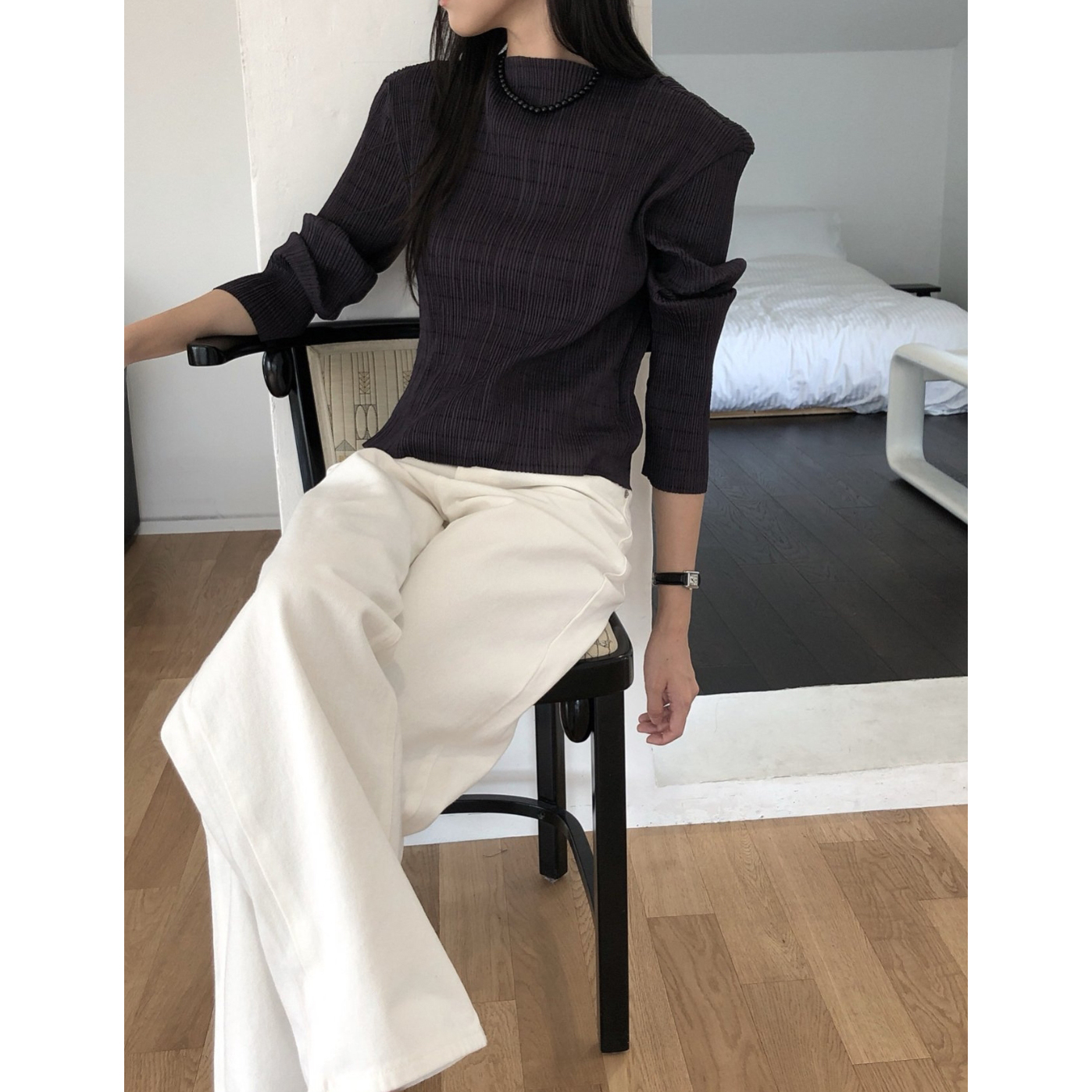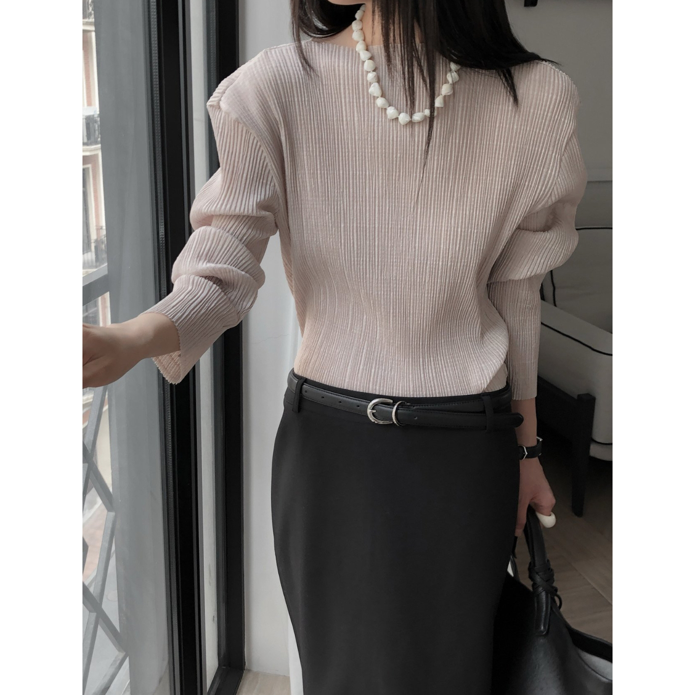 25FW 베리 긴팔 플리츠 블라우스