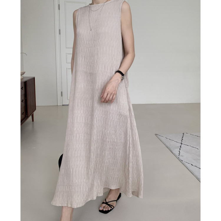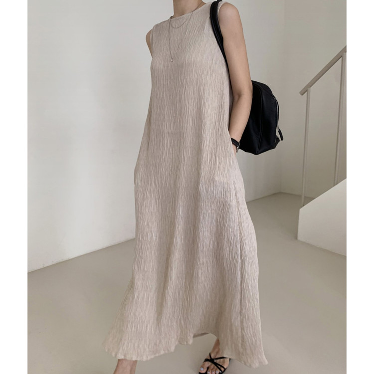 쫀쫀 플리츠 민소매 맥시 롱 원피스