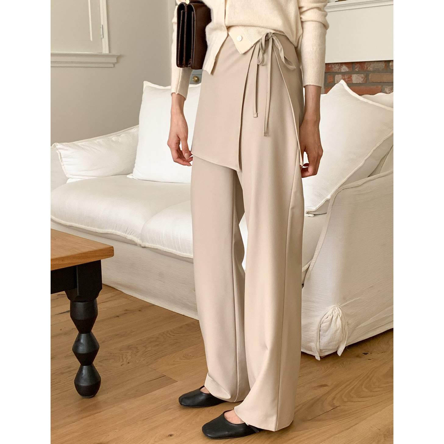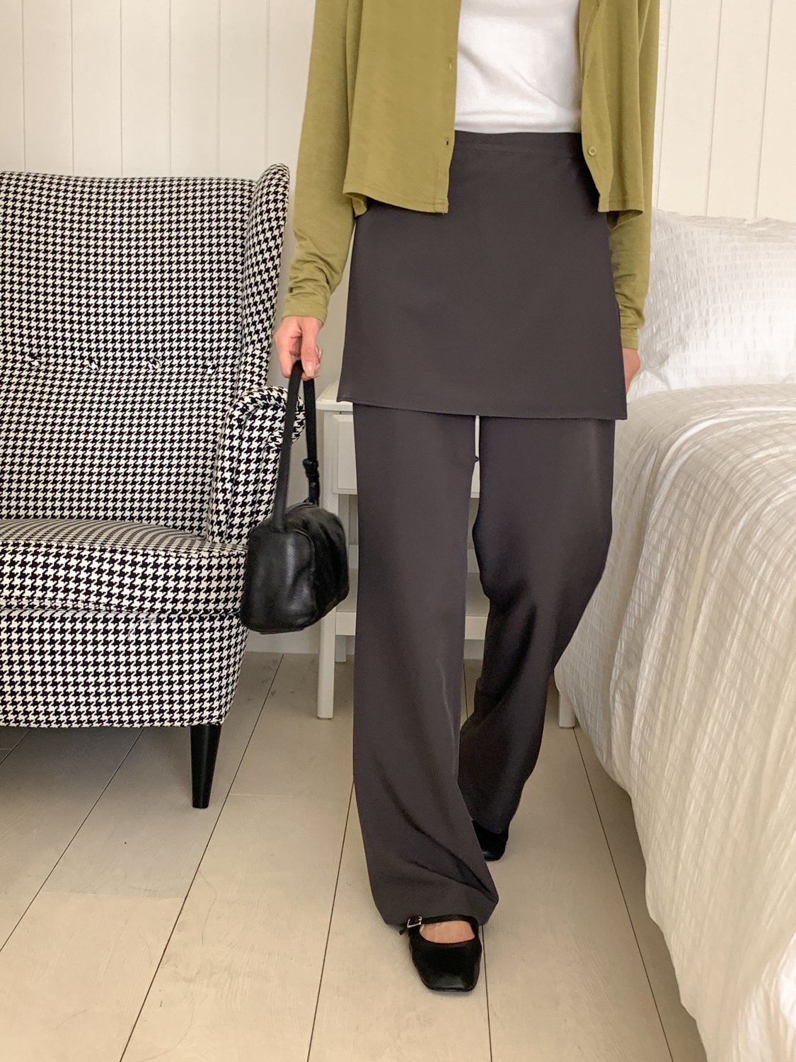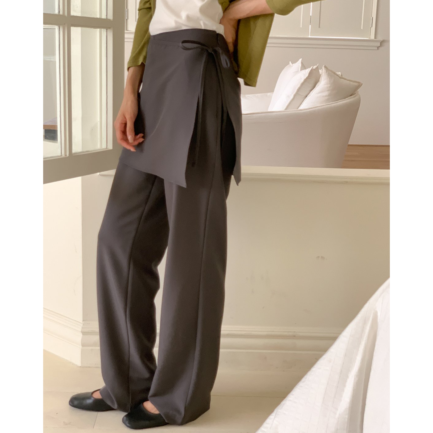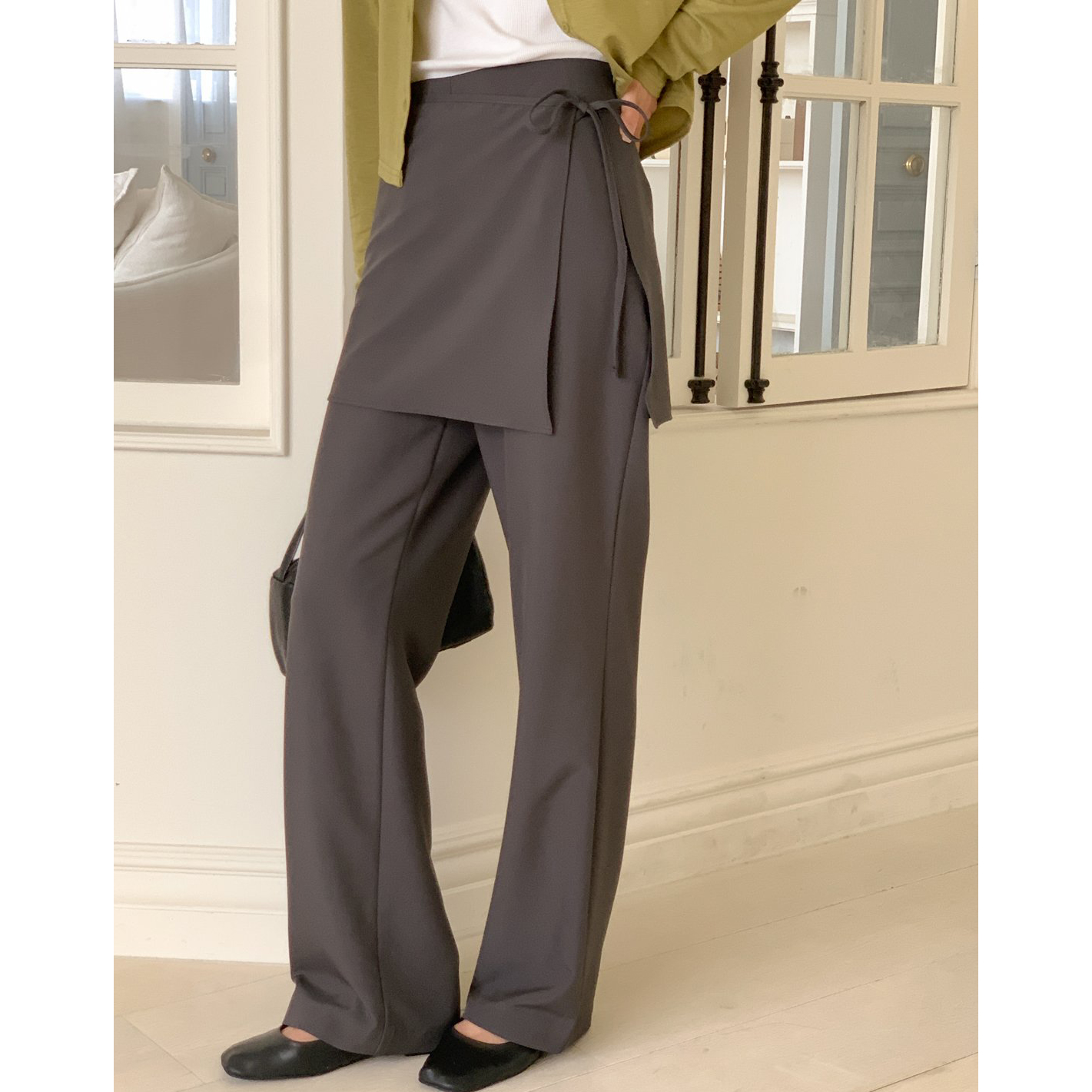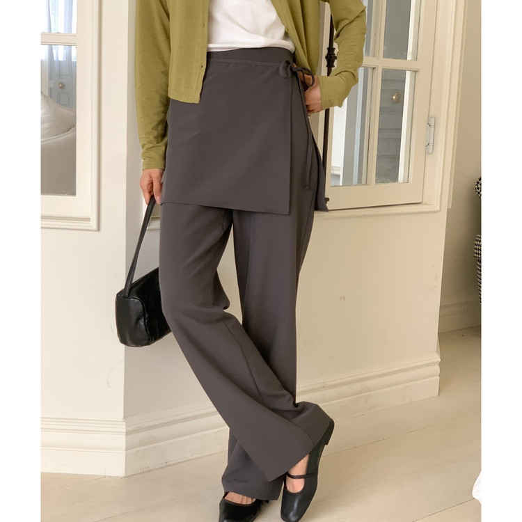 스커트 분리되는 레이어드 랩 슬랙스 팬츠