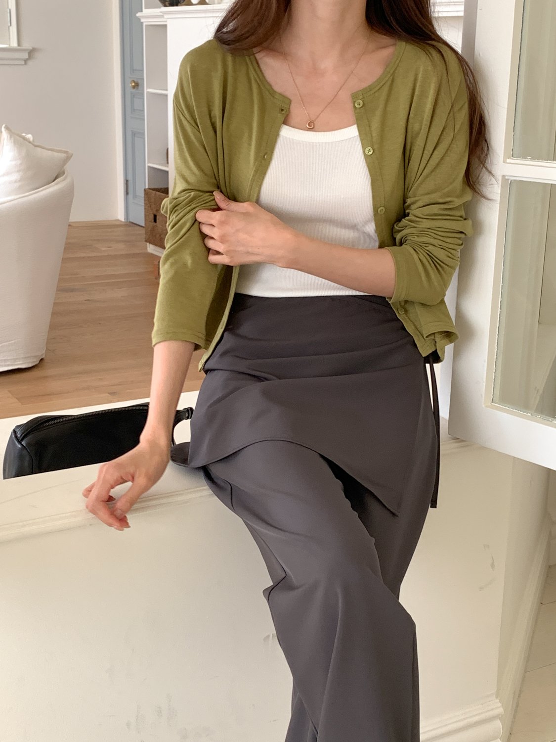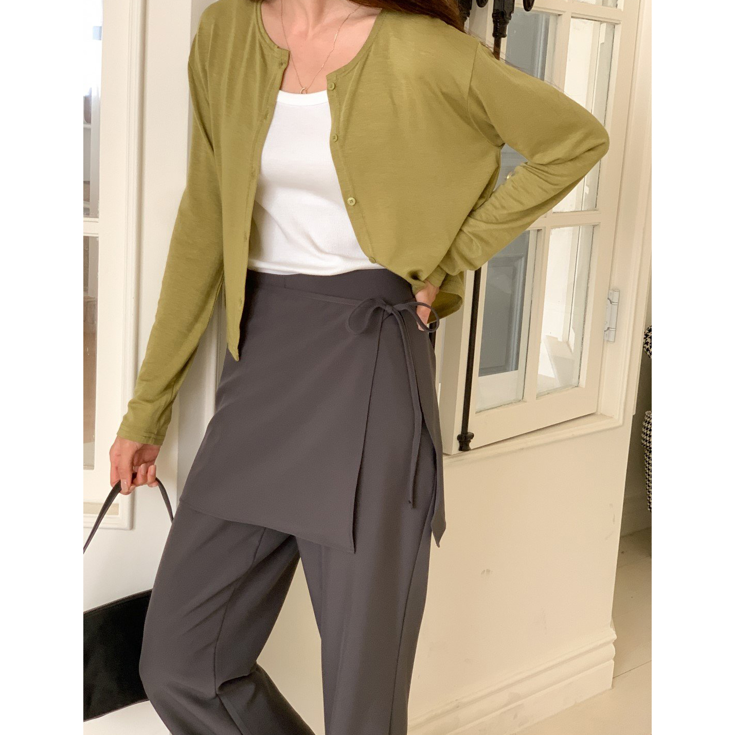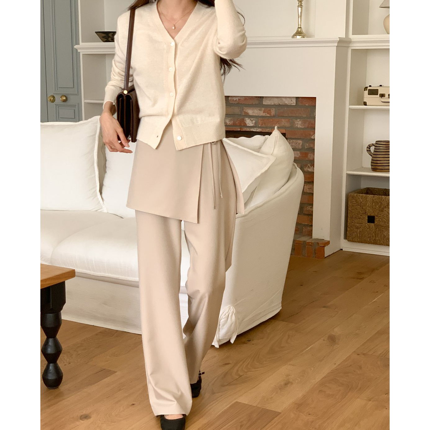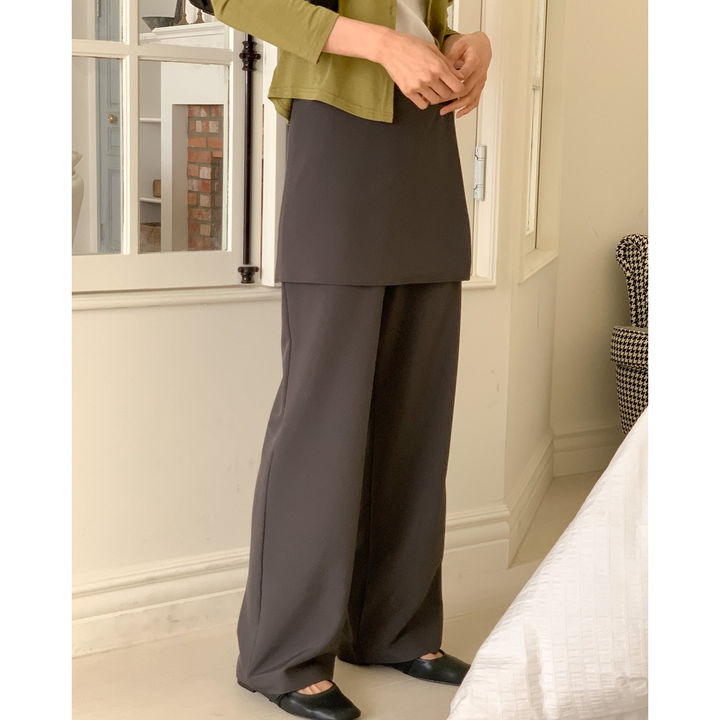 스커트 분리되는 레이어드 랩 슬랙스 팬츠