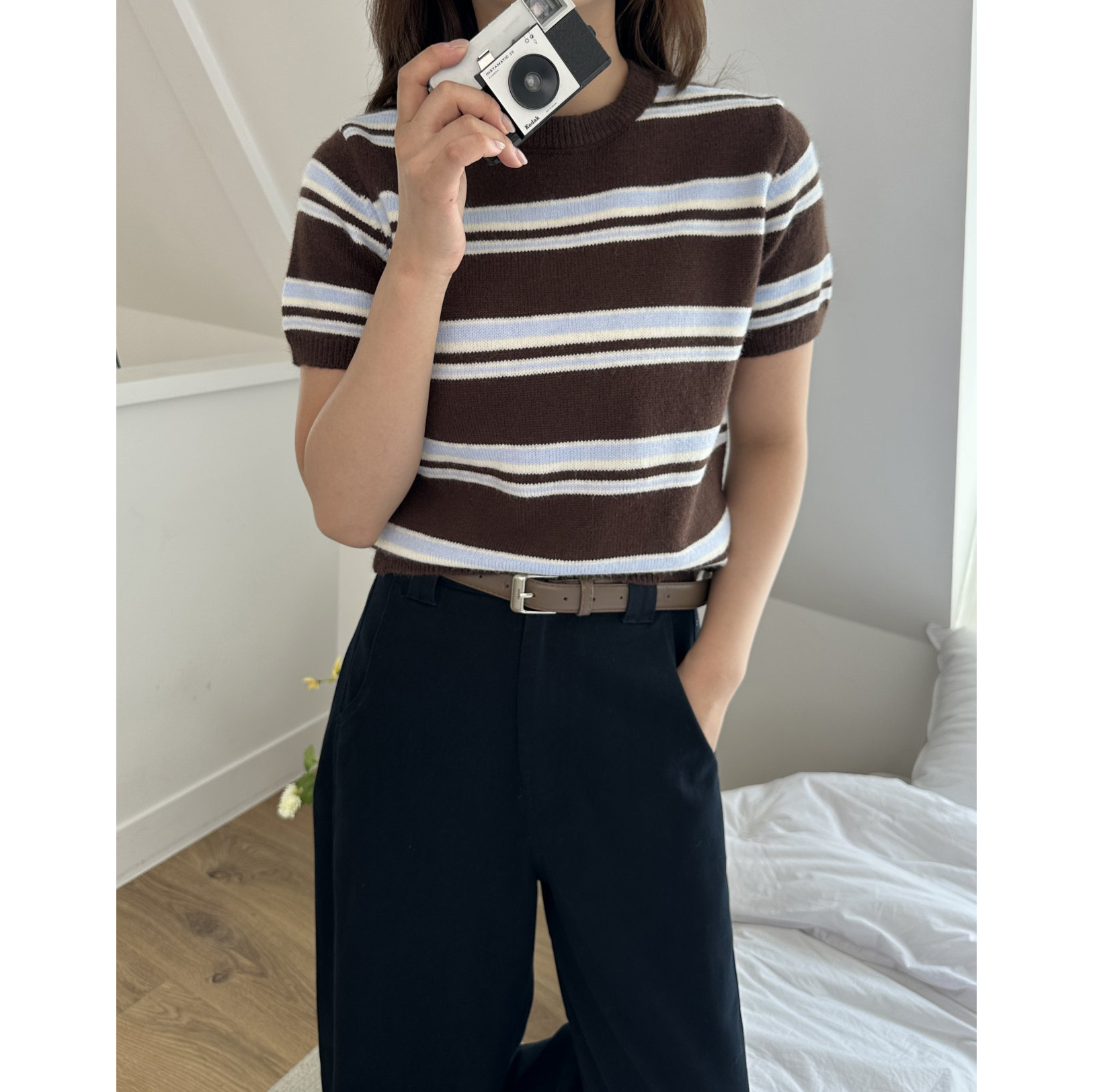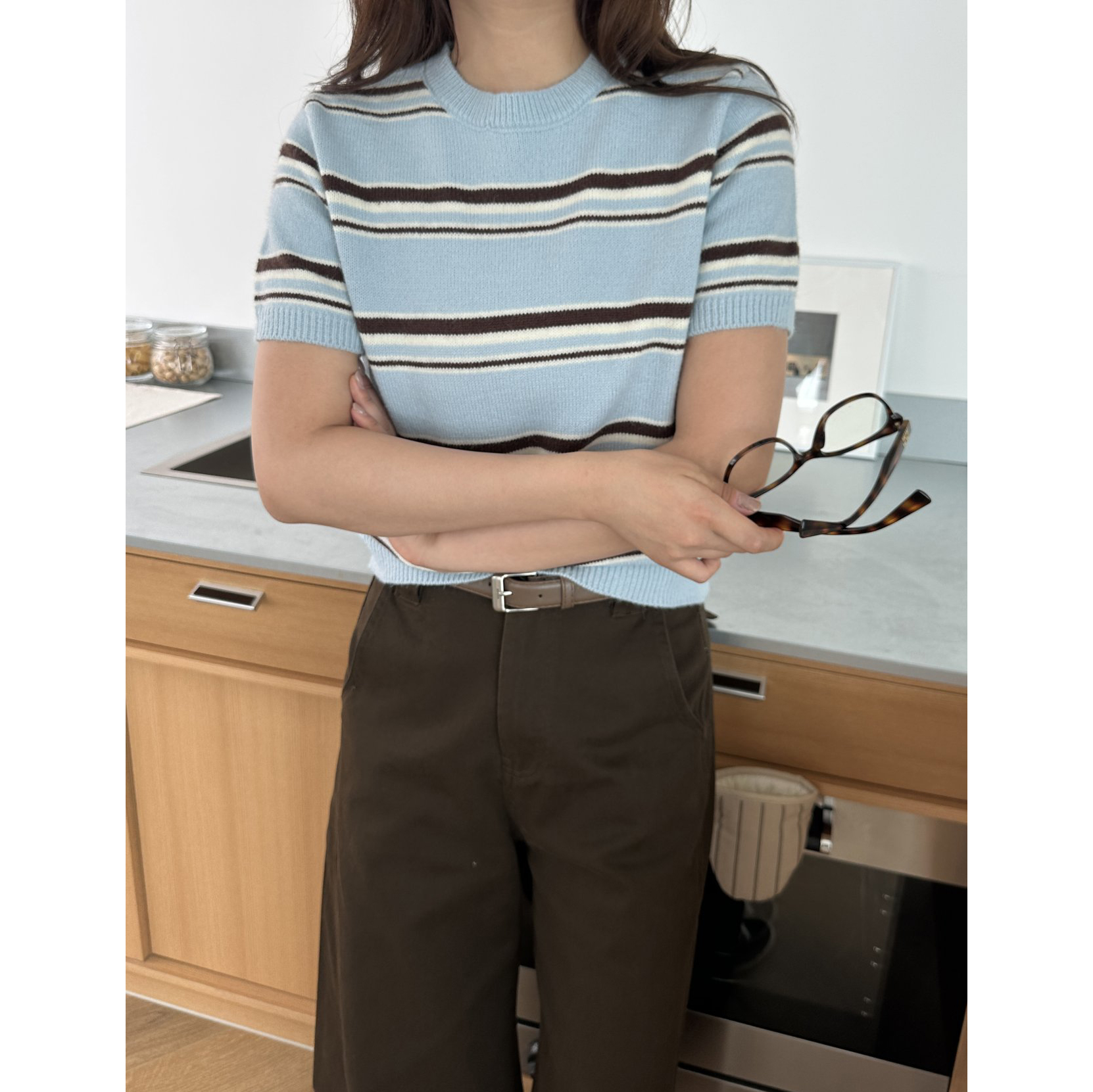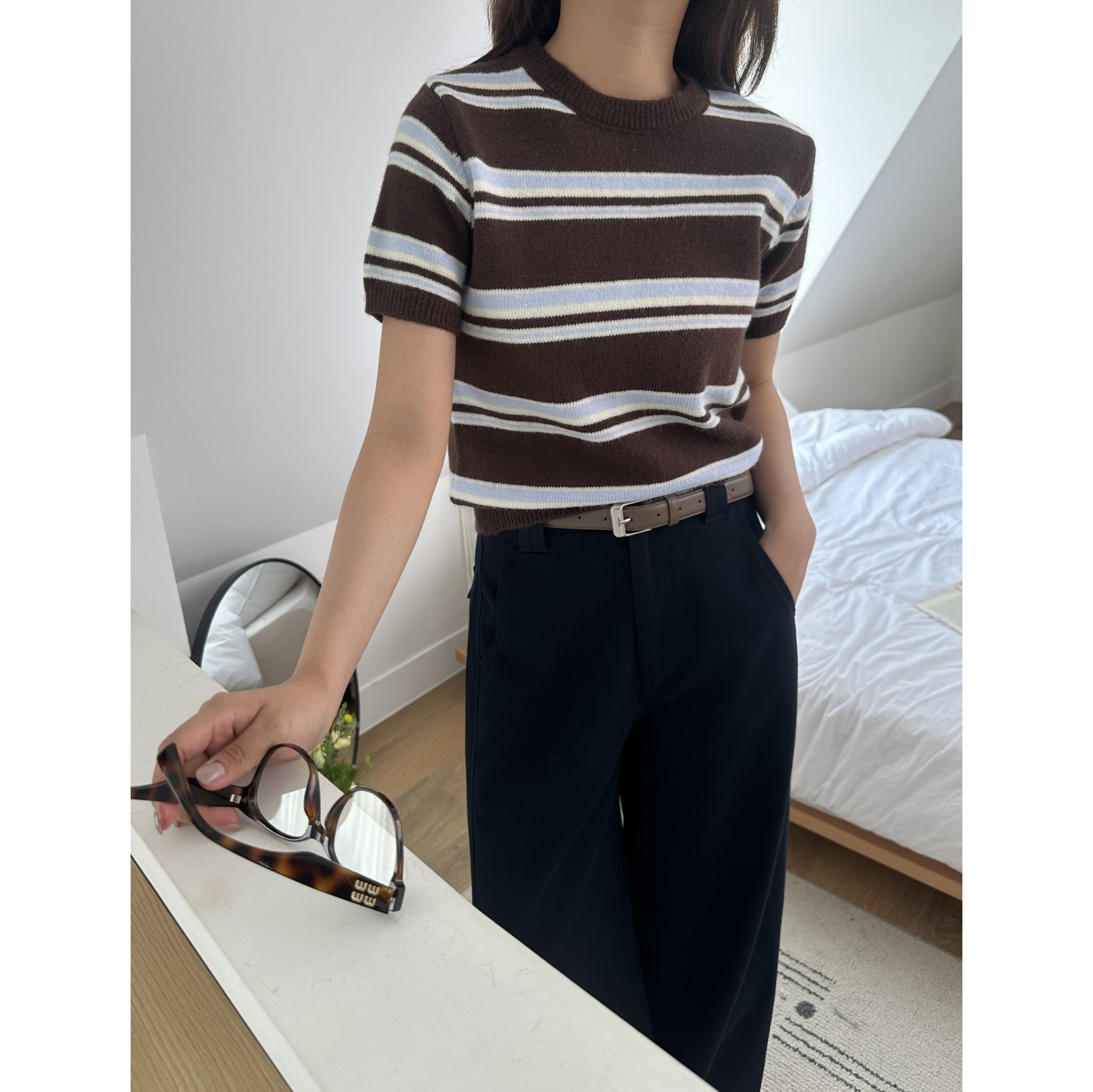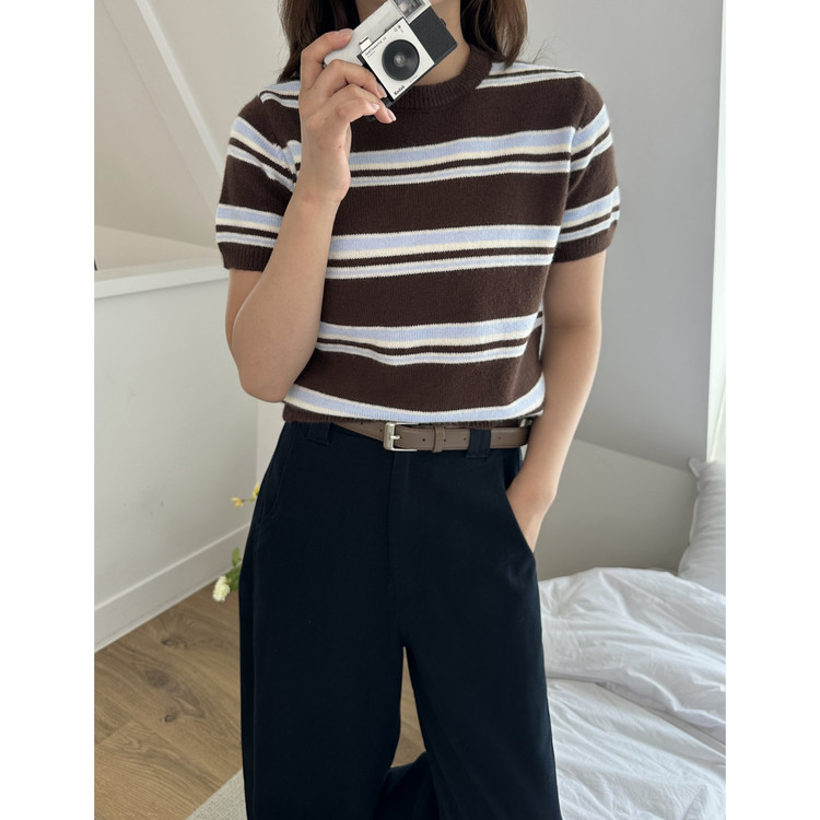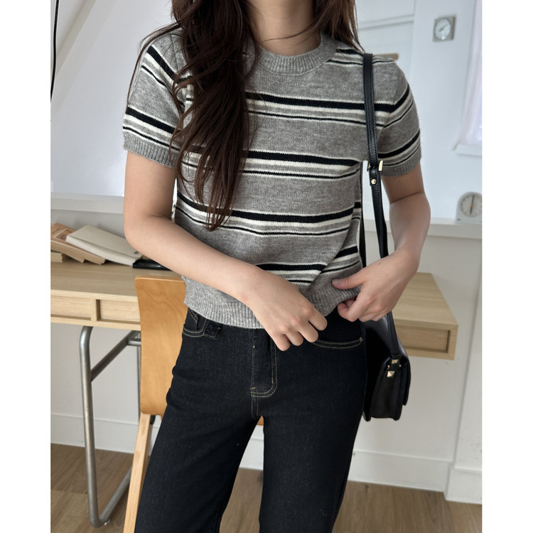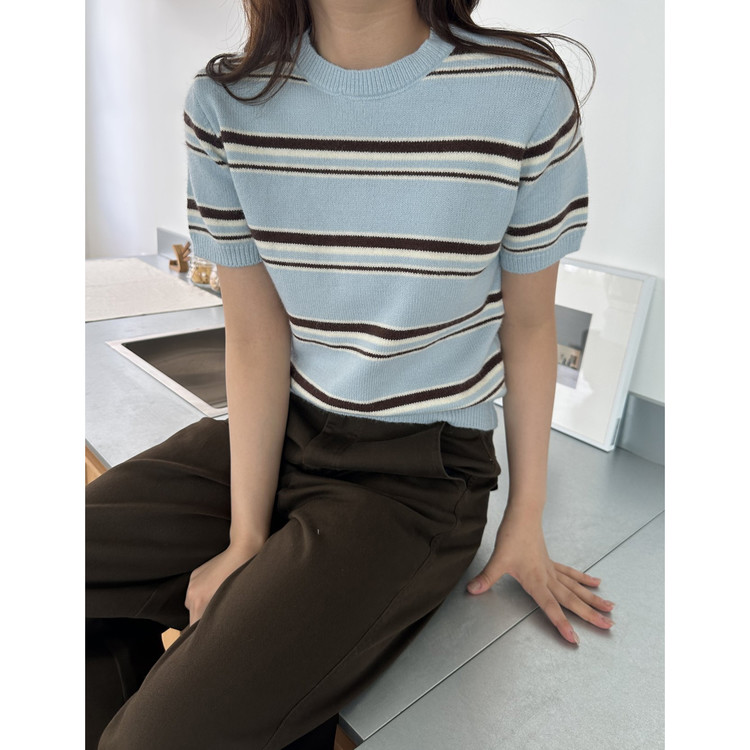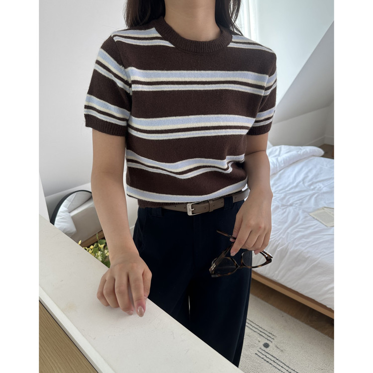 너드 단가라 반팔 니트