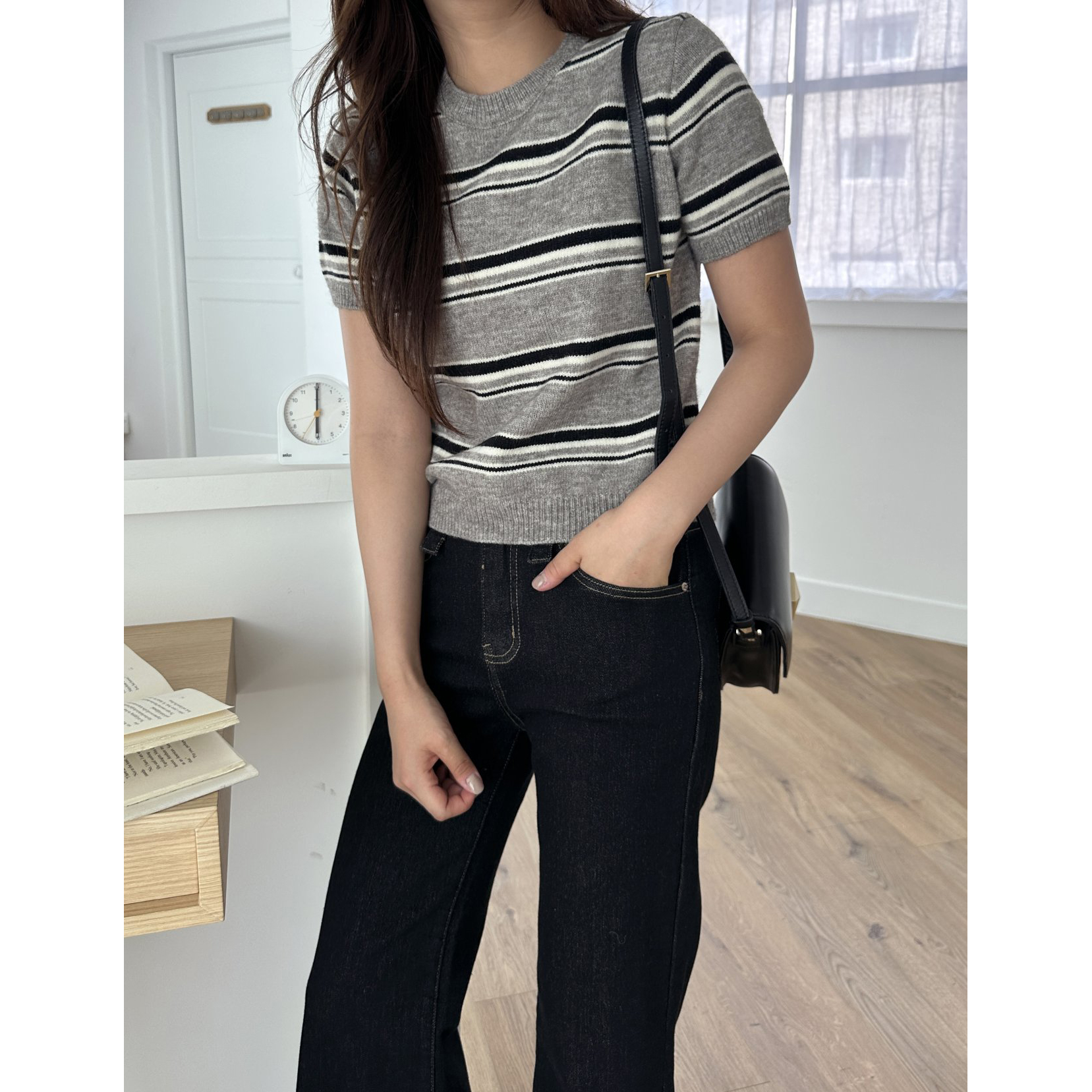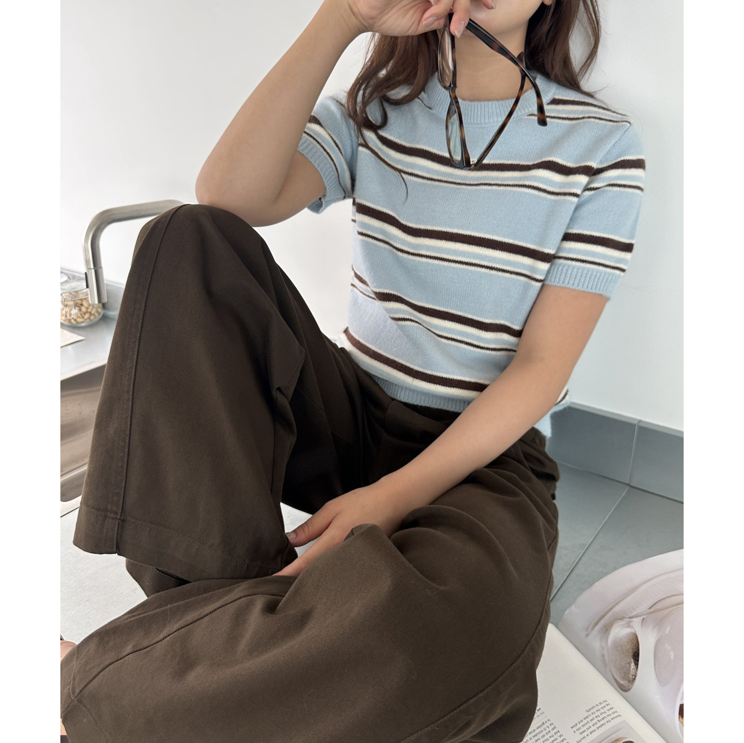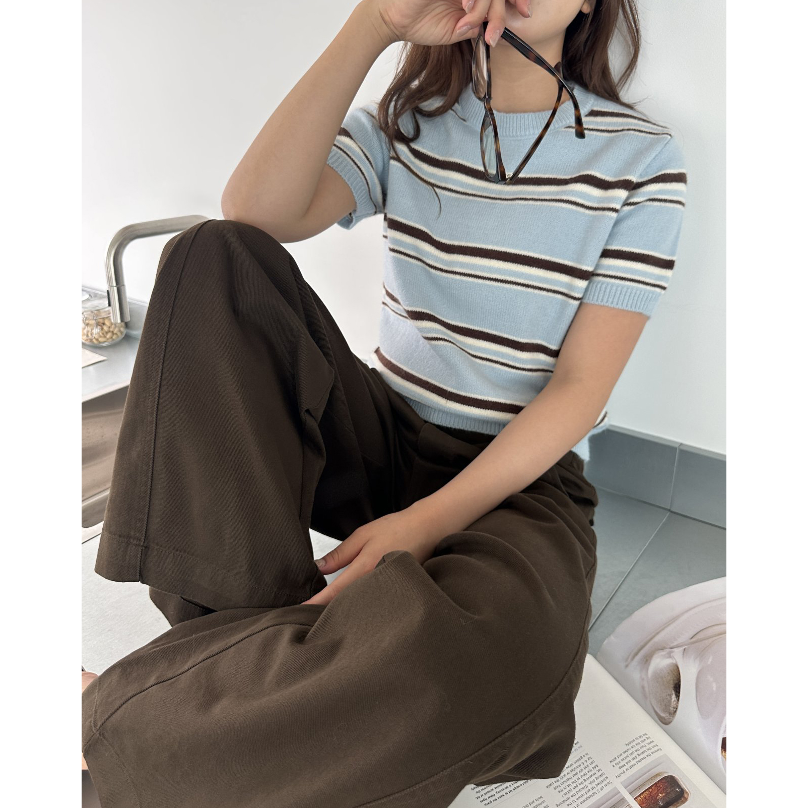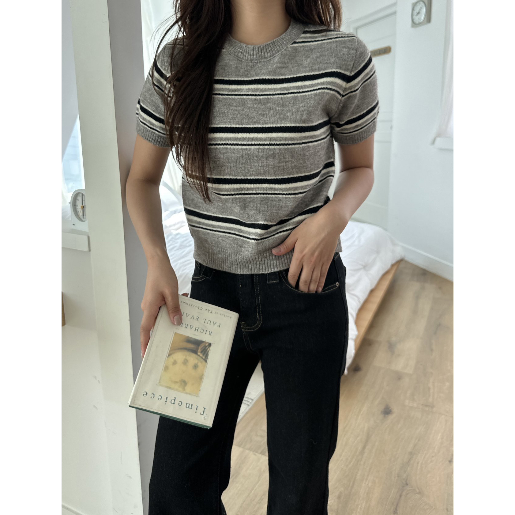 너드 단가라 반팔 니트