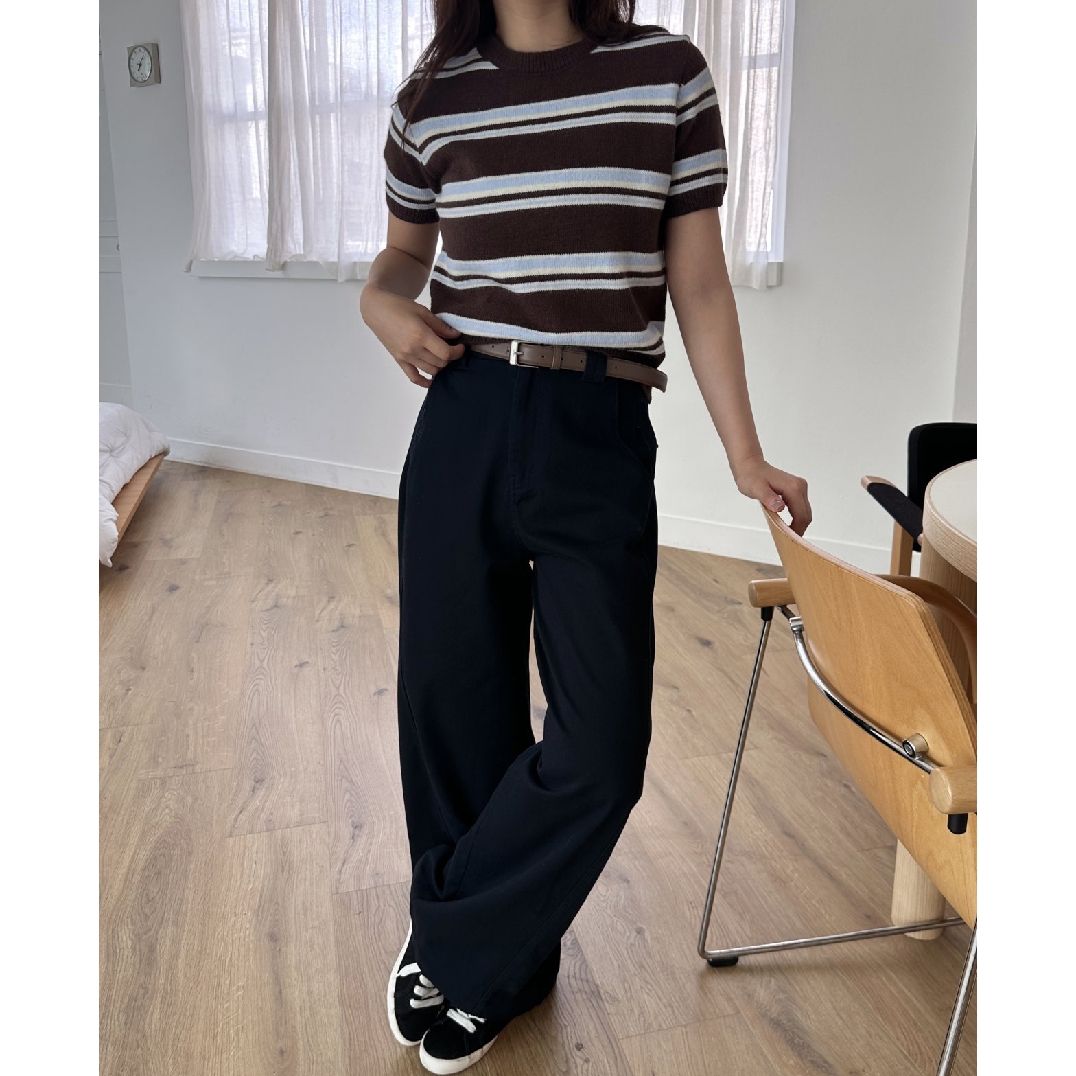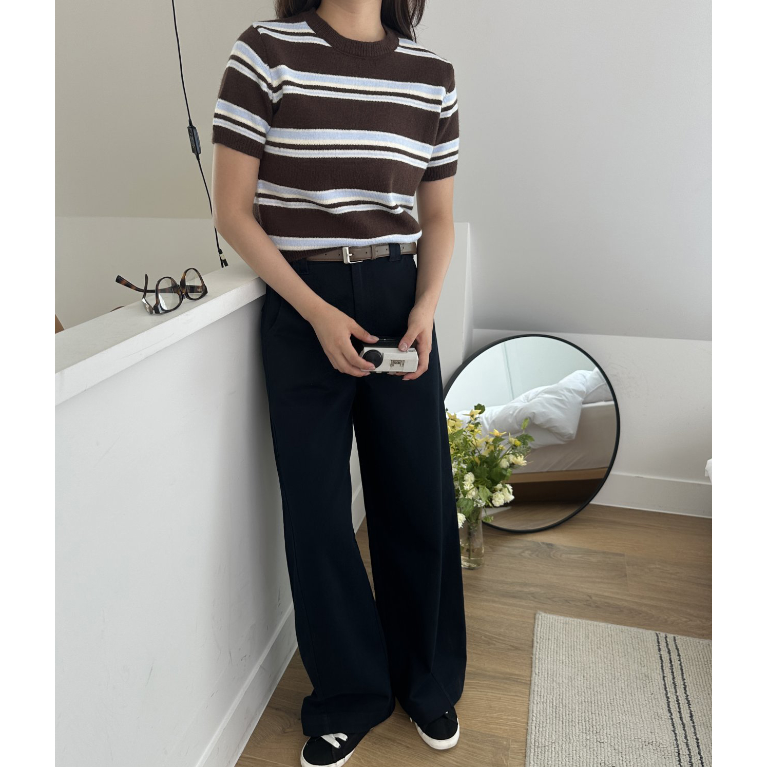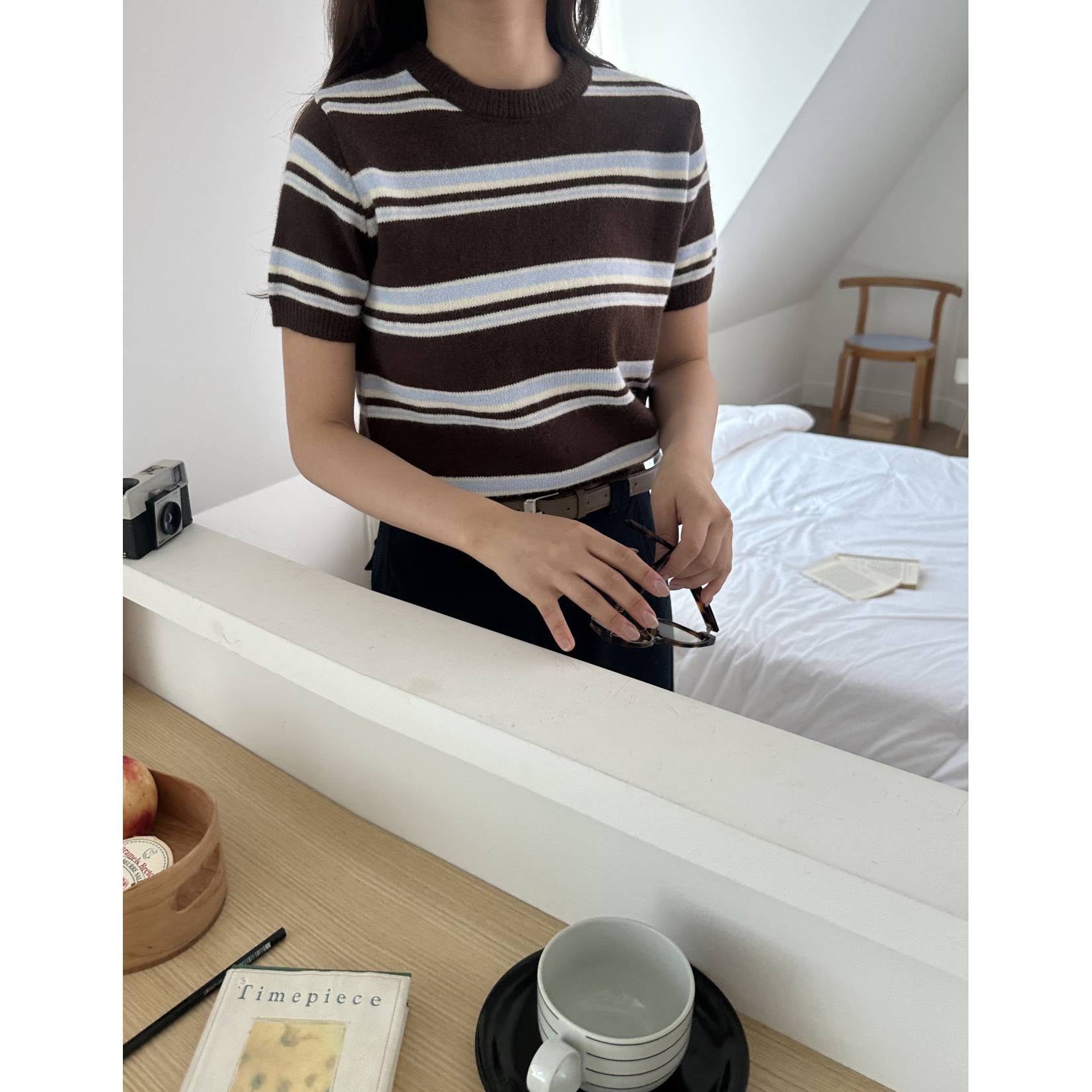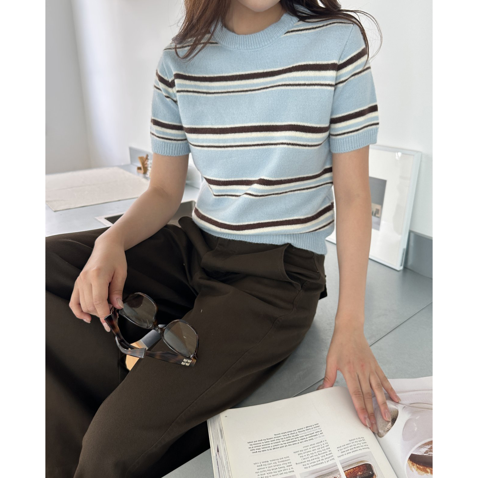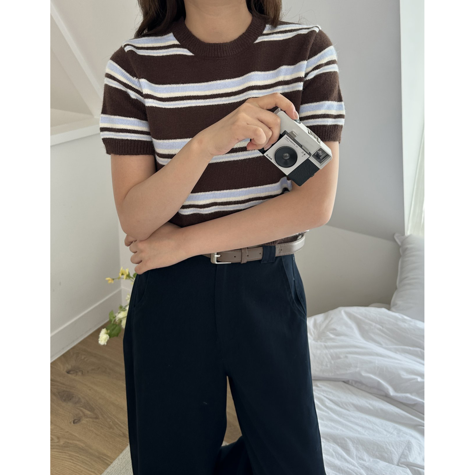 너드 단가라 반팔 니트