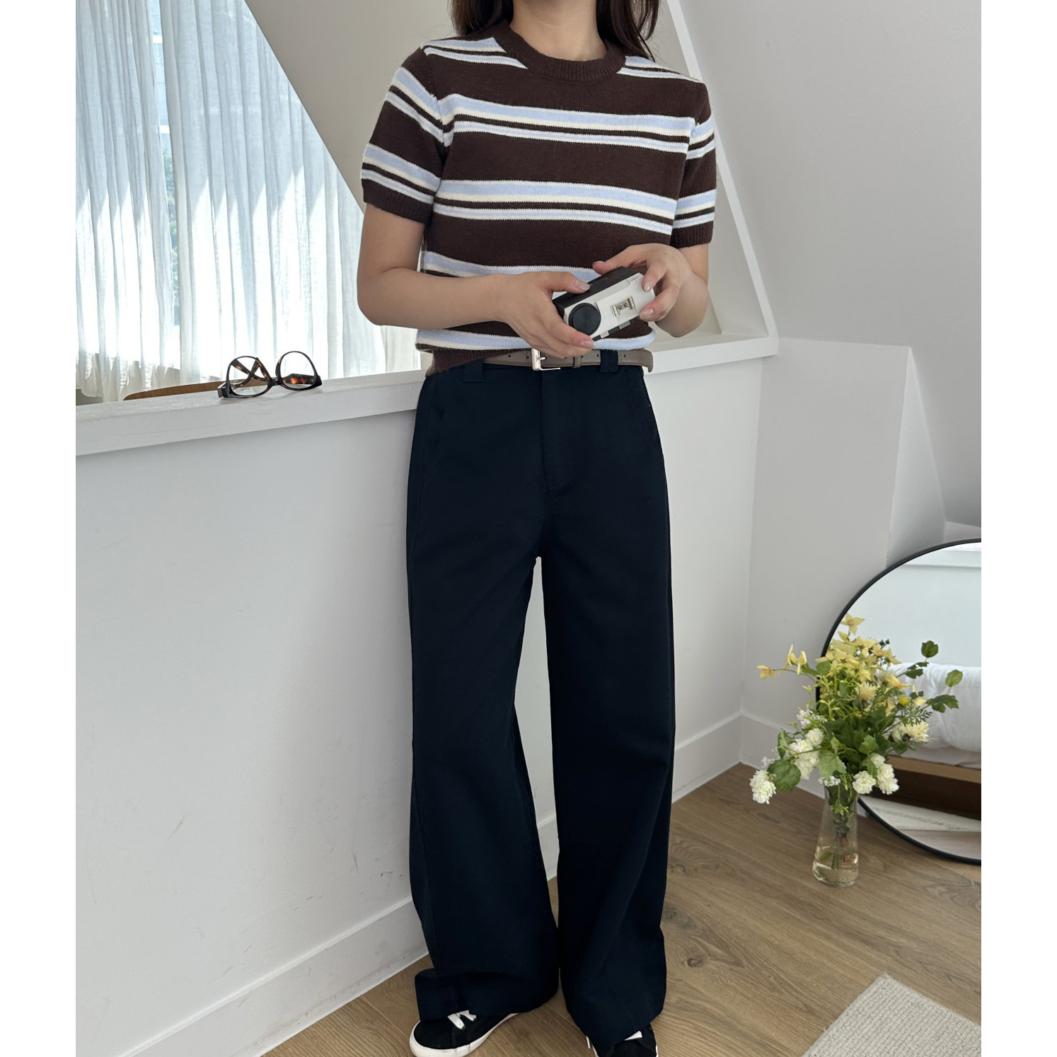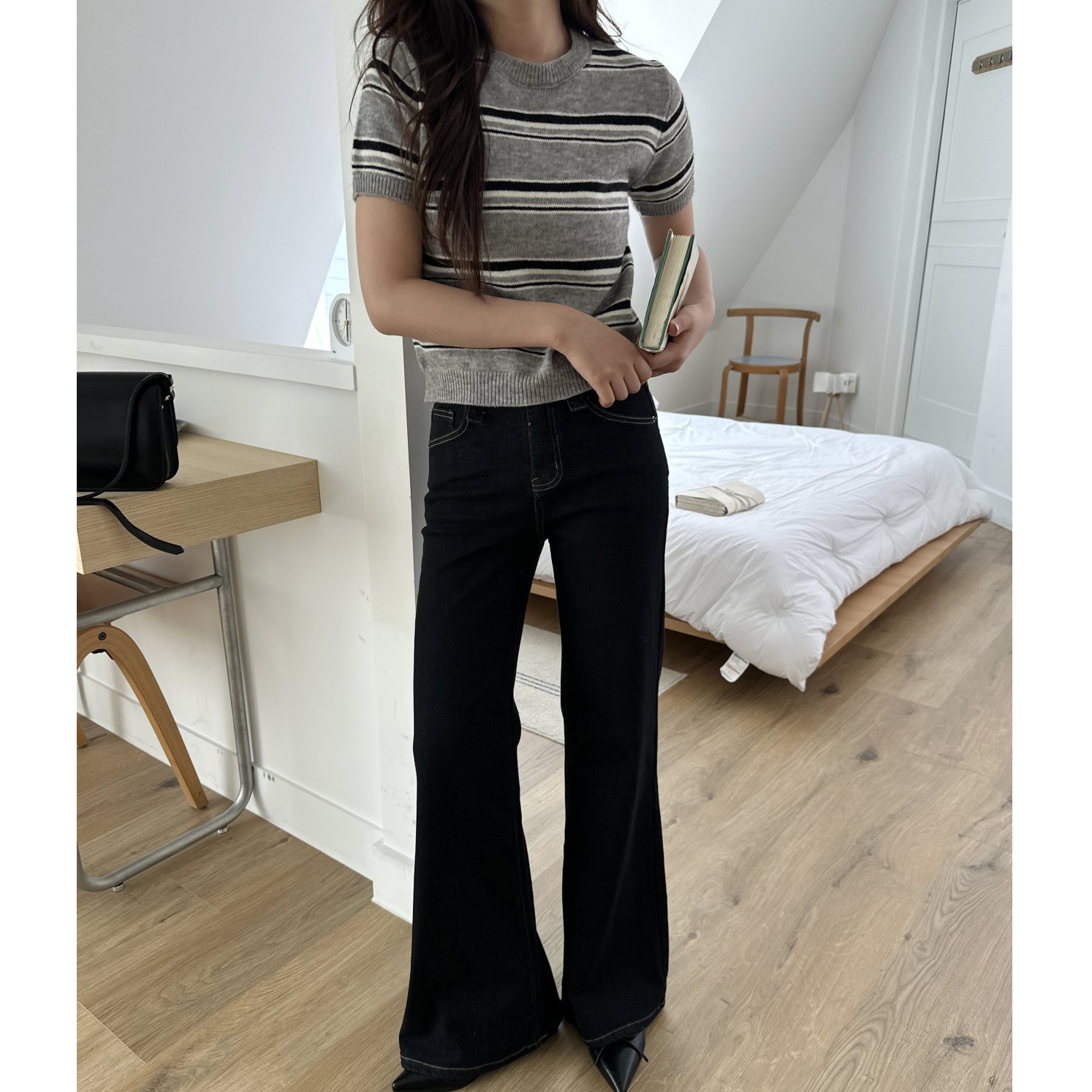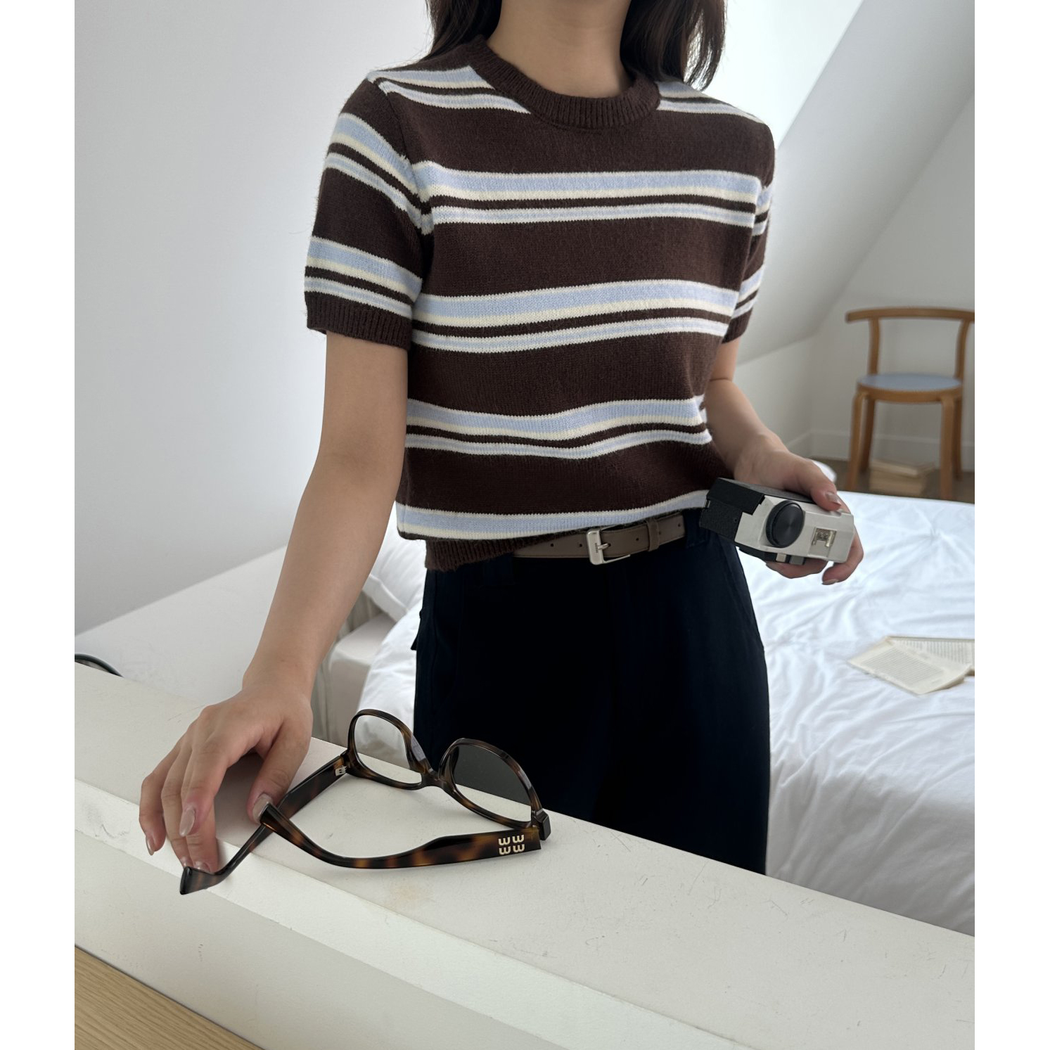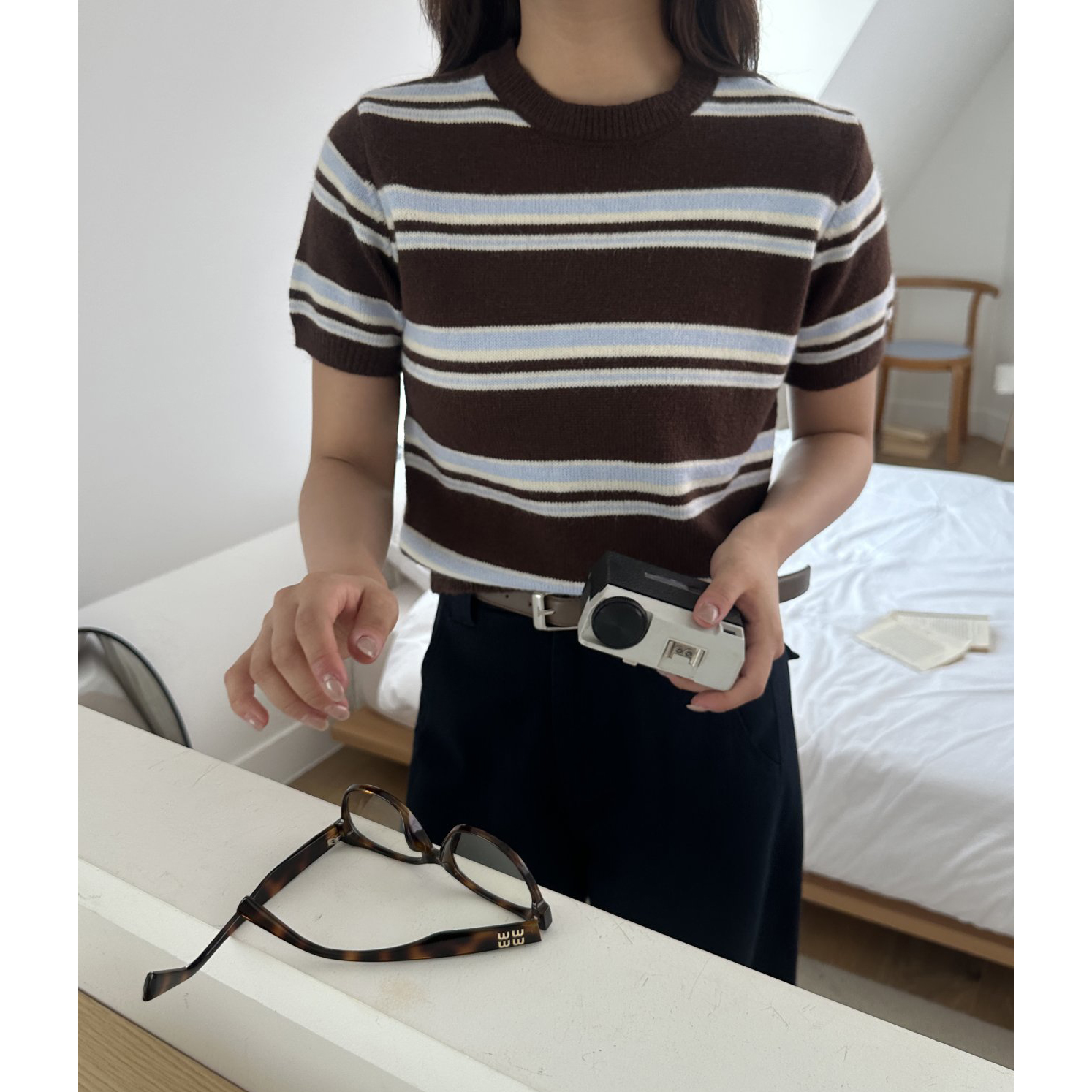 너드 단가라 반팔 니트