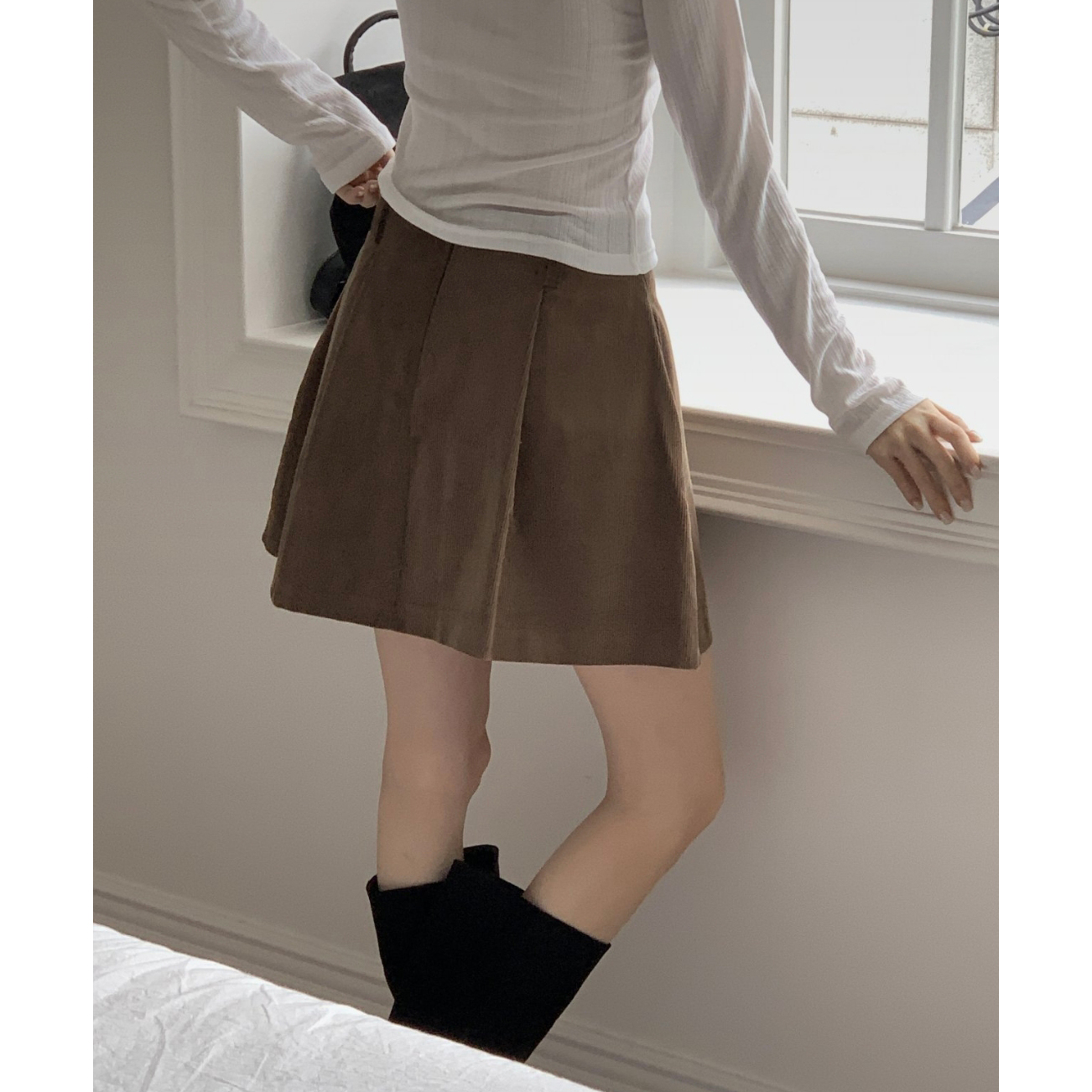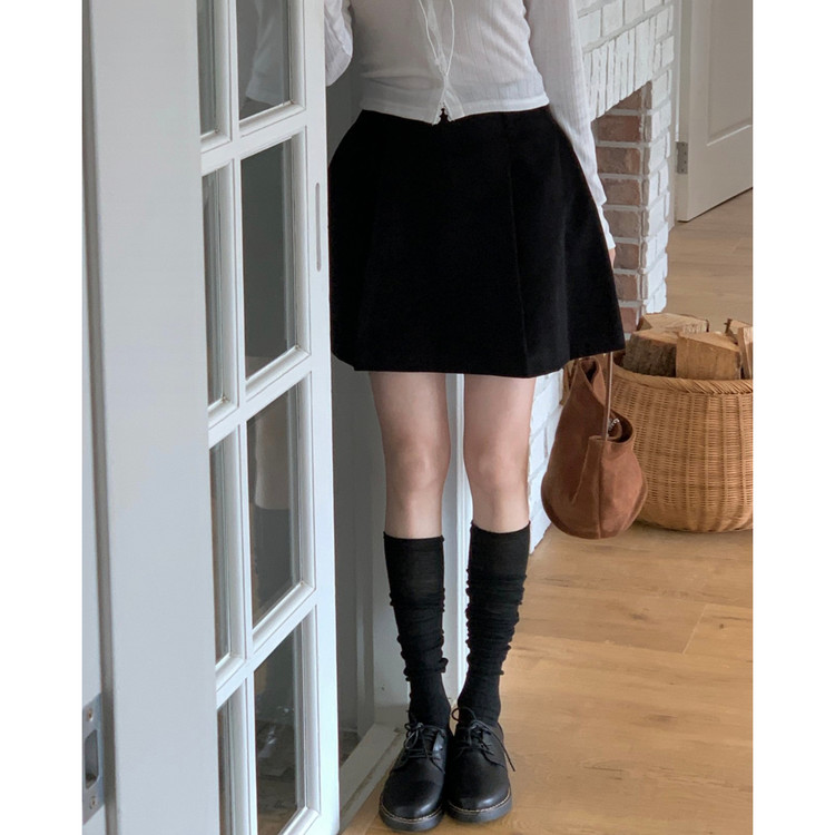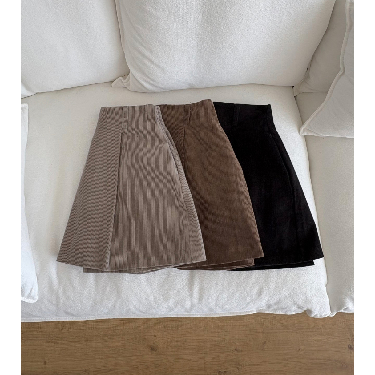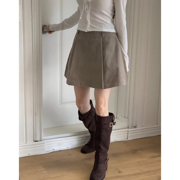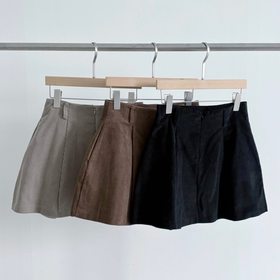 펌킨 코듀로이 핀턱 미니 스커트
