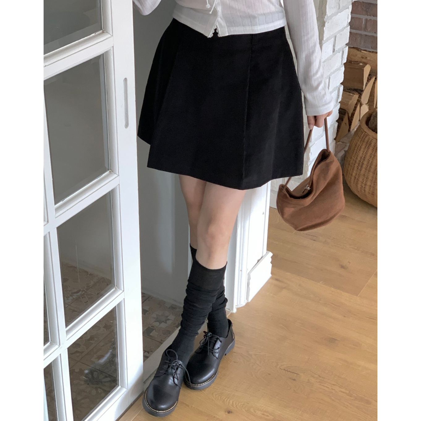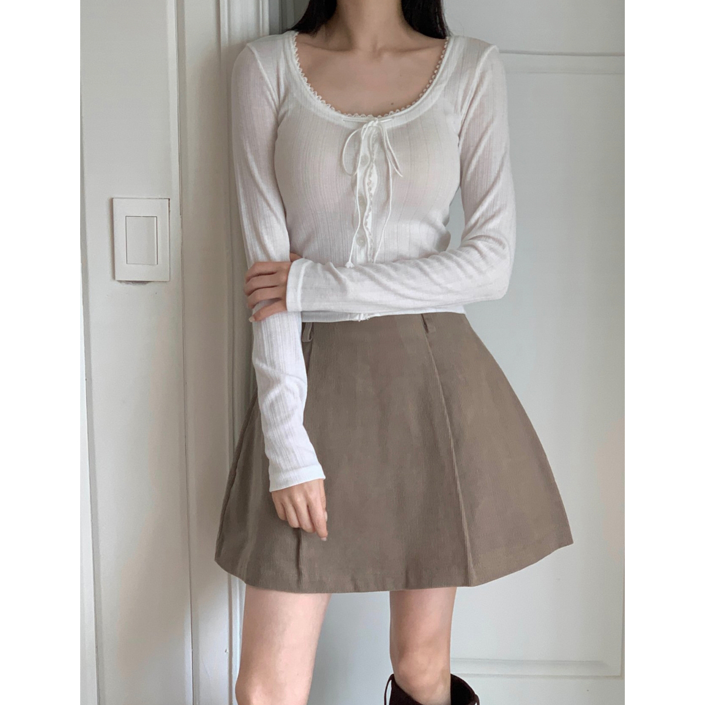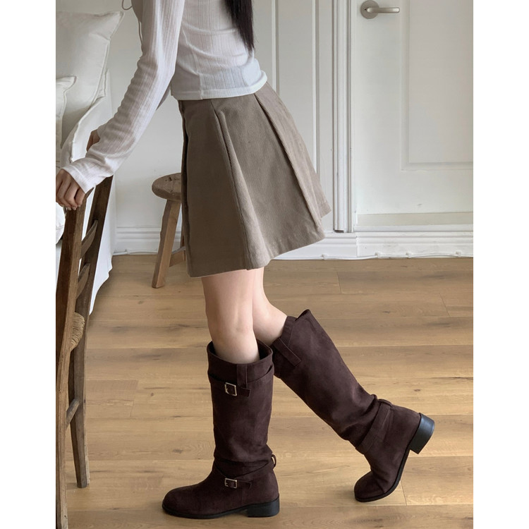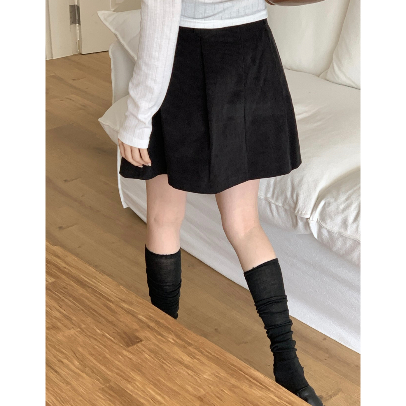 펌킨 코듀로이 핀턱 미니 스커트