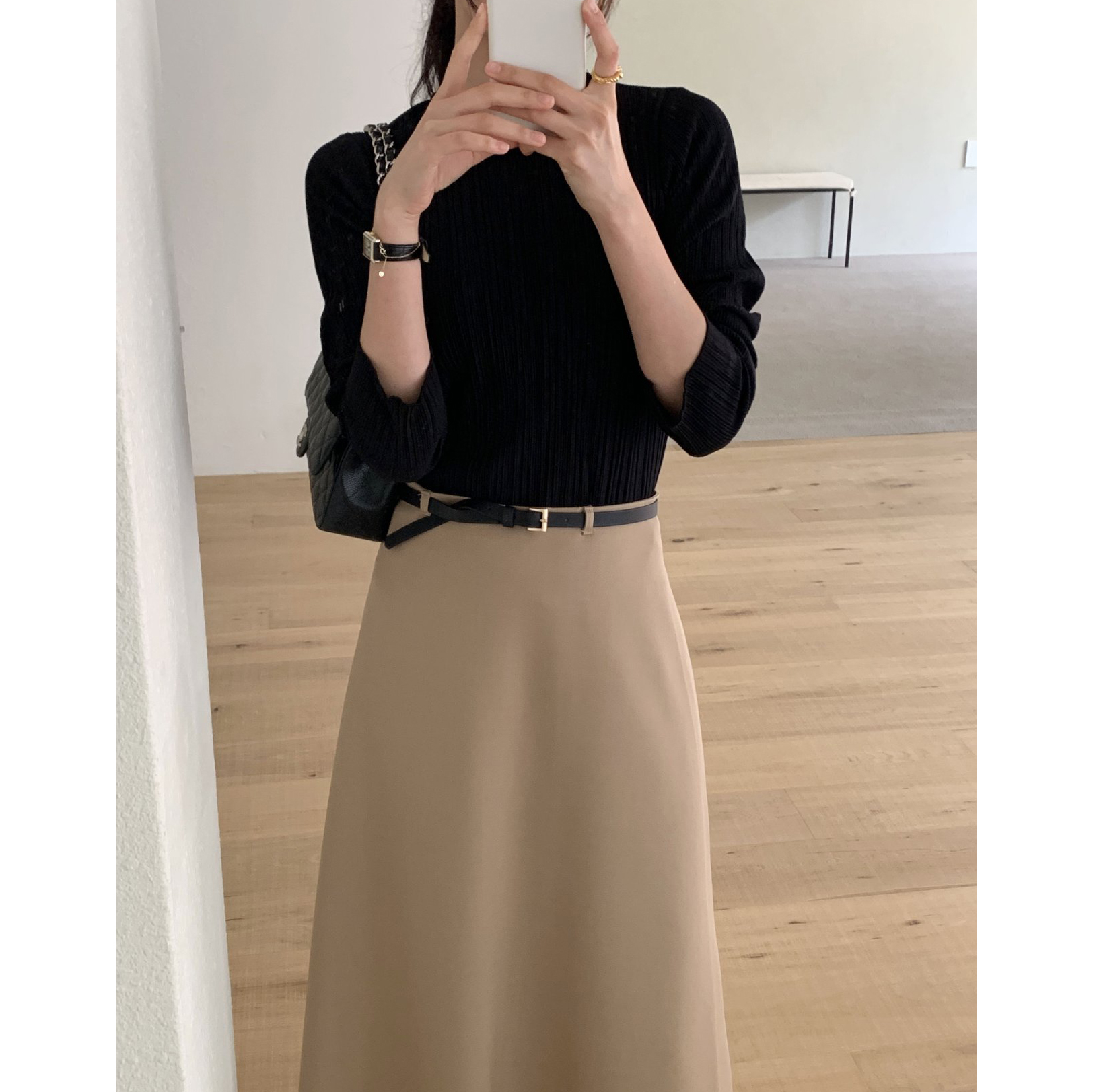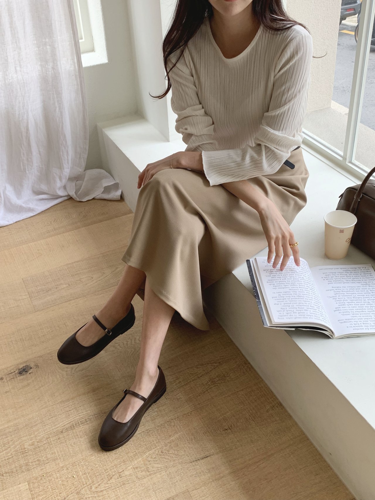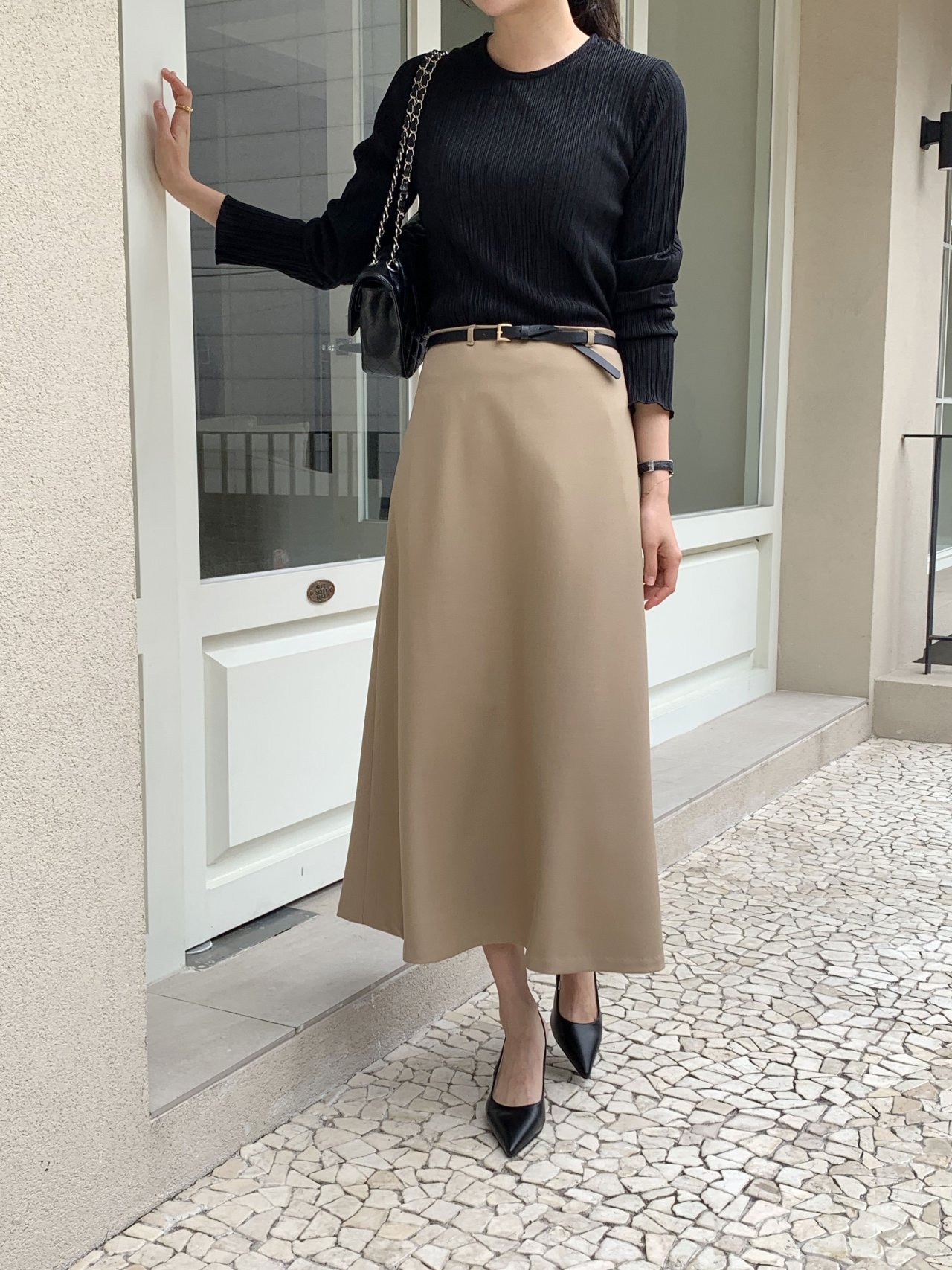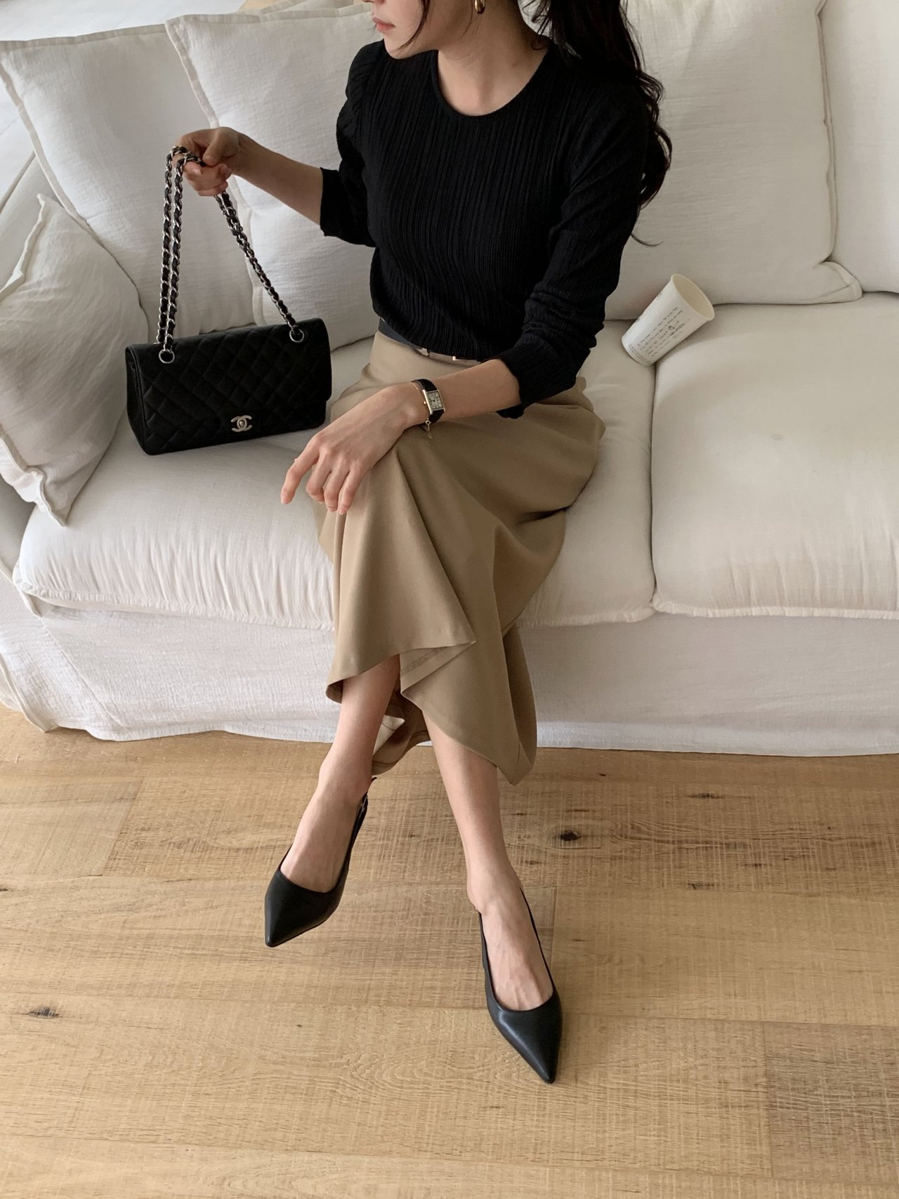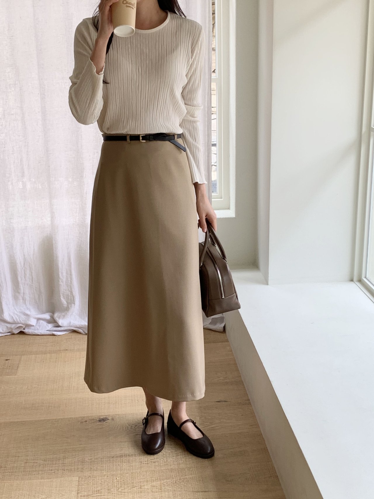 라미 주름 엠보 긴팔 기본티 블라우스