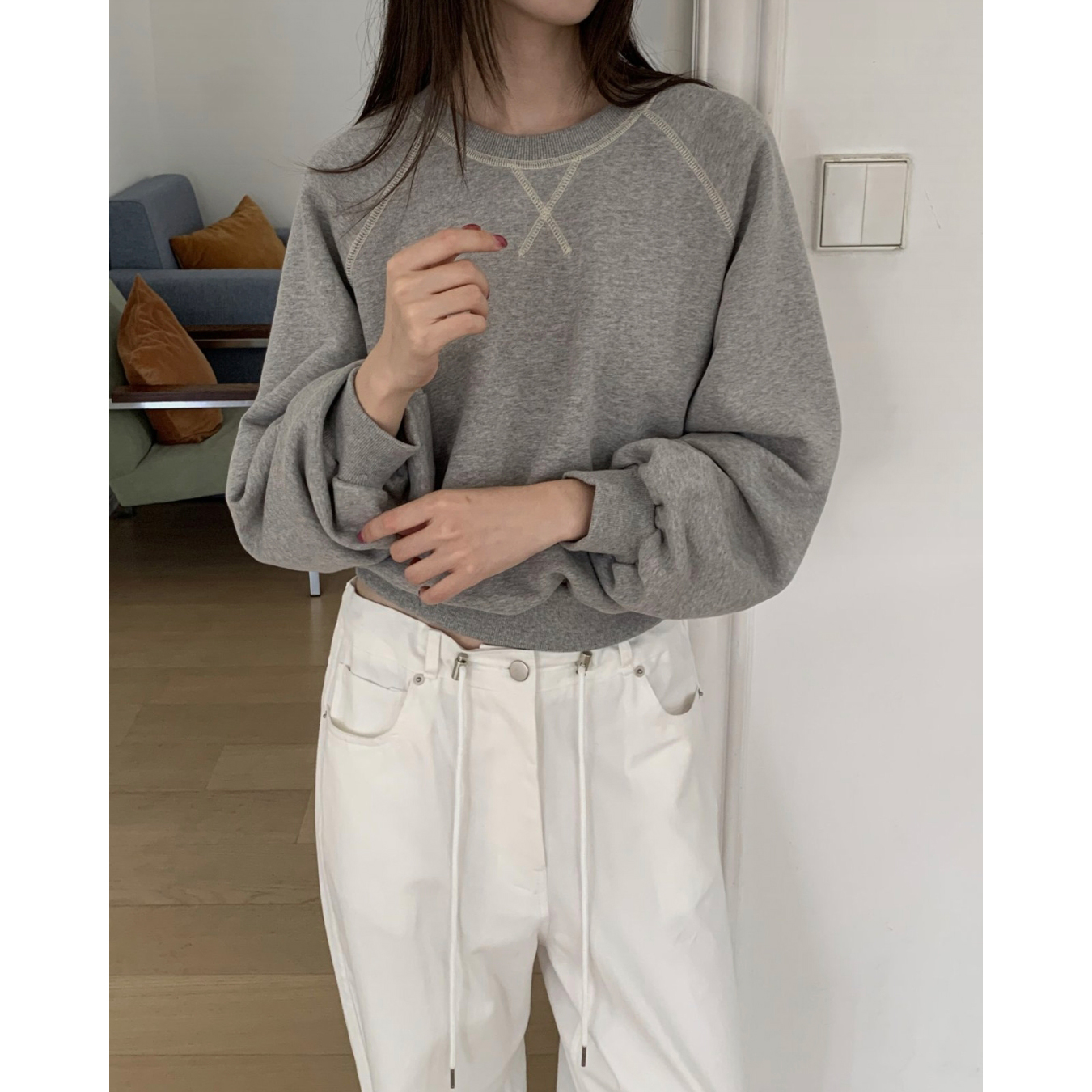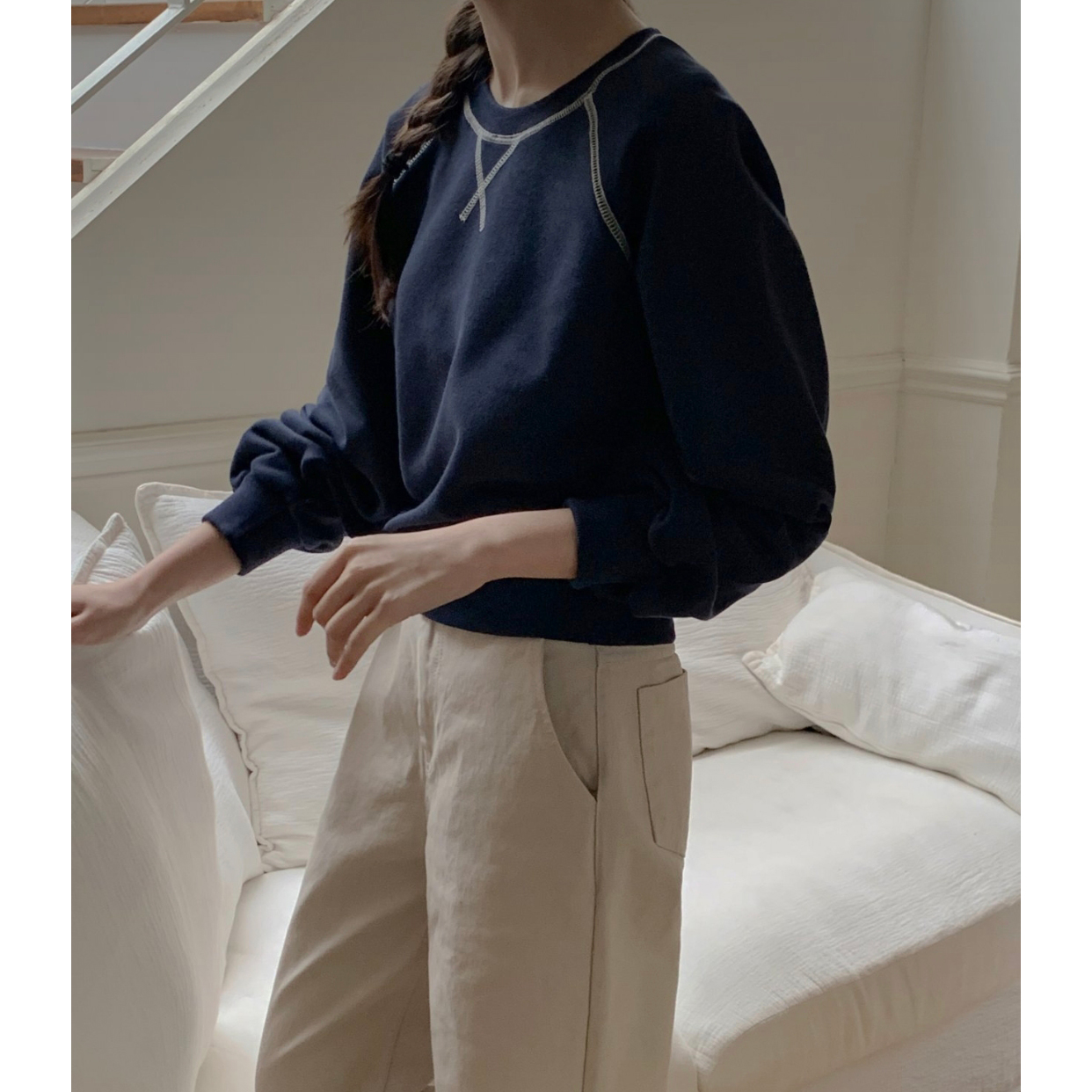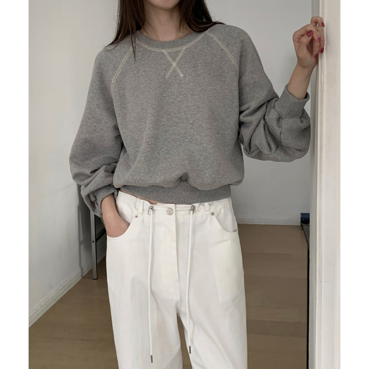나그랑 스티치 크롭 맨투맨