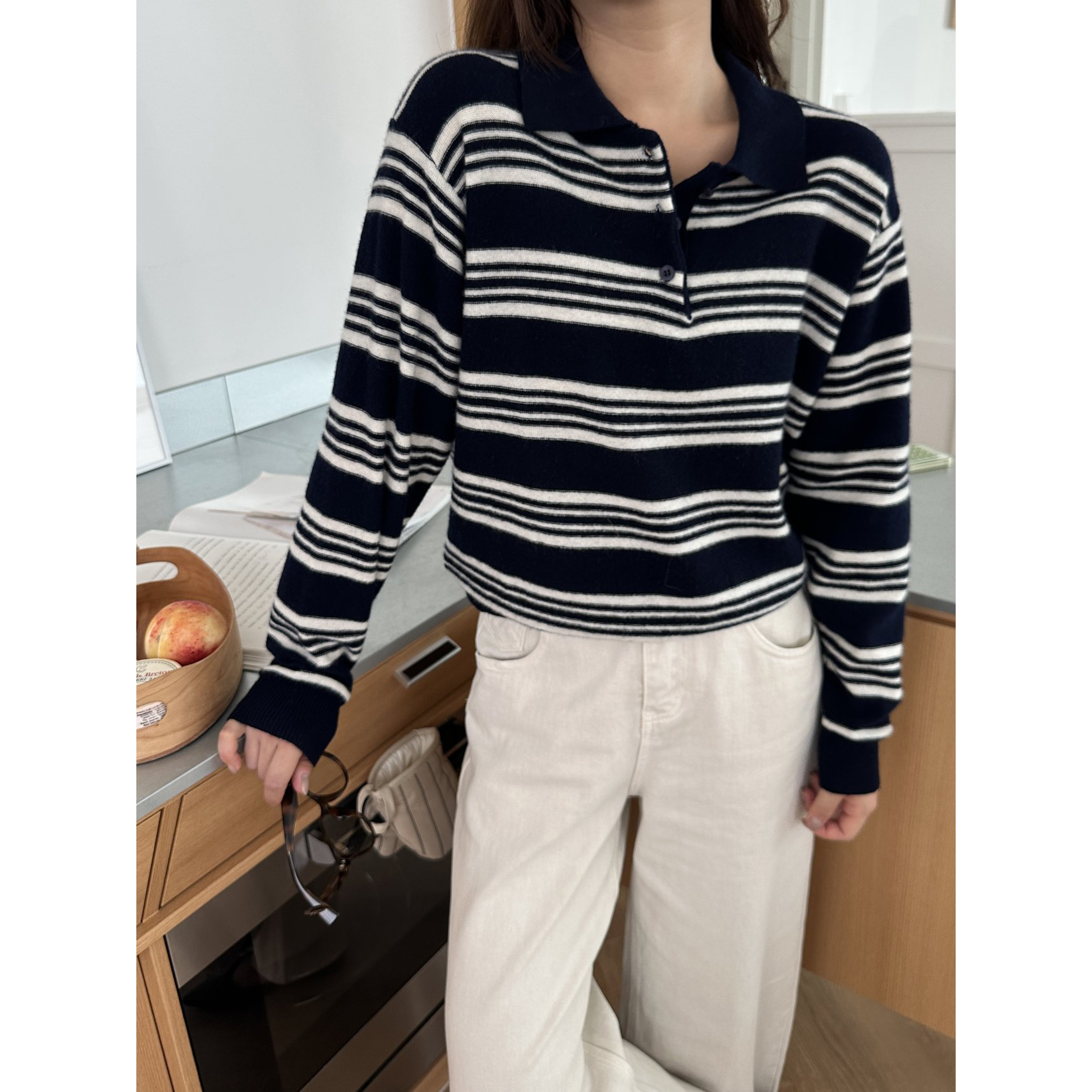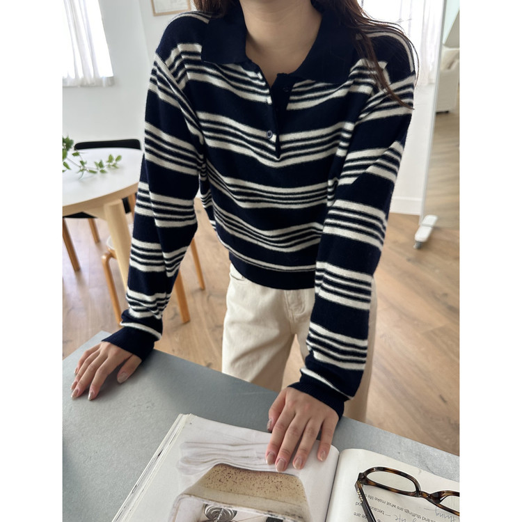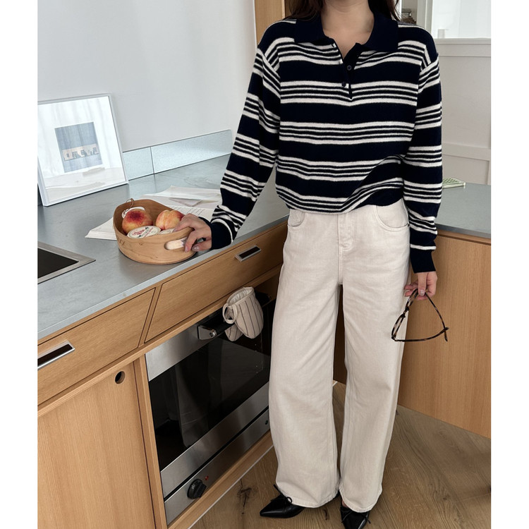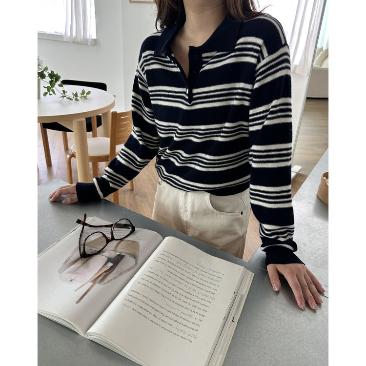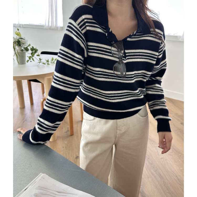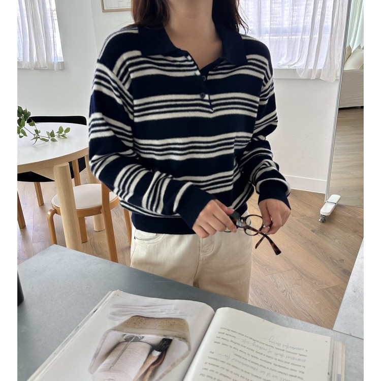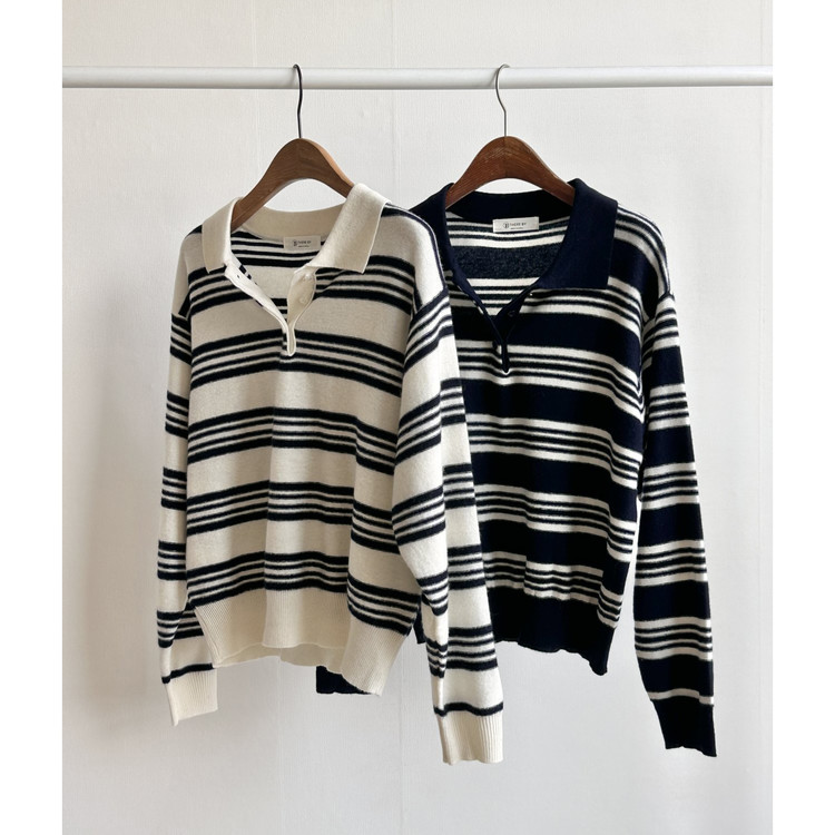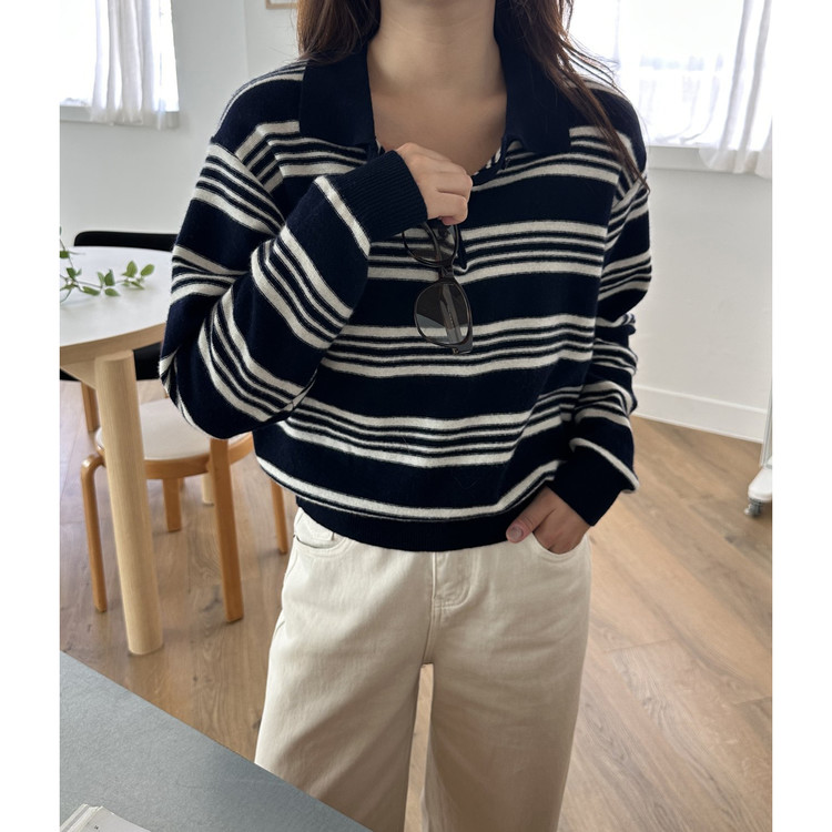 스윗 울100 스트라이프 카라 니트
