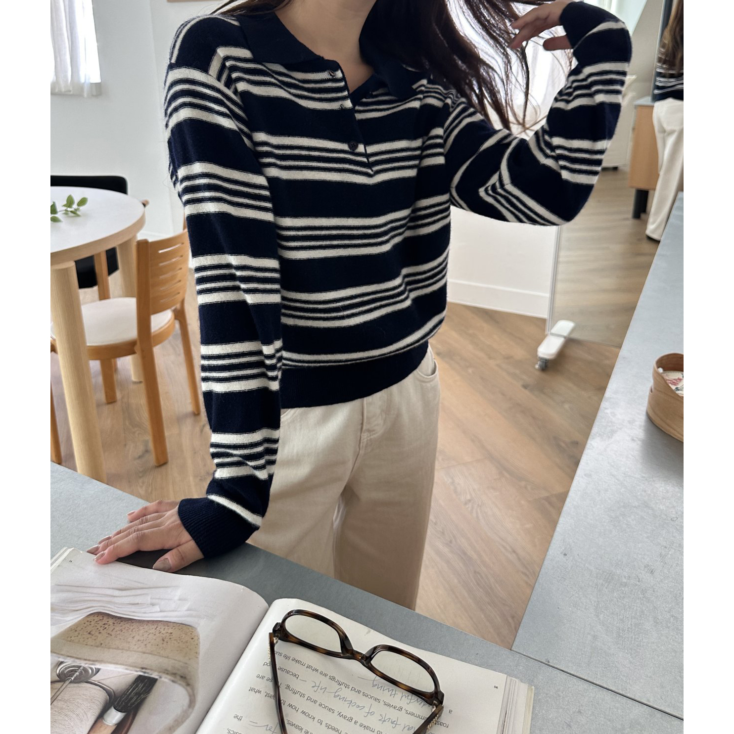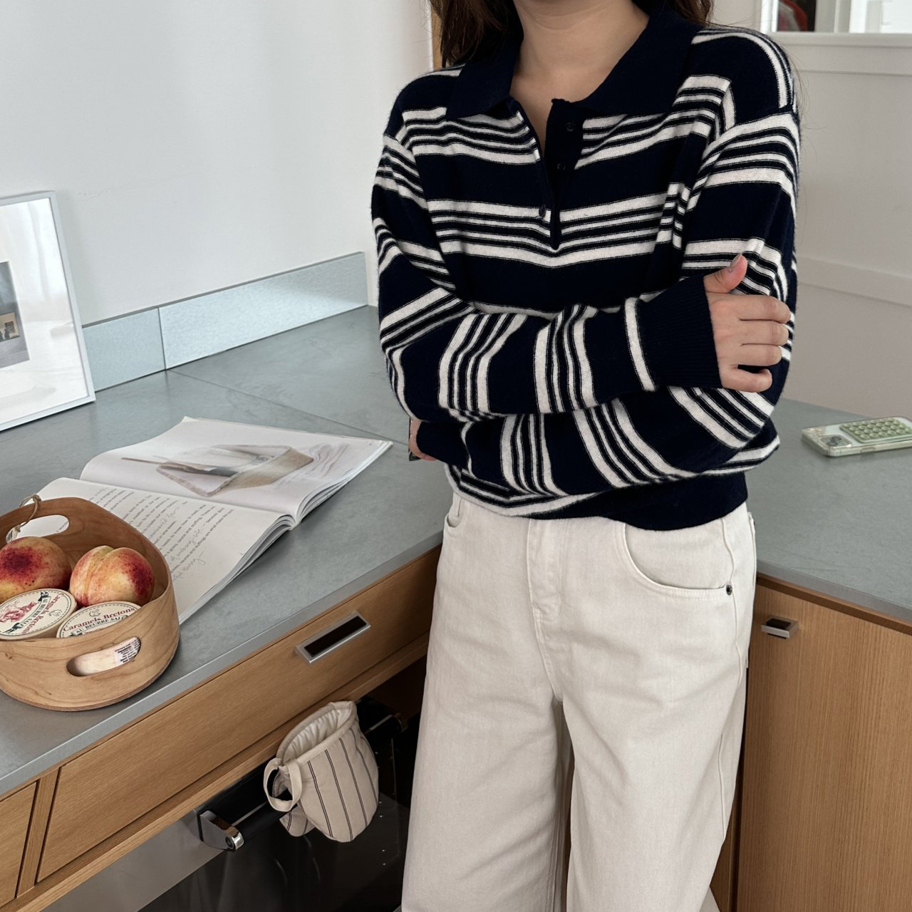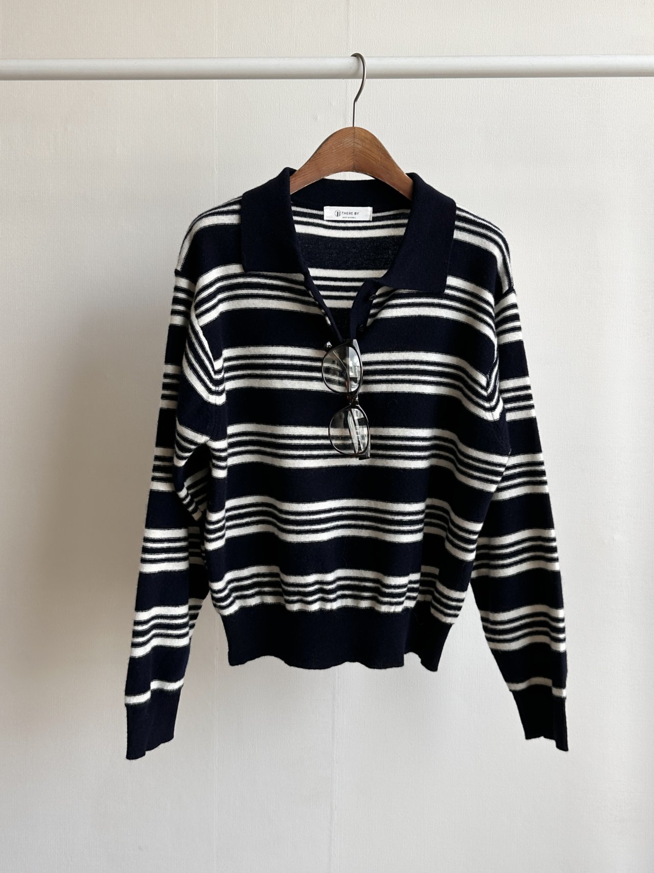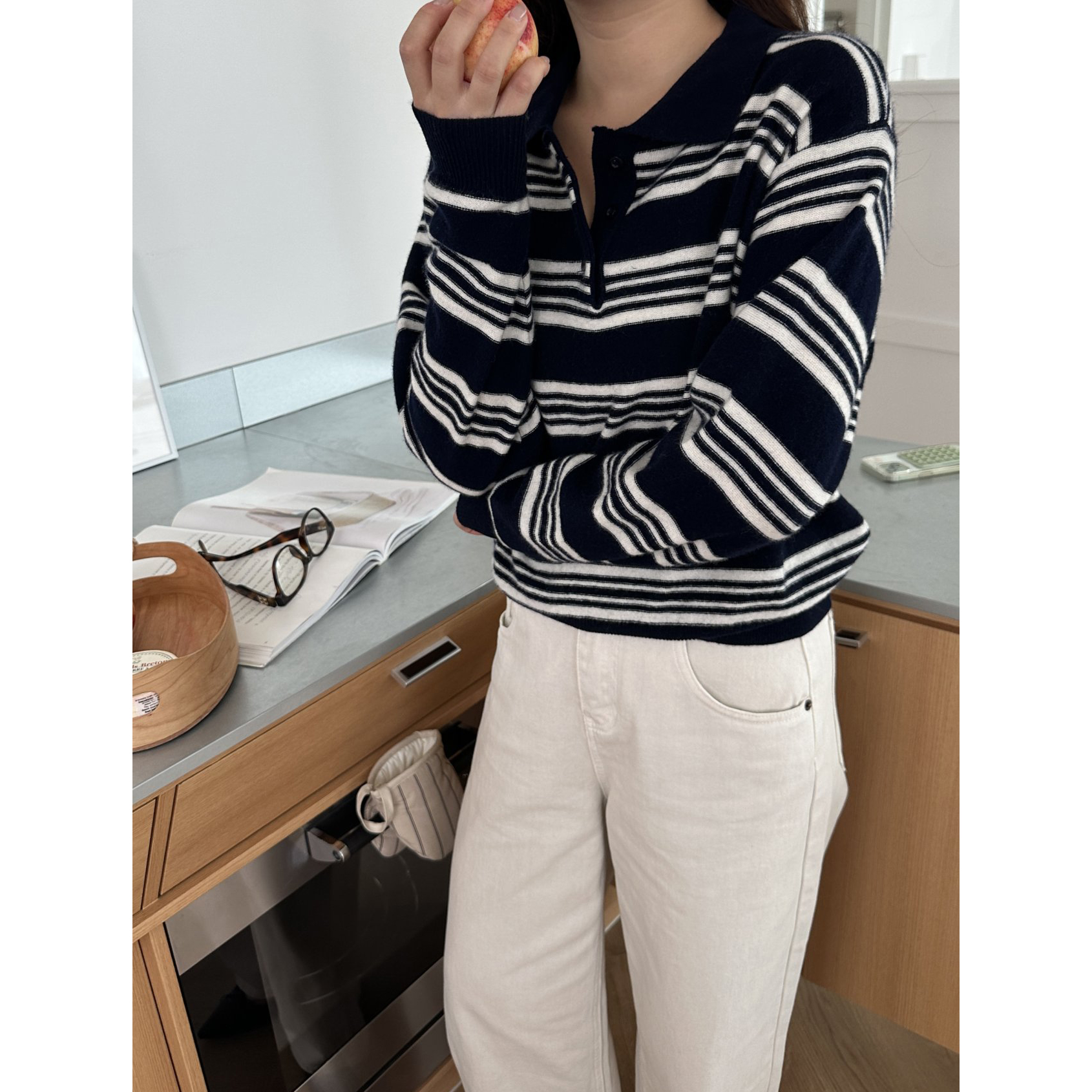 스윗 울100 스트라이프 카라 니트