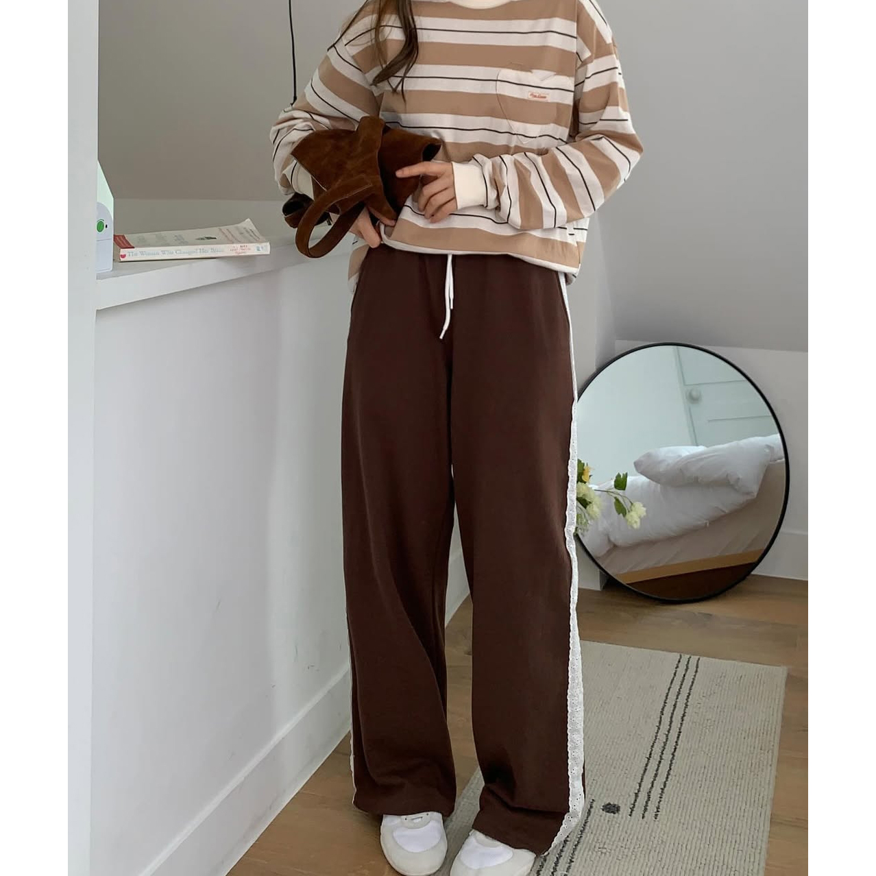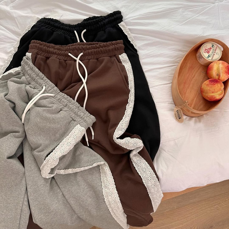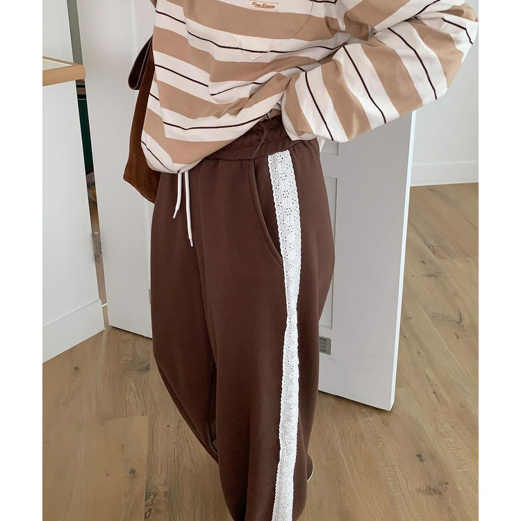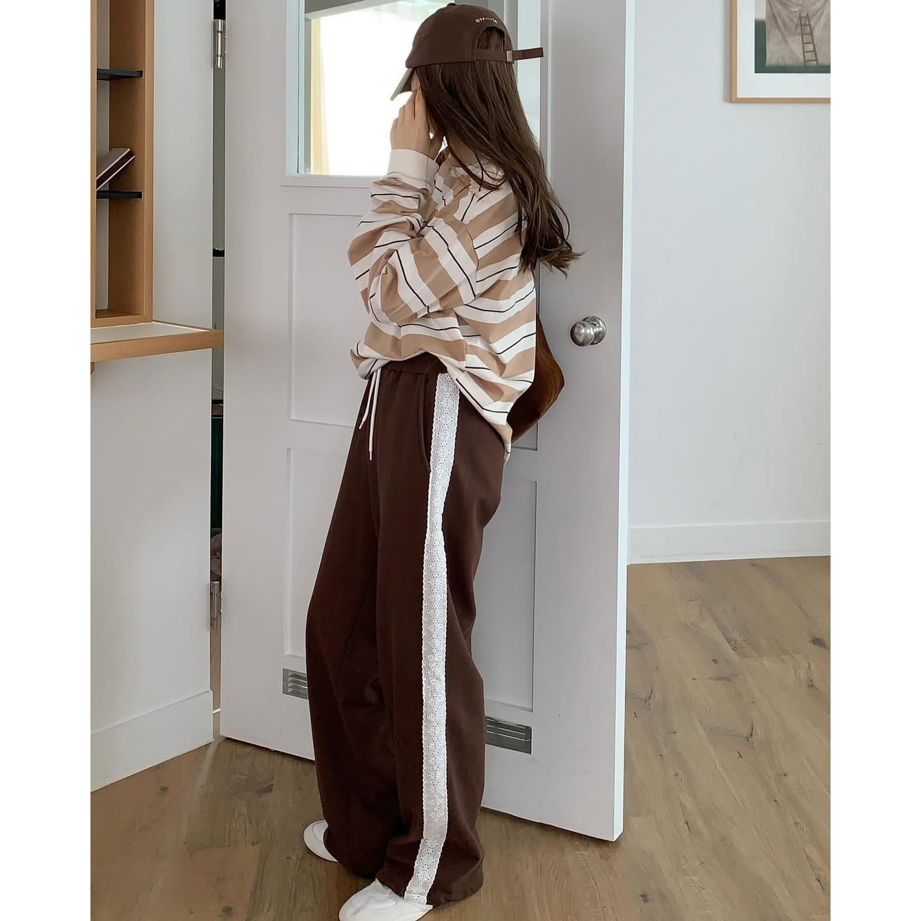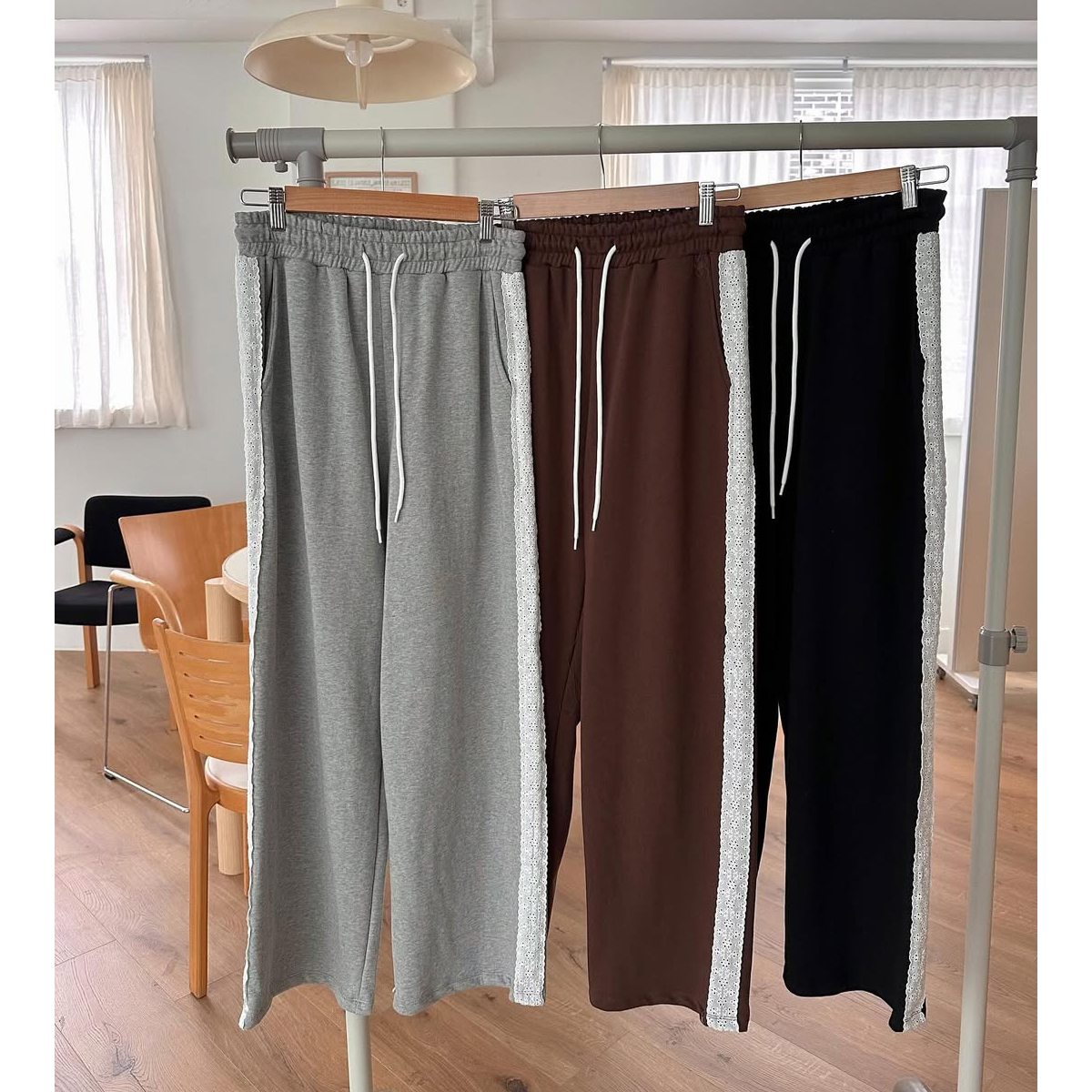 레이스 라인 트리밍 트랙 팬츠 밴딩 트레이닝 바지
