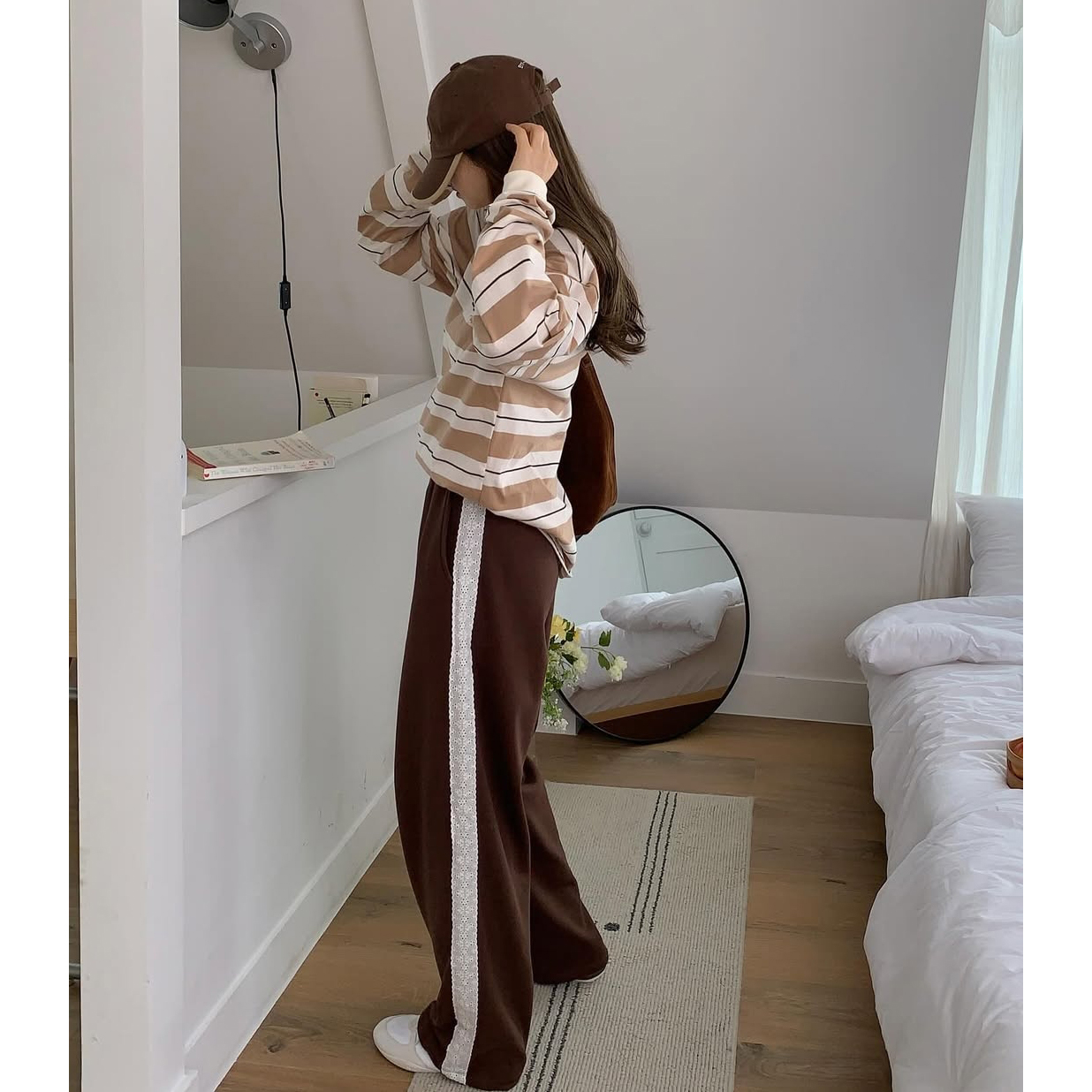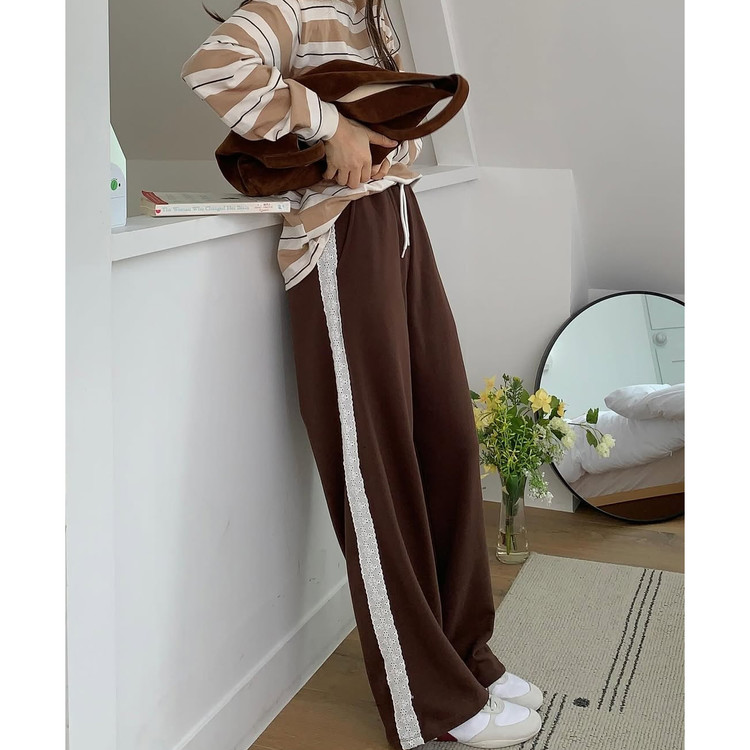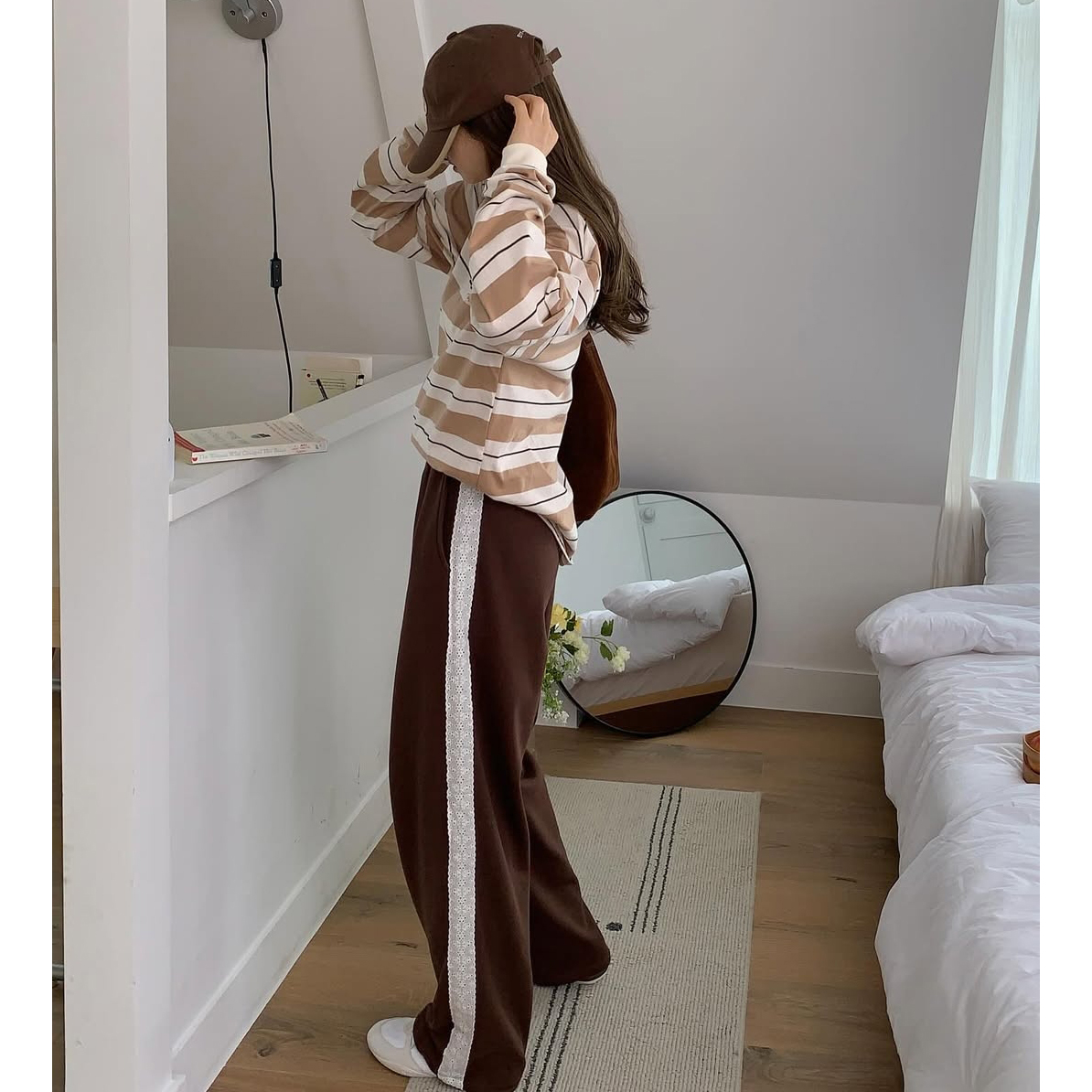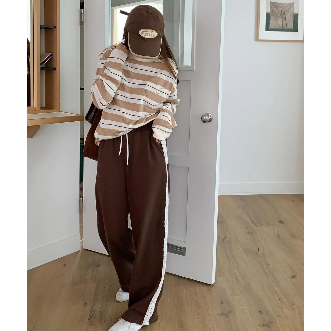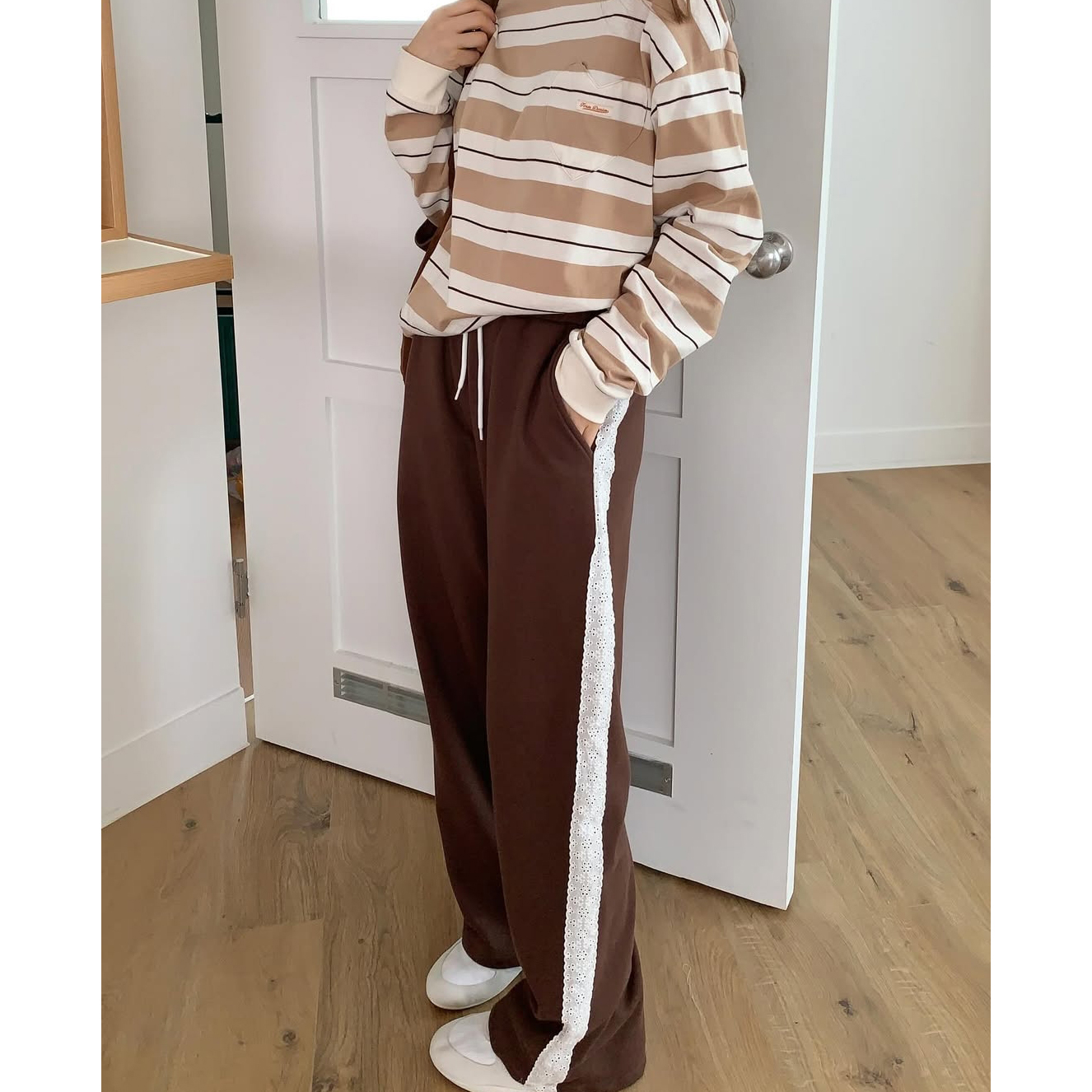 레이스 라인 트리밍 트랙 팬츠 밴딩 트레이닝 바지