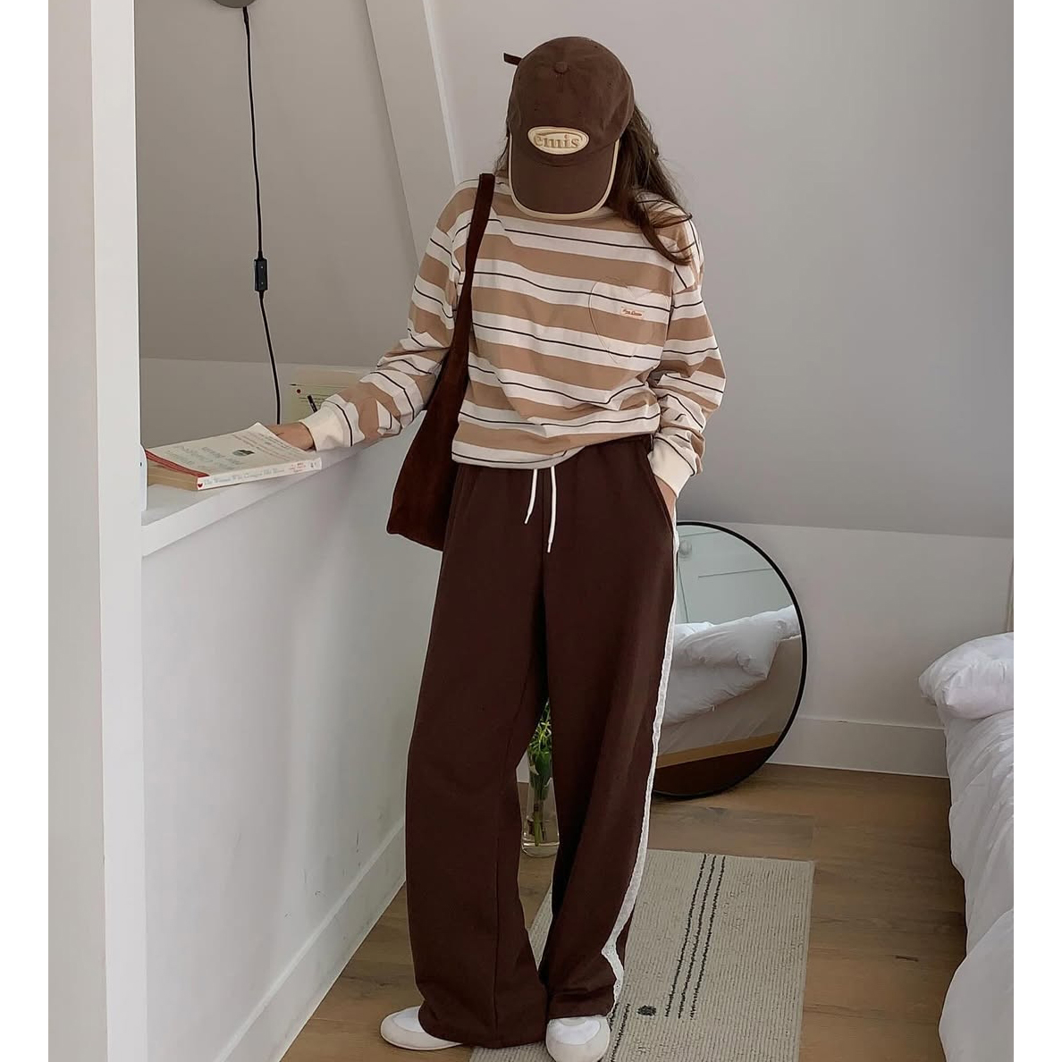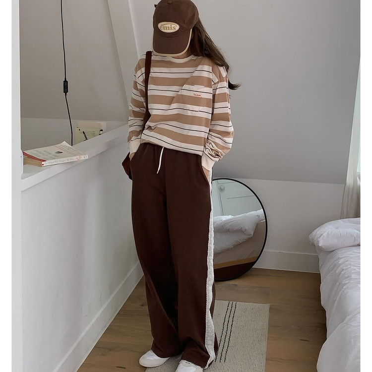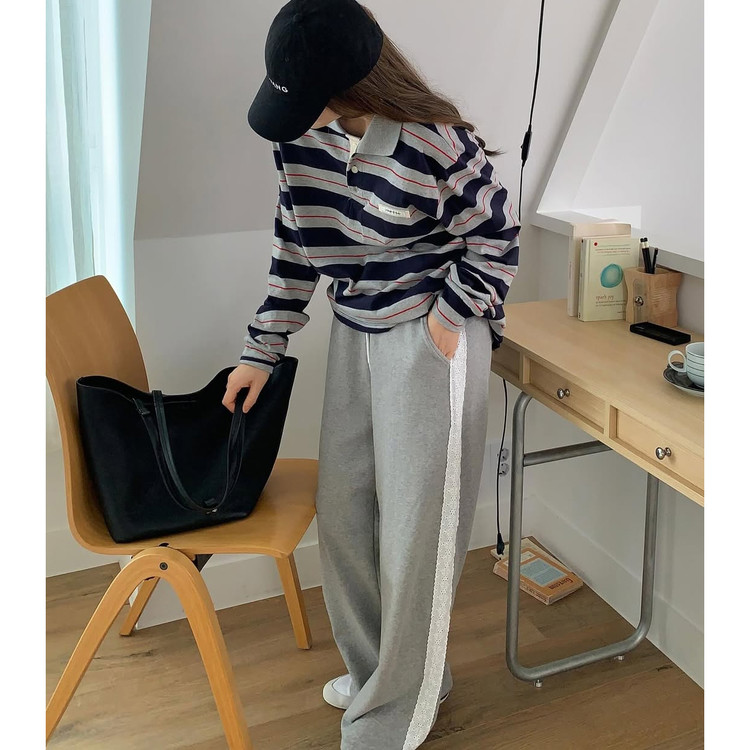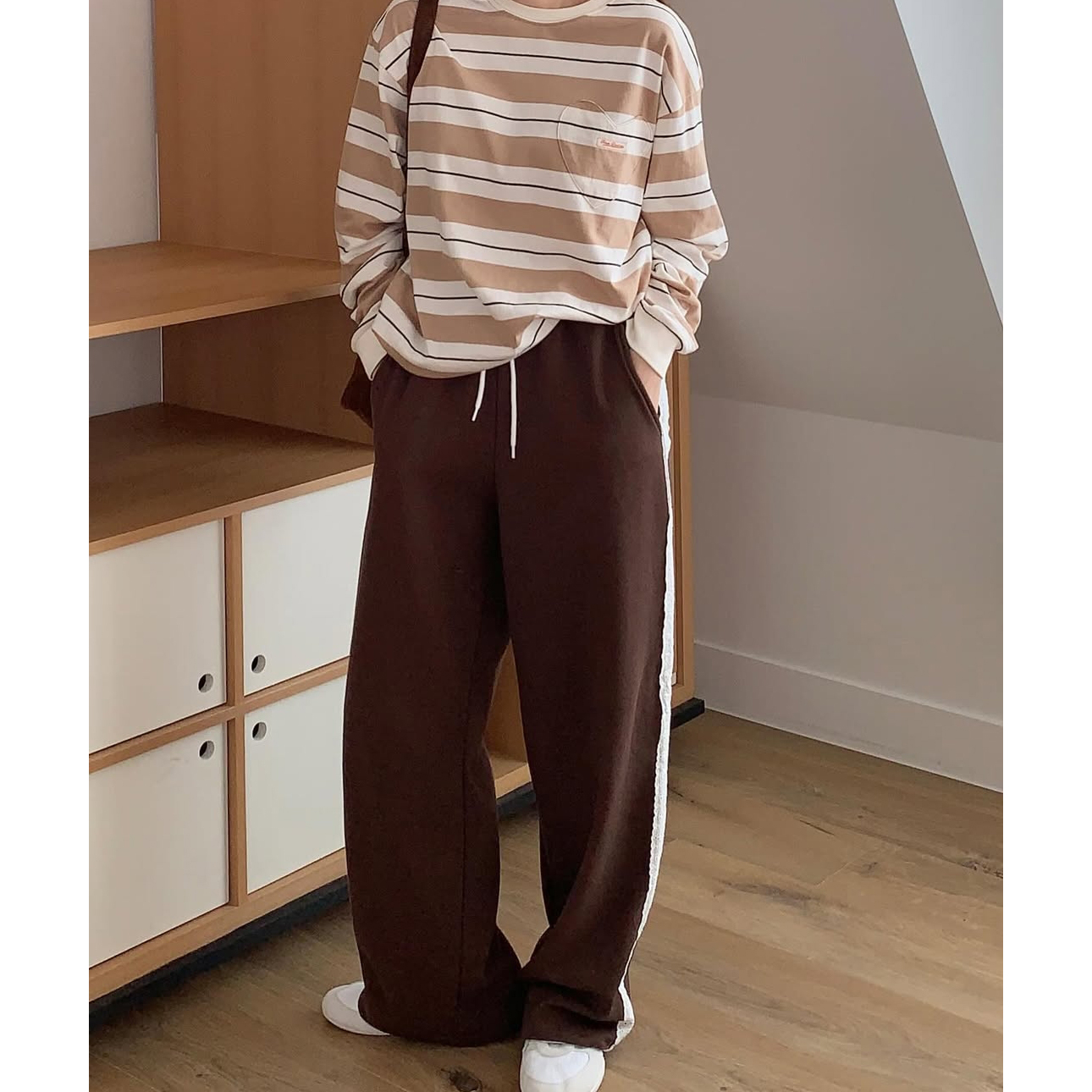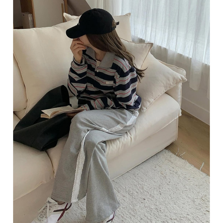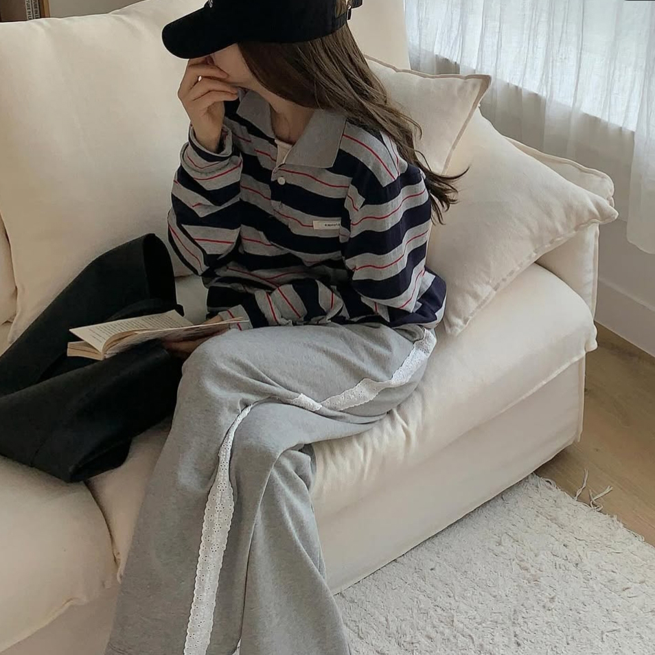 레이스 라인 트리밍 트랙 팬츠 밴딩 트레이닝 바지
