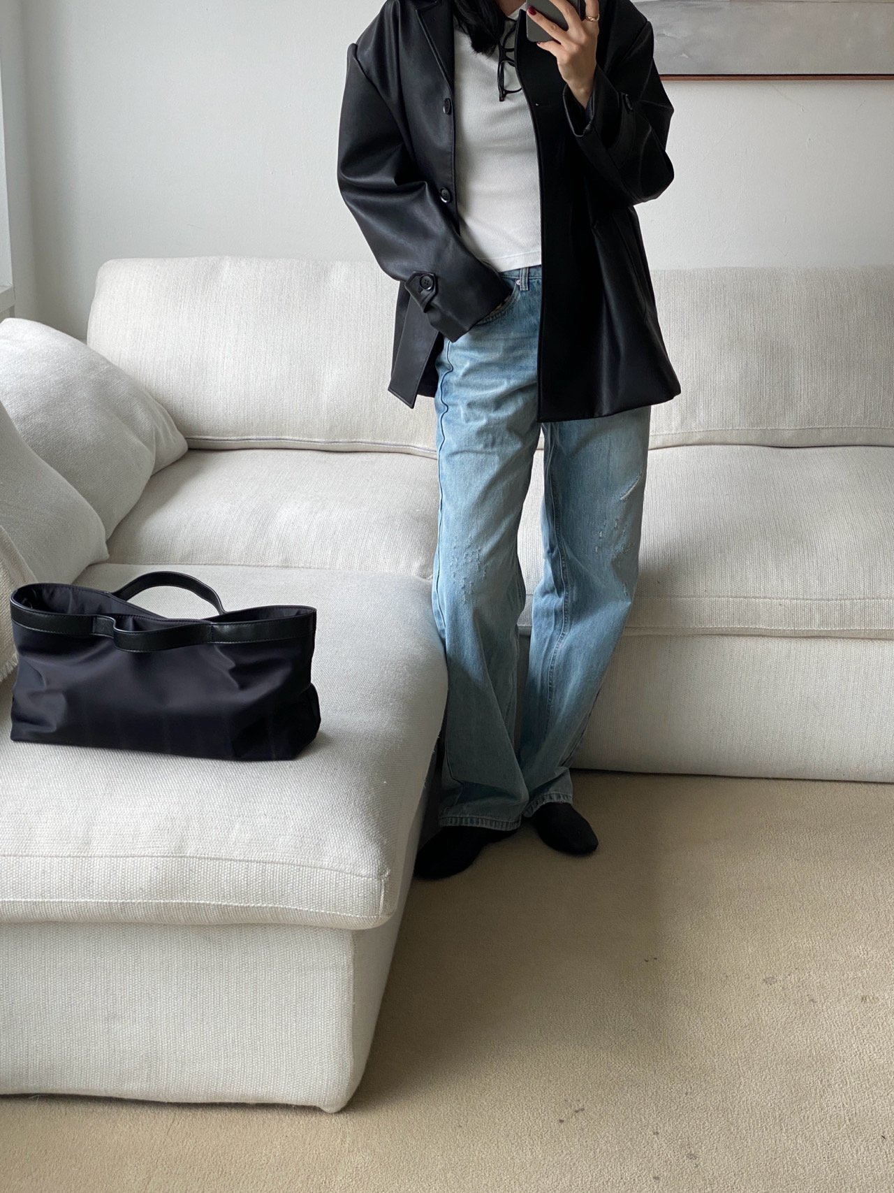 데님 원단은 염료 특성상 물빠짐 또는 이염이 있을 수 있습니다
