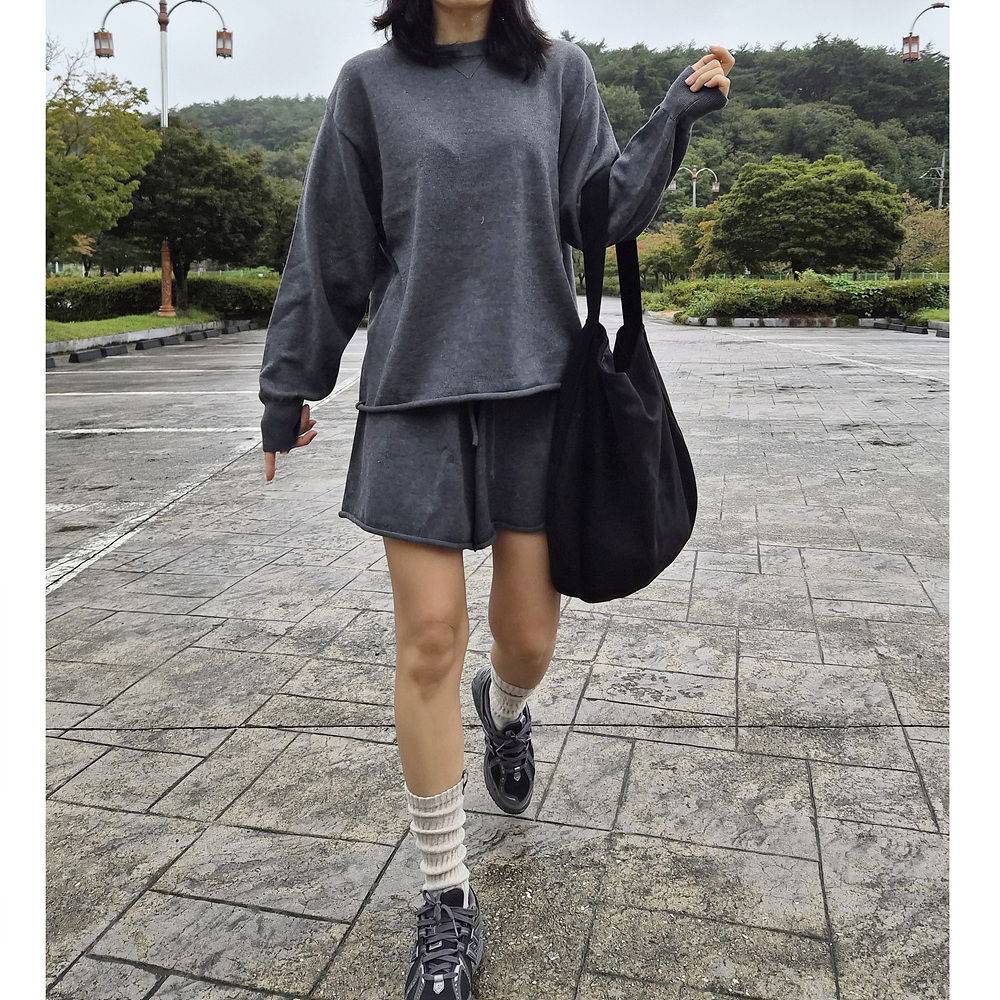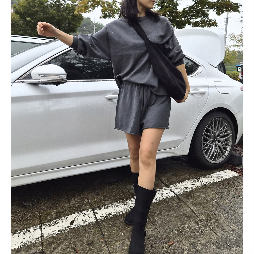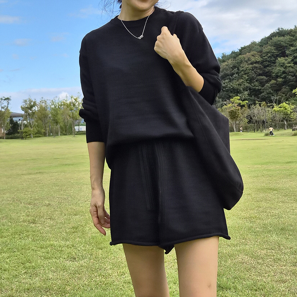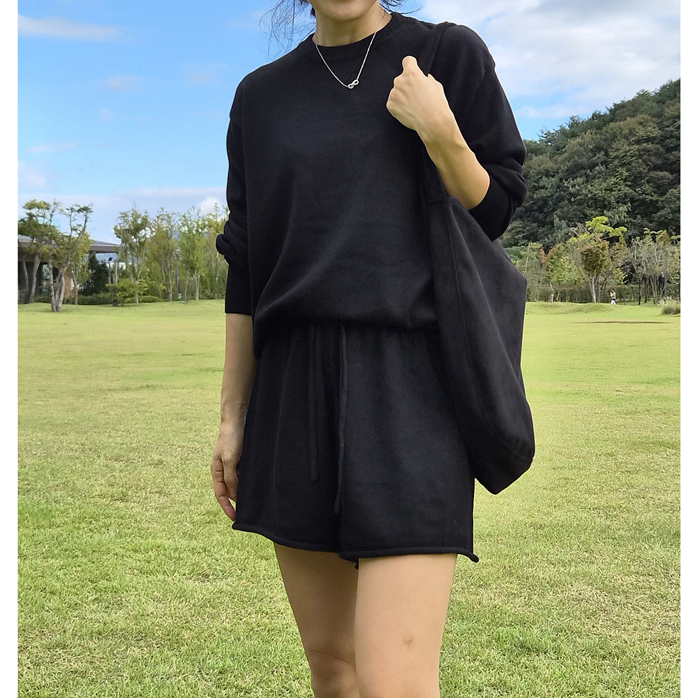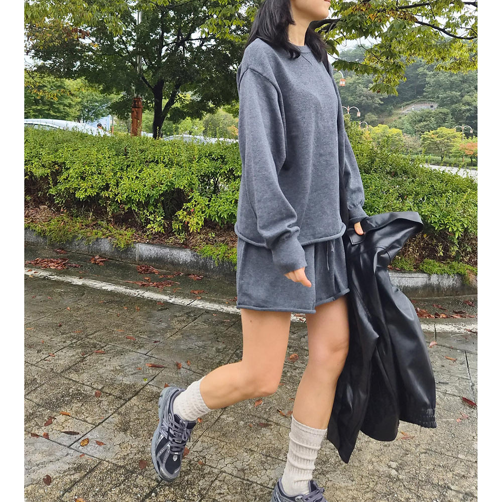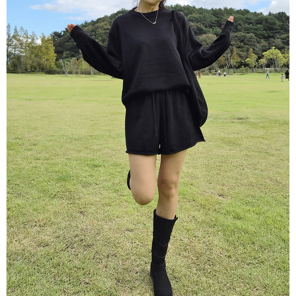 레인 루즈핏 니트와 밴딩 반바지 세트