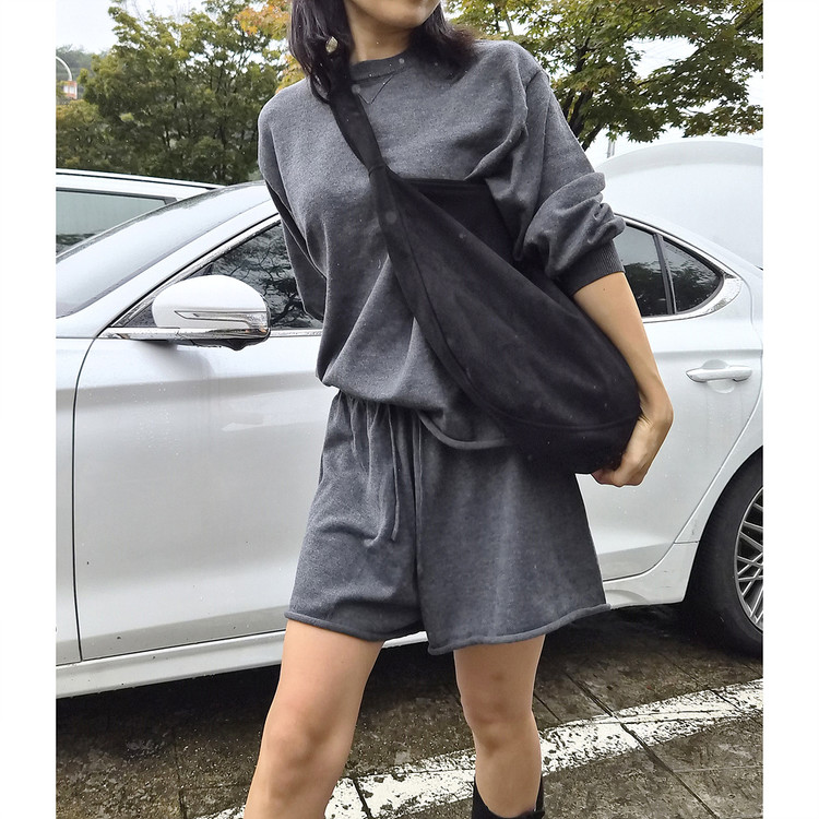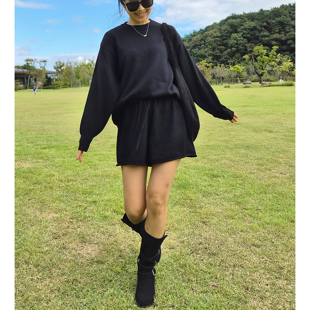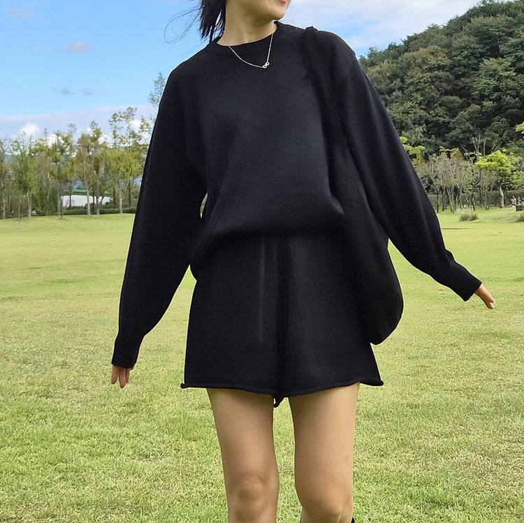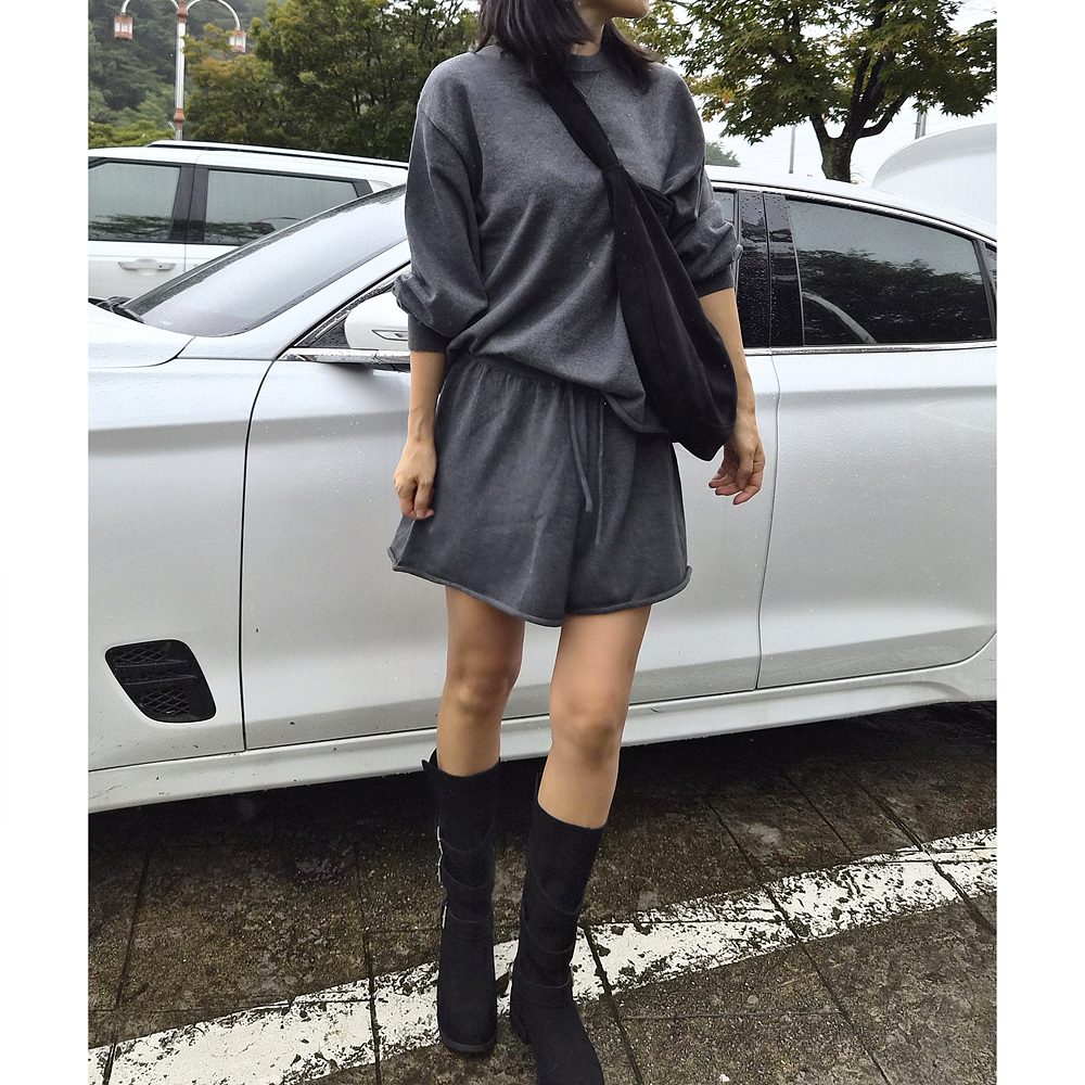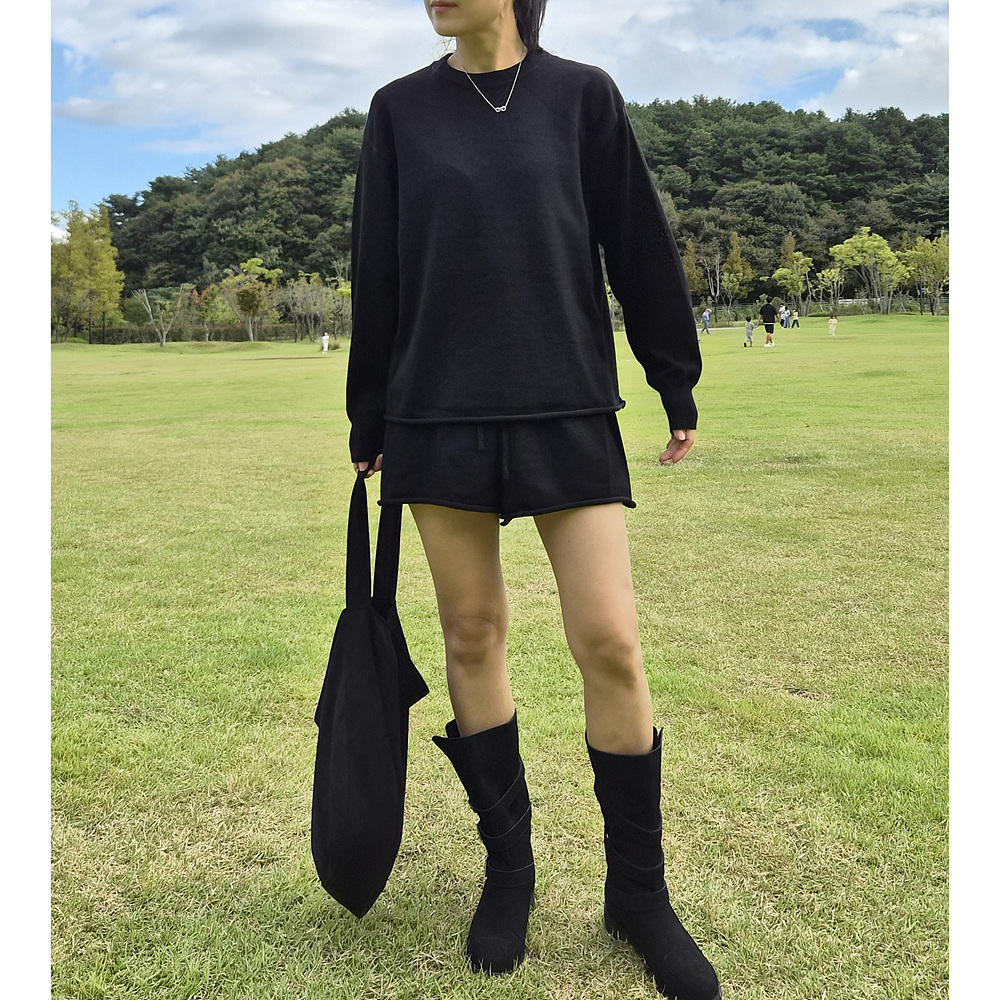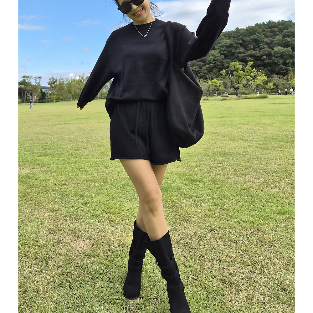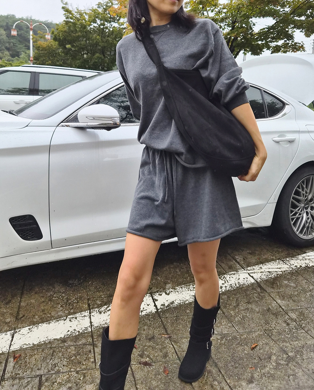 레인 루즈핏 니트와 밴딩 반바지 세트