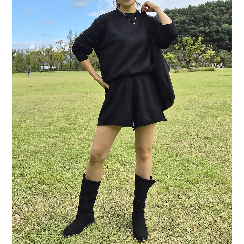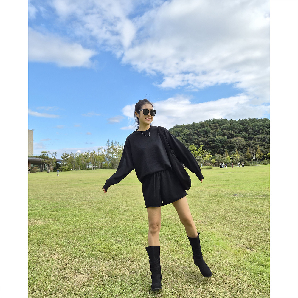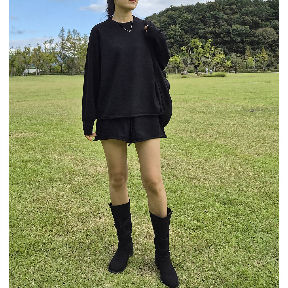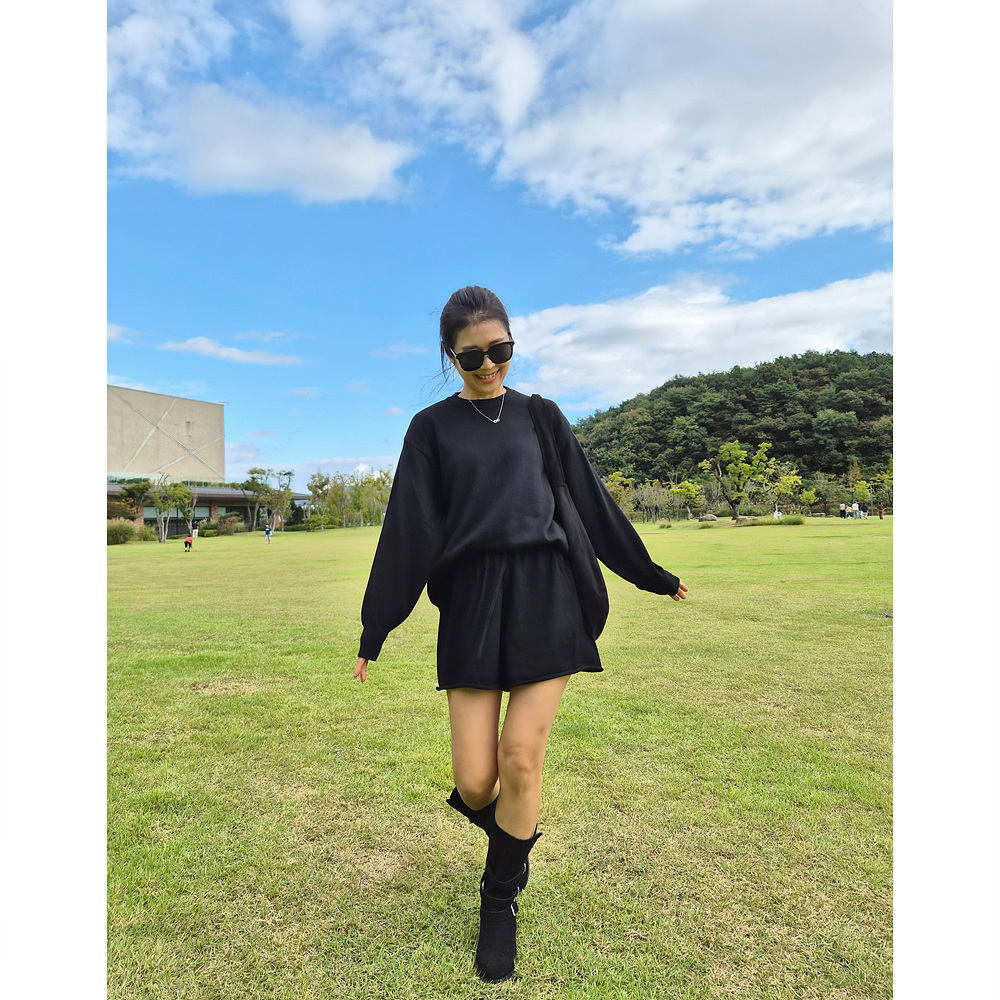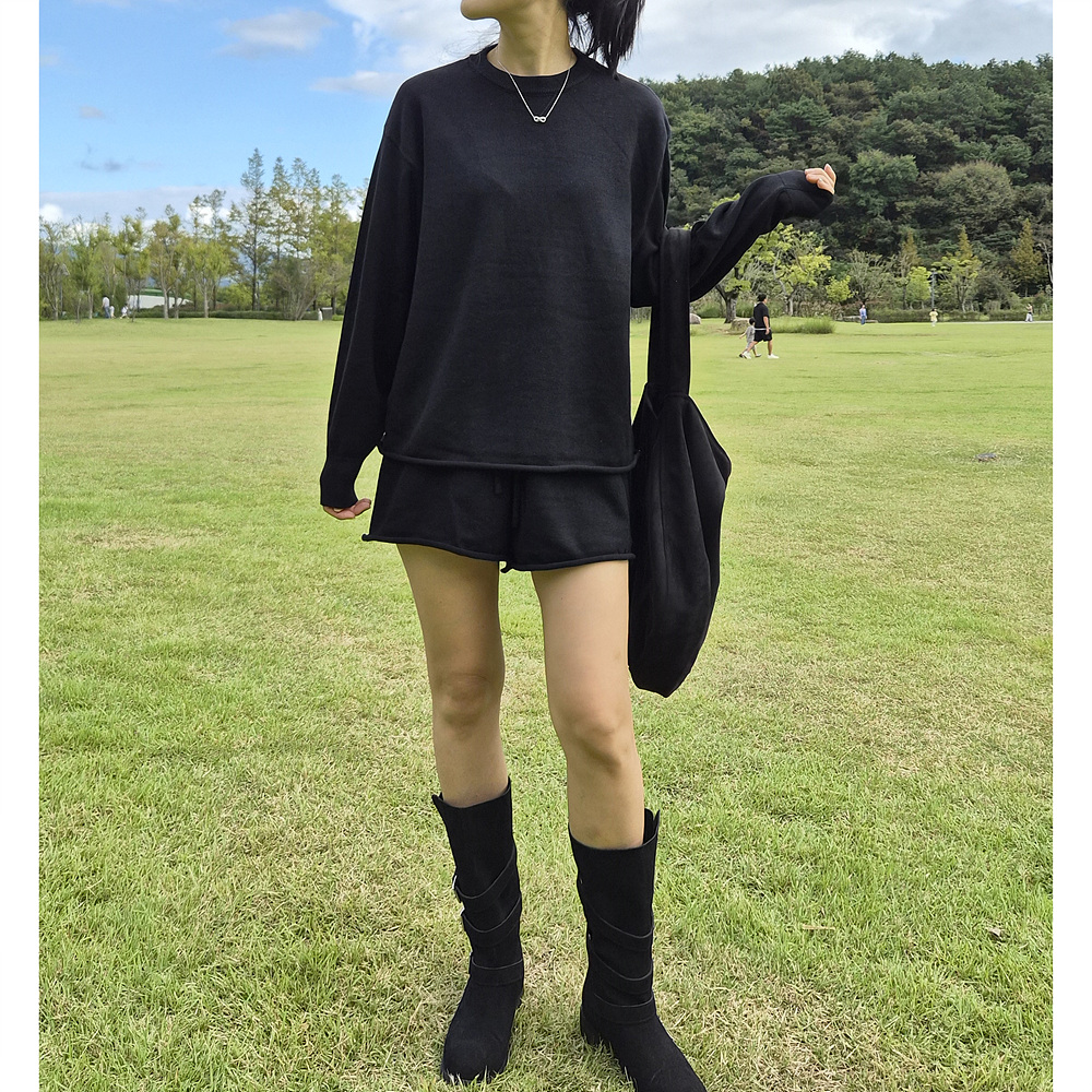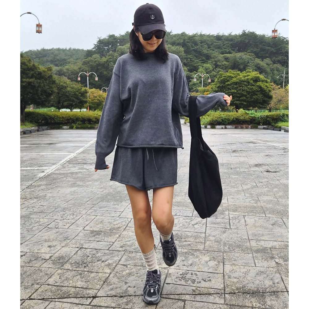 레인 루즈핏 니트와 밴딩 반바지 세트