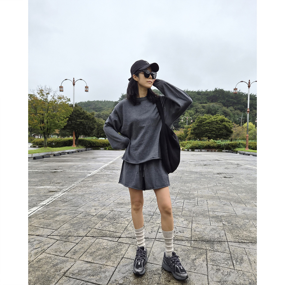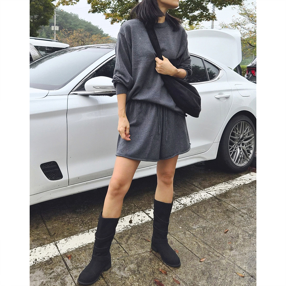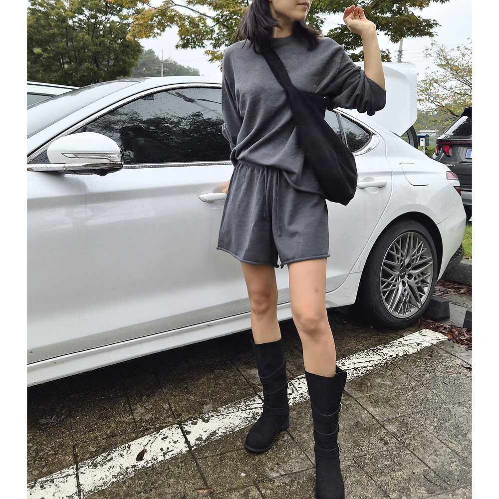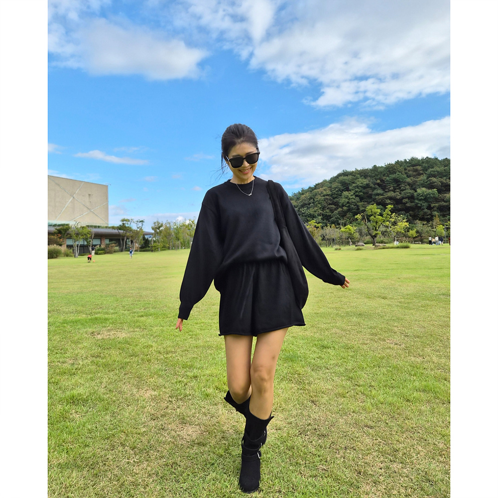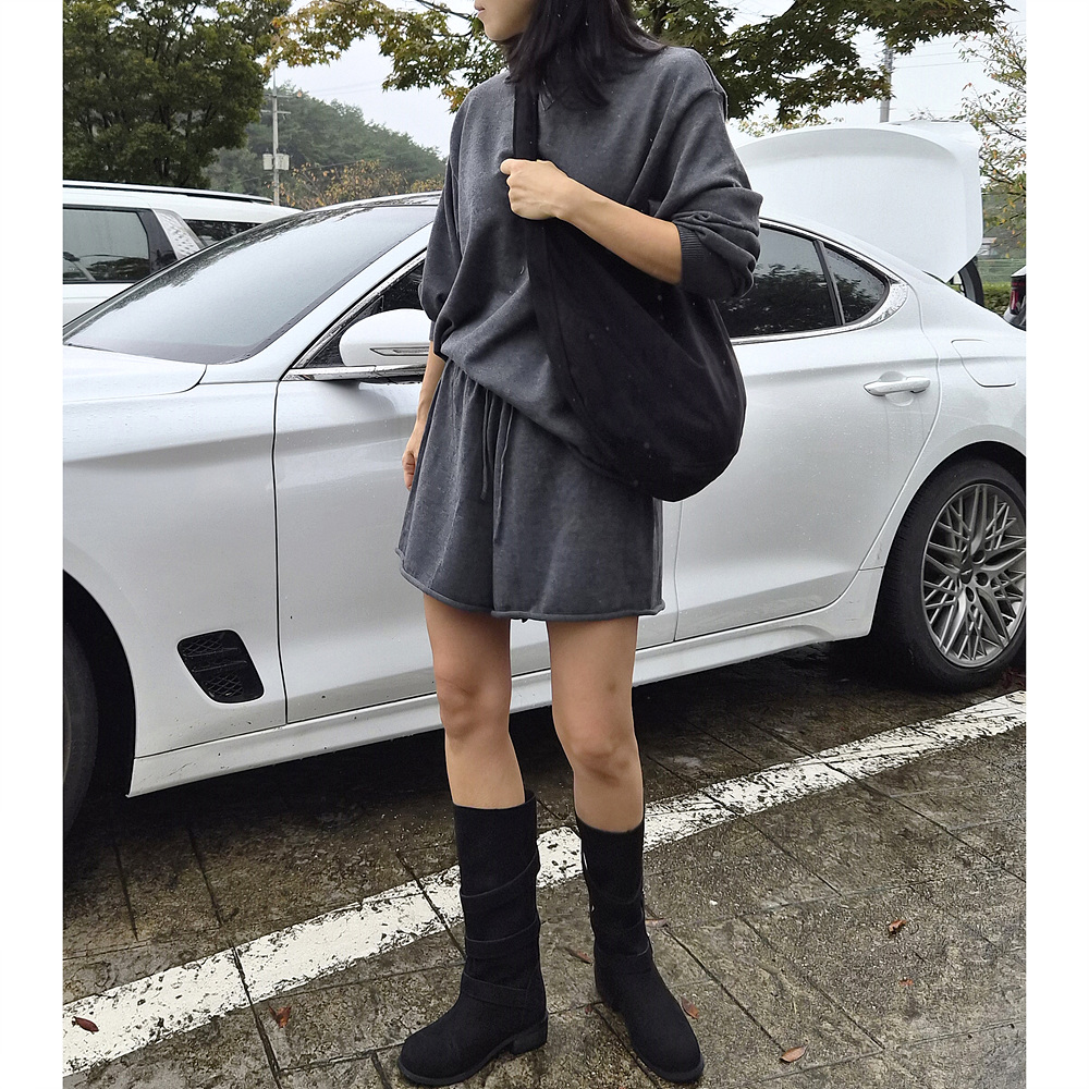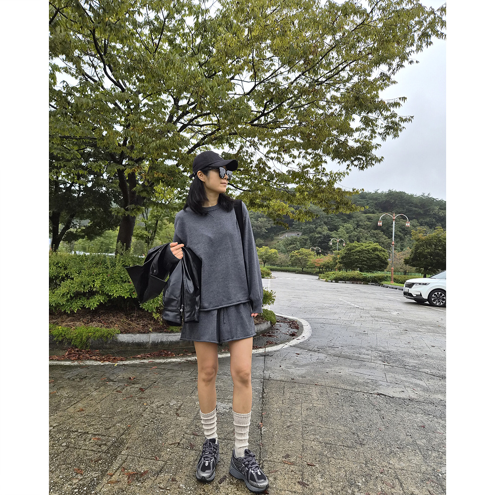 레인 루즈핏 니트와 밴딩 반바지 세트