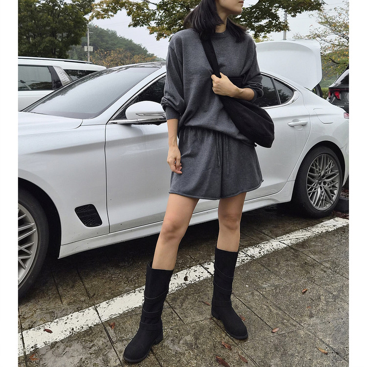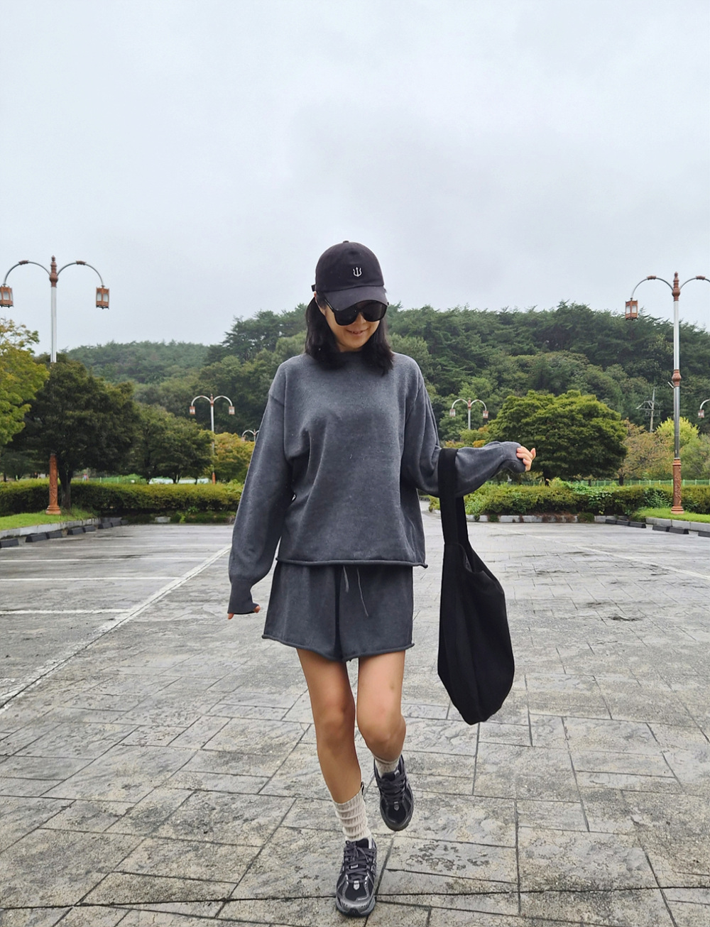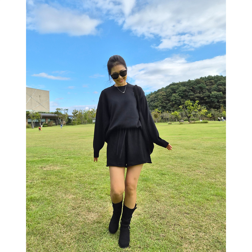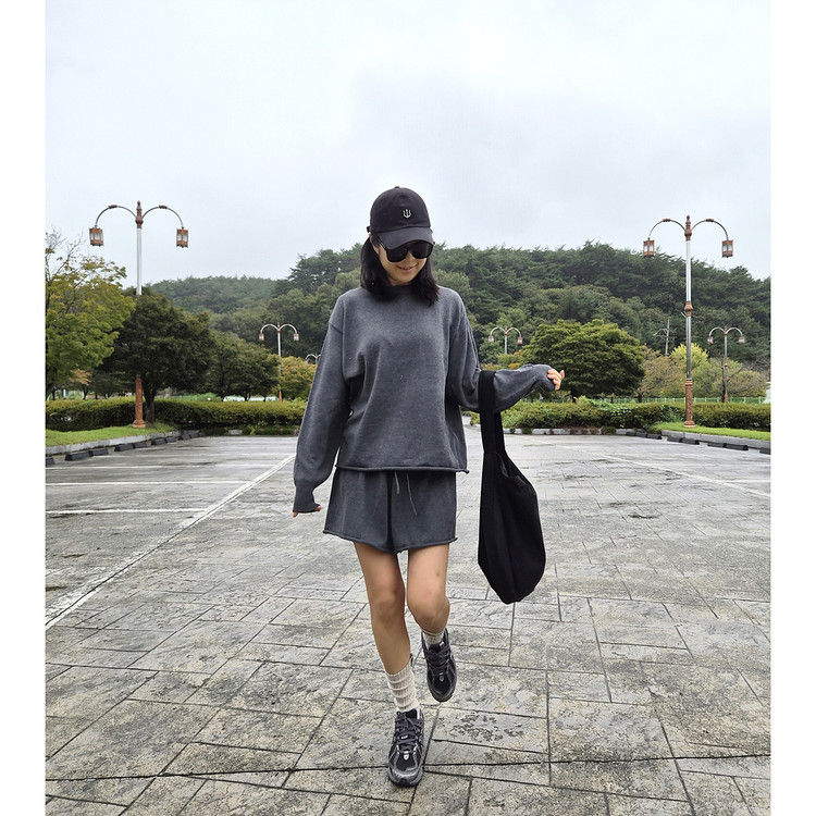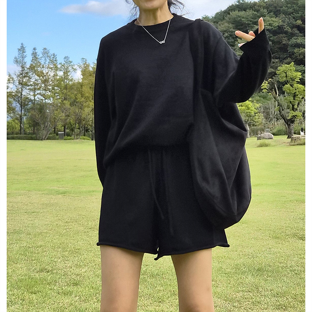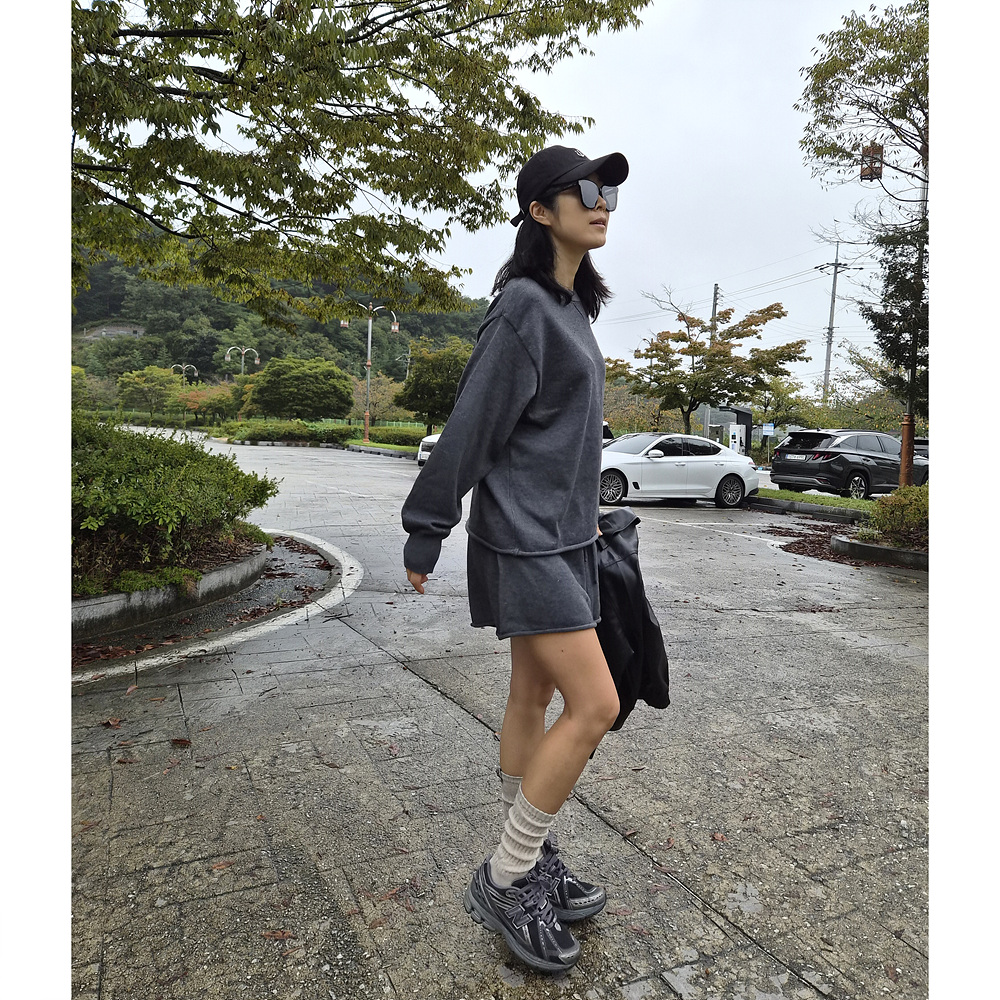 레인 루즈핏 니트와 밴딩 반바지 세트