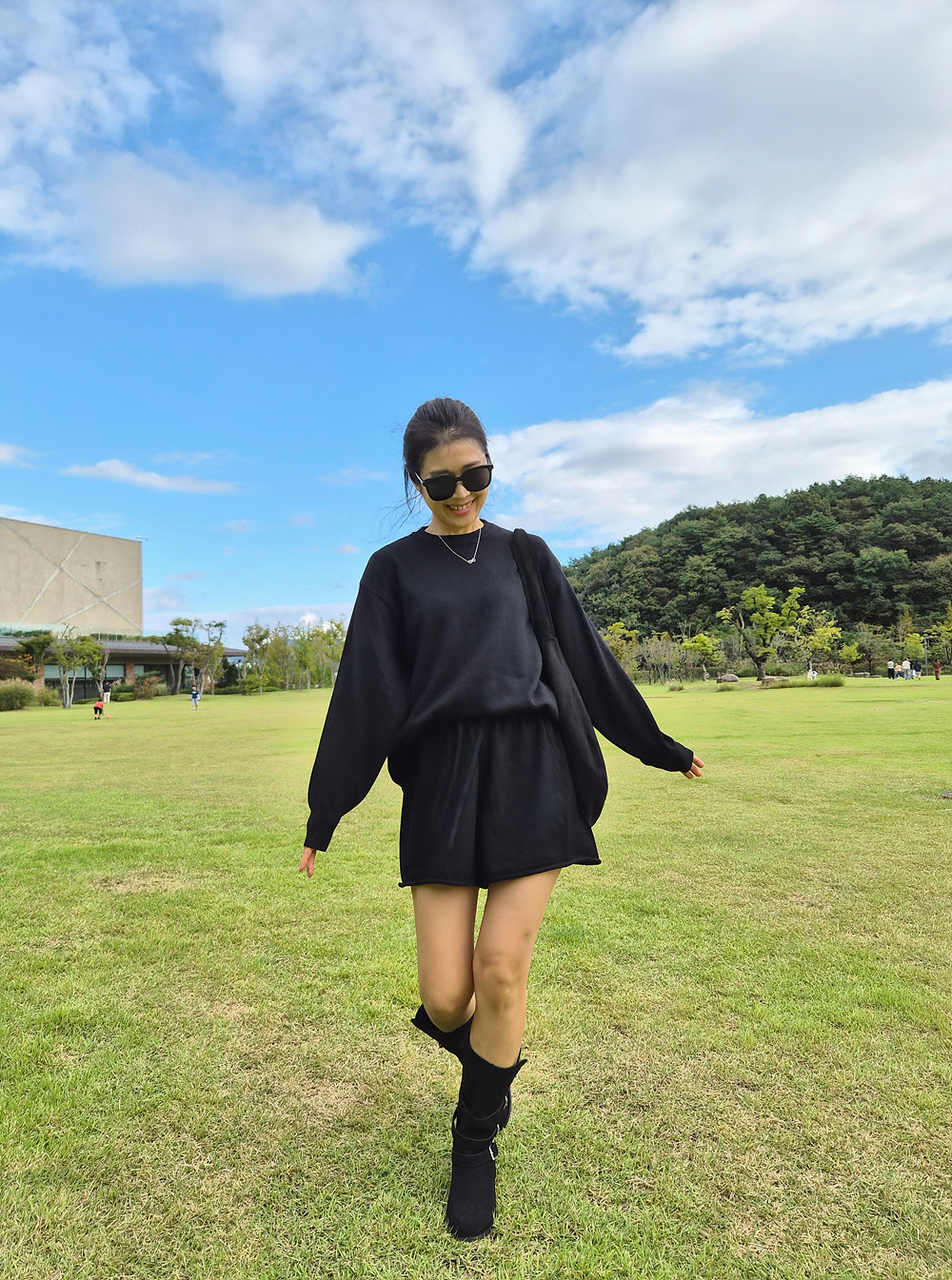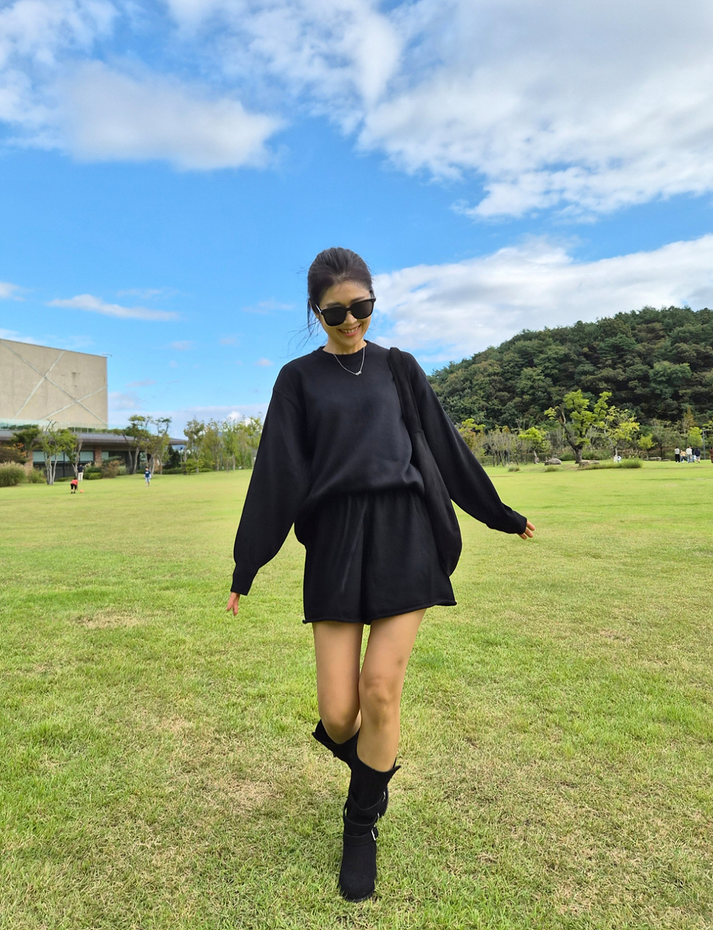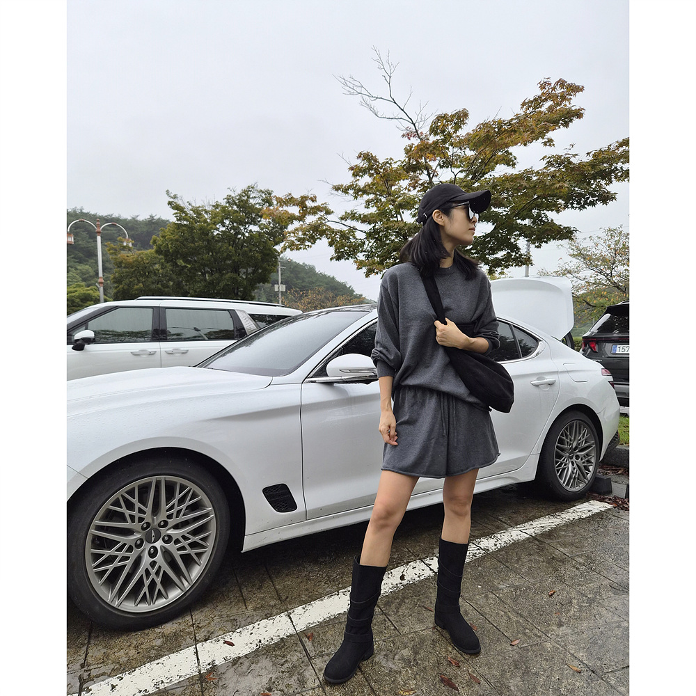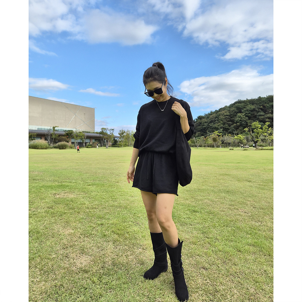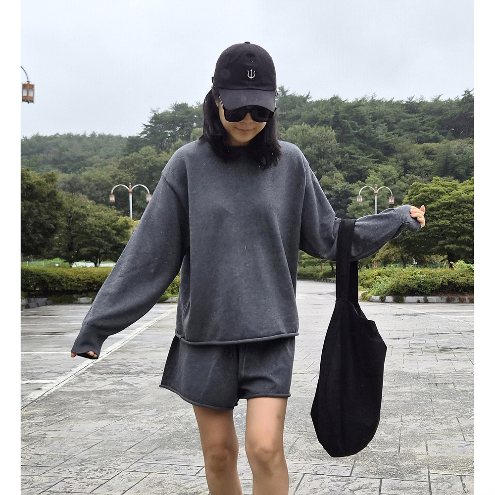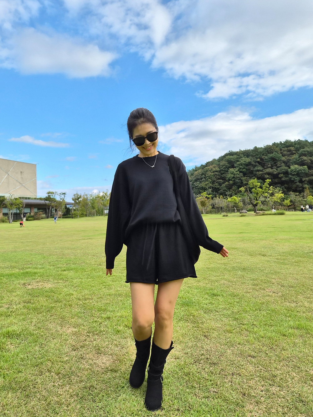 레인 루즈핏 니트와 밴딩 반바지 세트