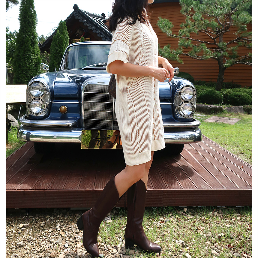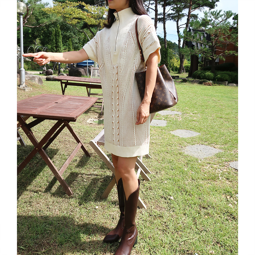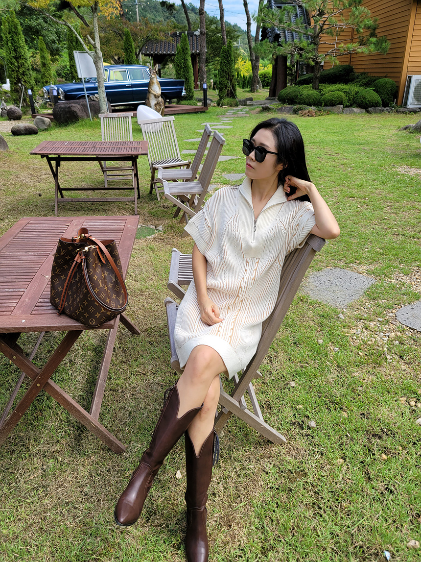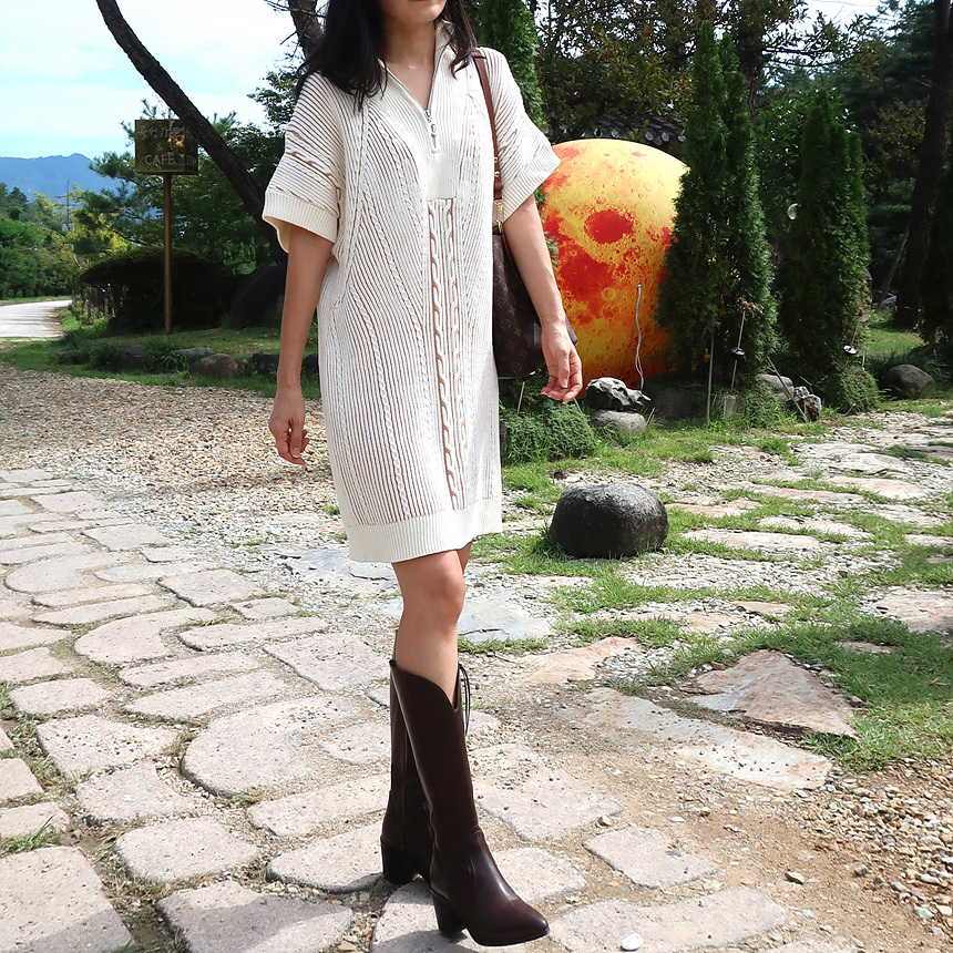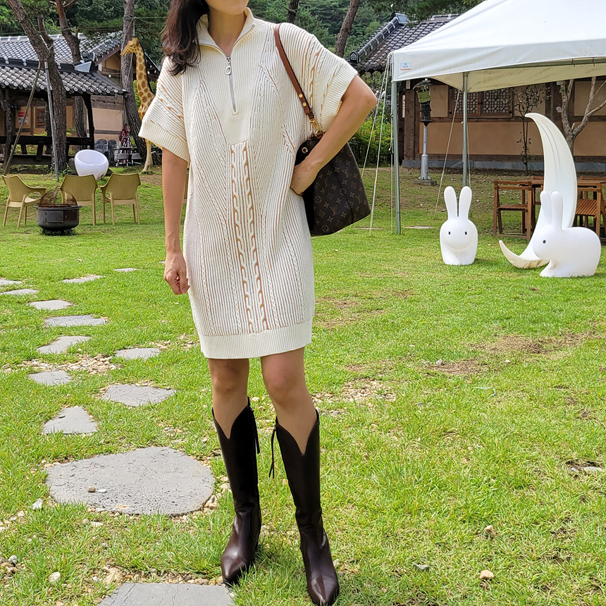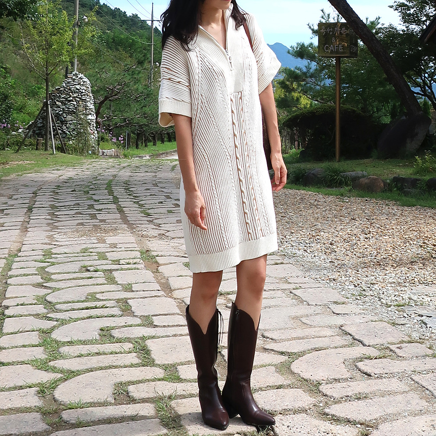 수입 골지 니트 집업 원피스