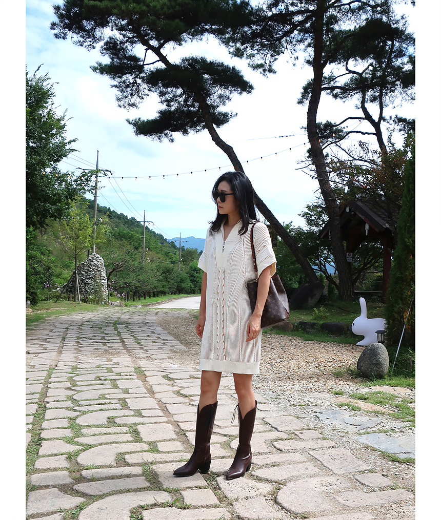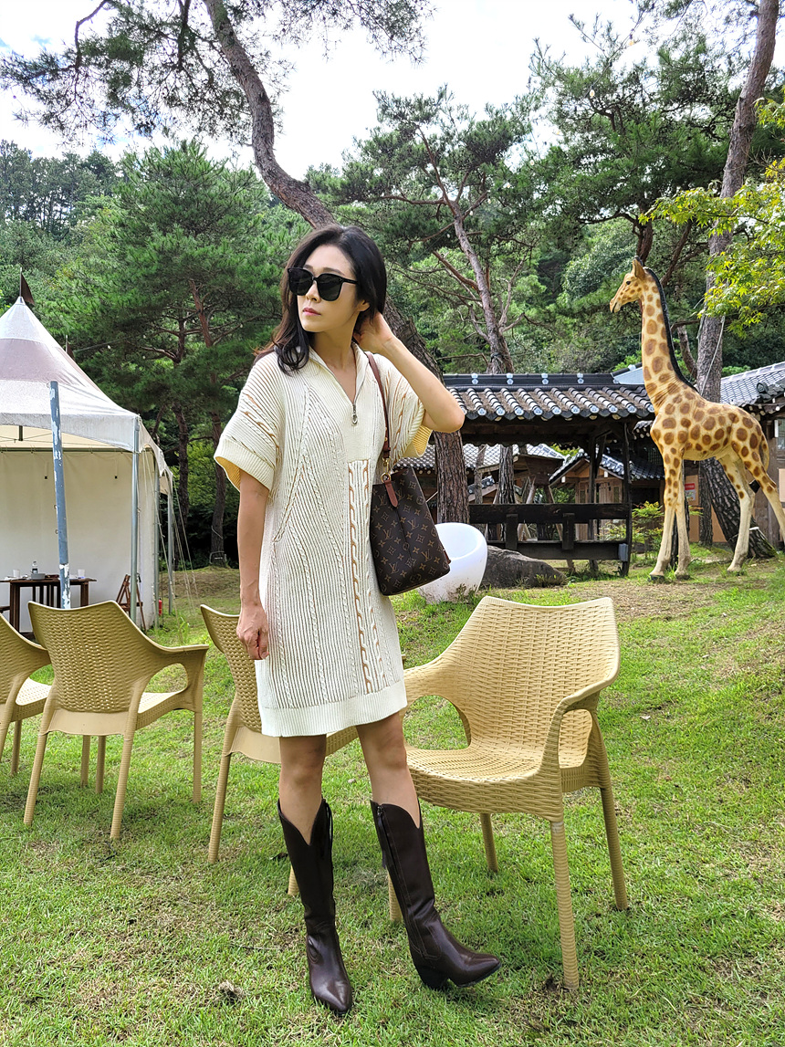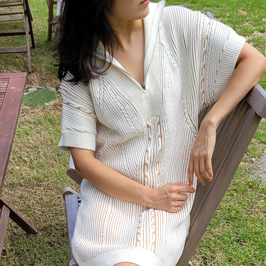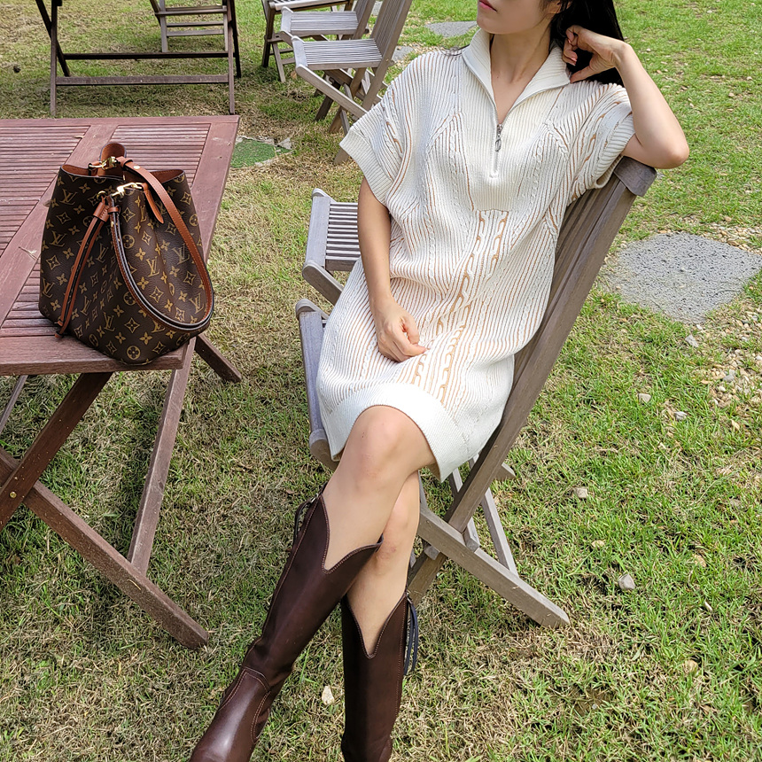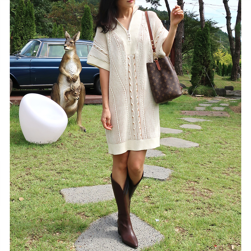수입 골지 니트 집업 원피스