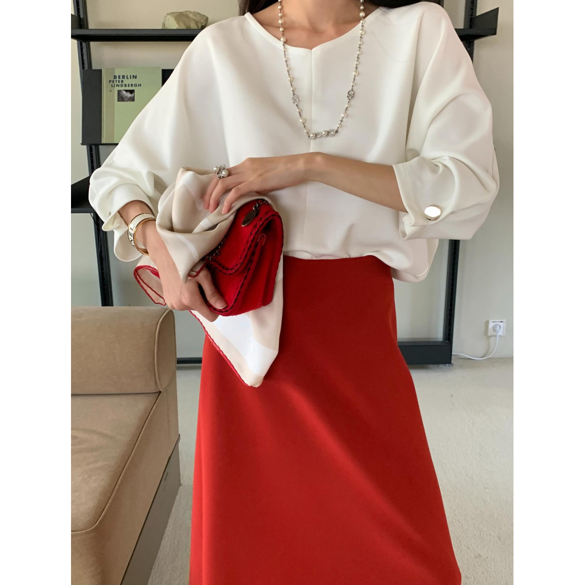 골드 버튼 쿠션 블라우스