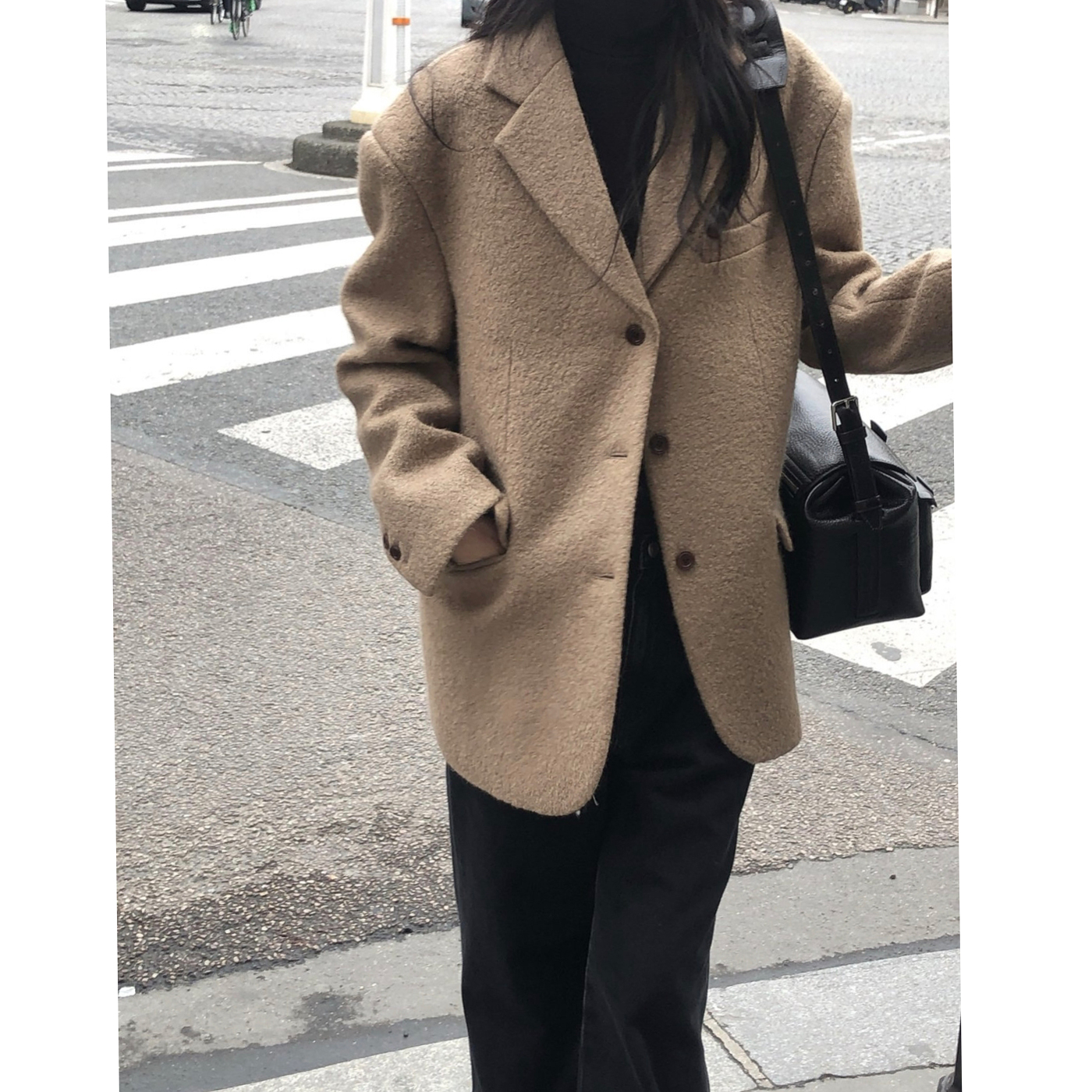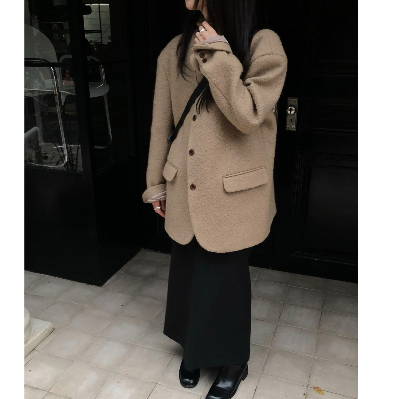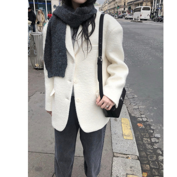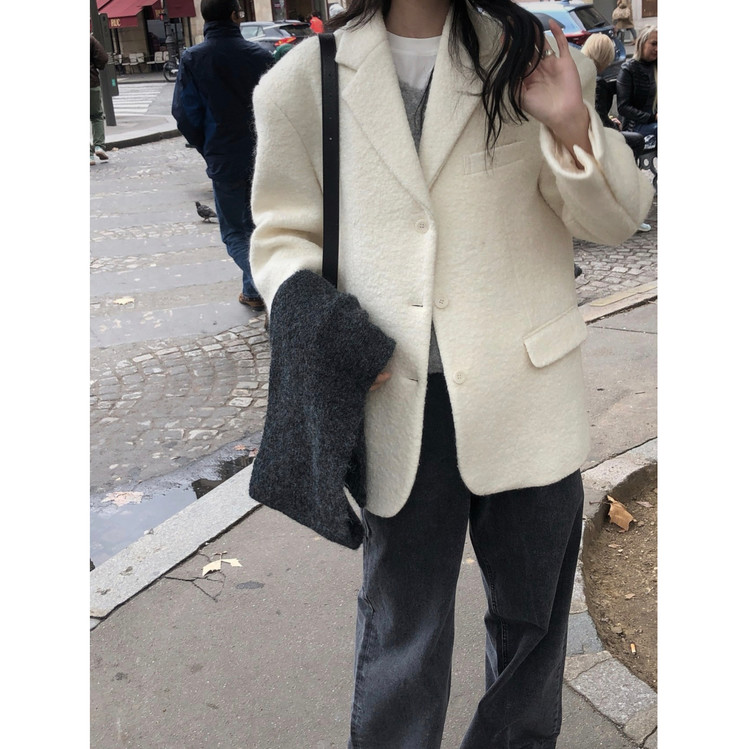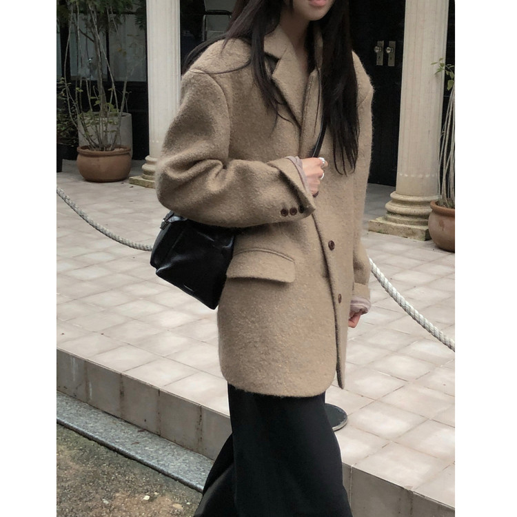 브랜드공정 울 부클 자켓 하프 코트