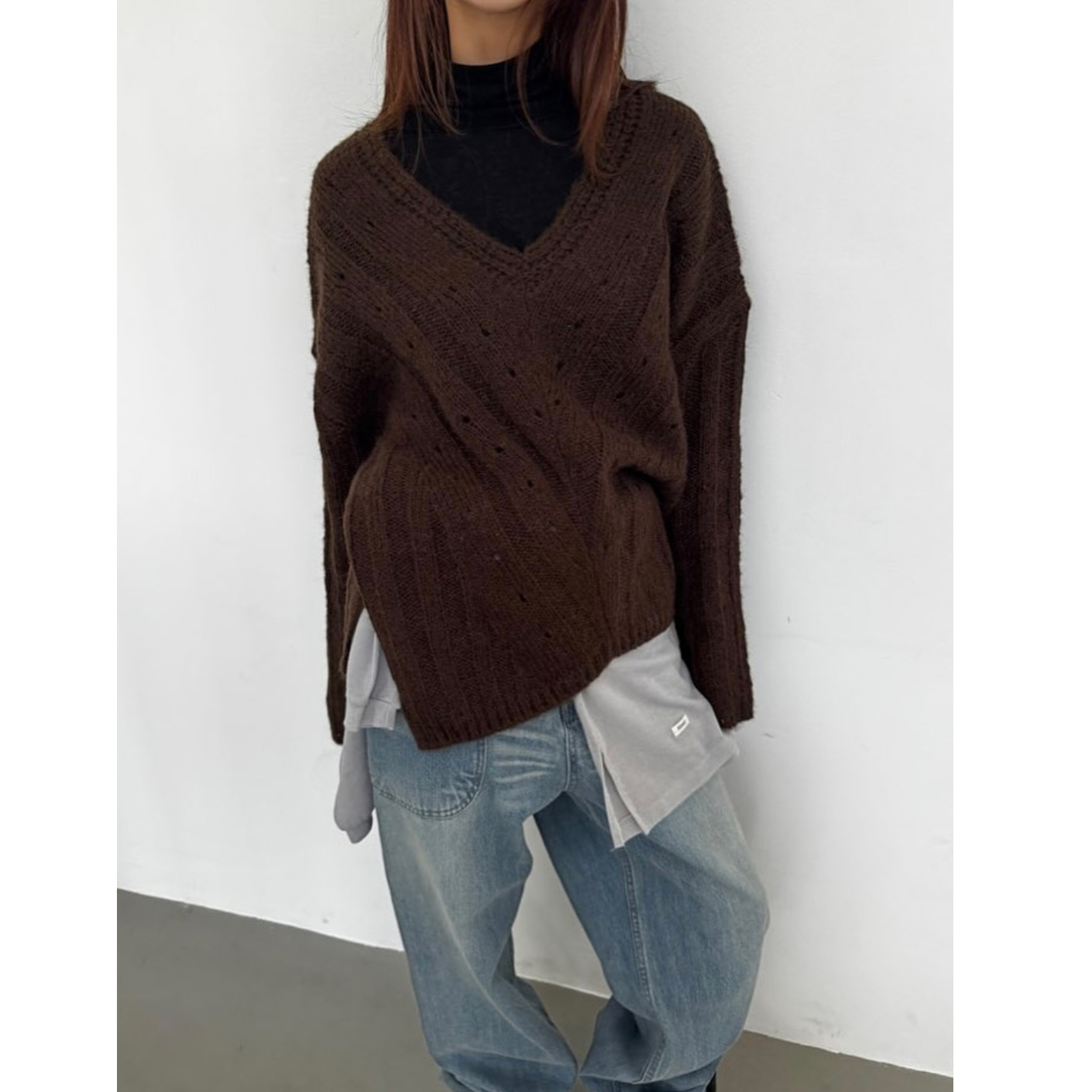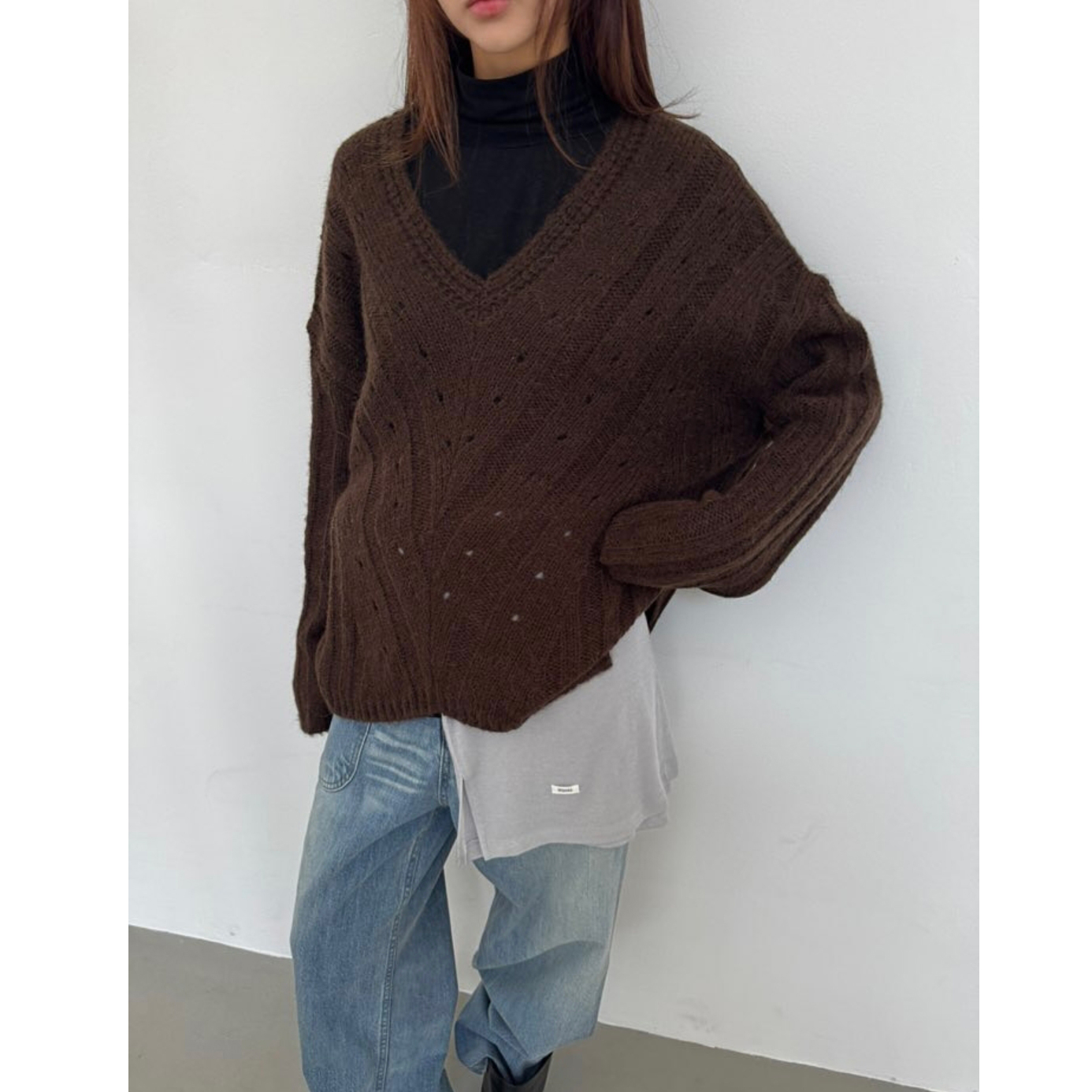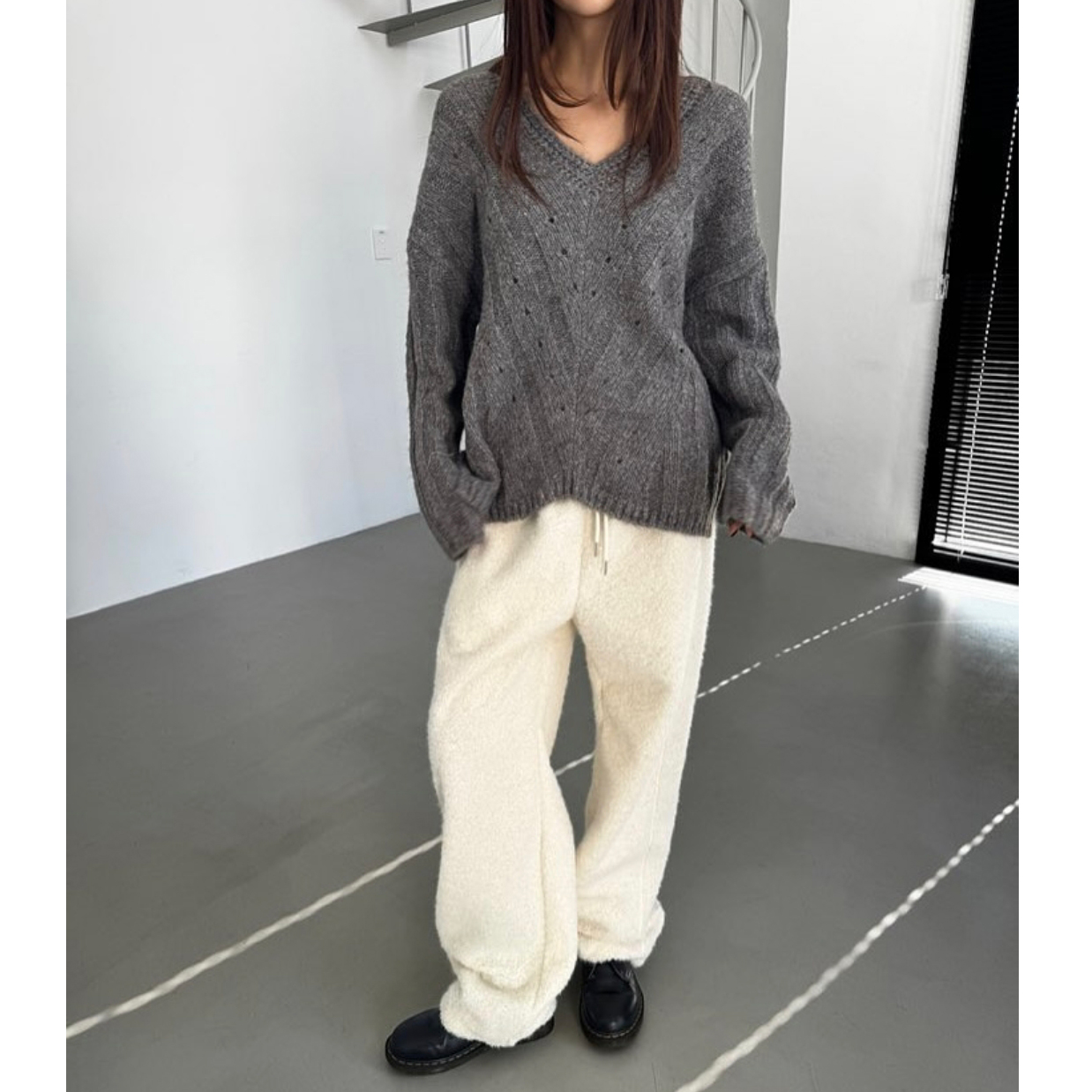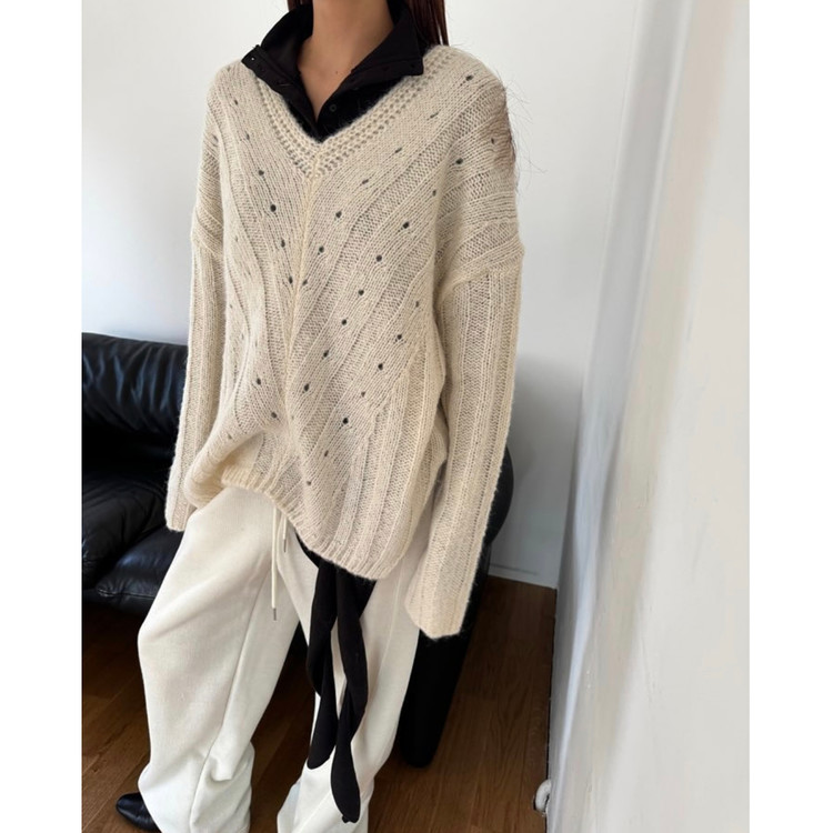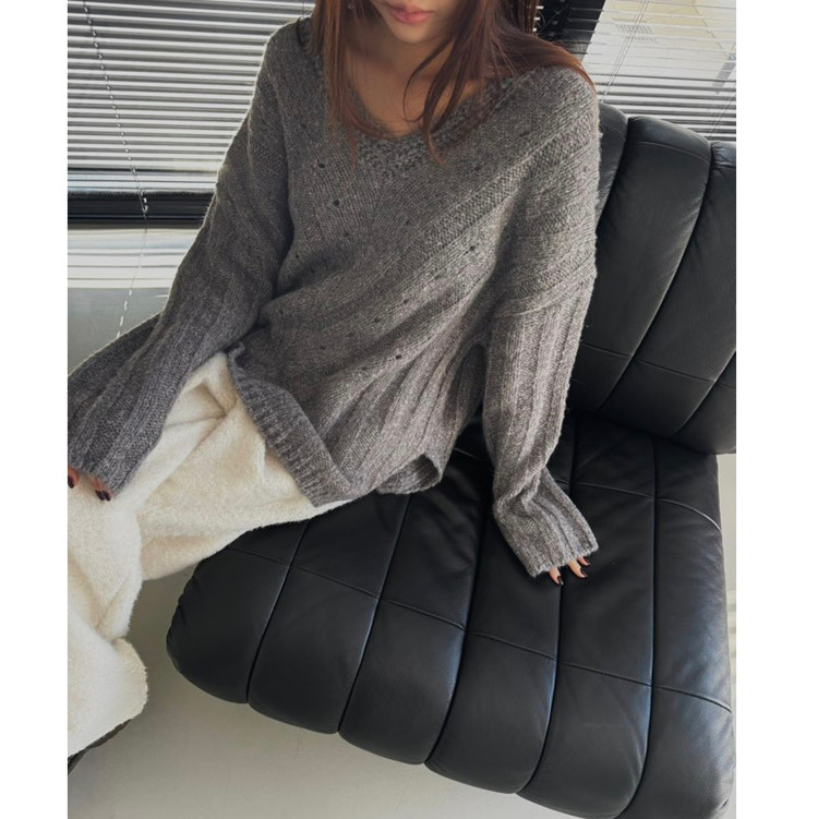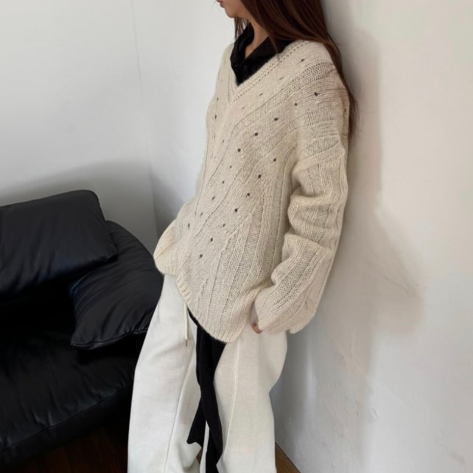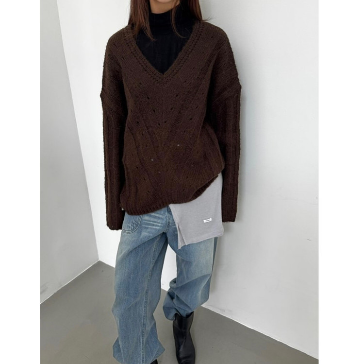 헤리 하이퀄리티 알파카 브이넥 루즈핏 니트