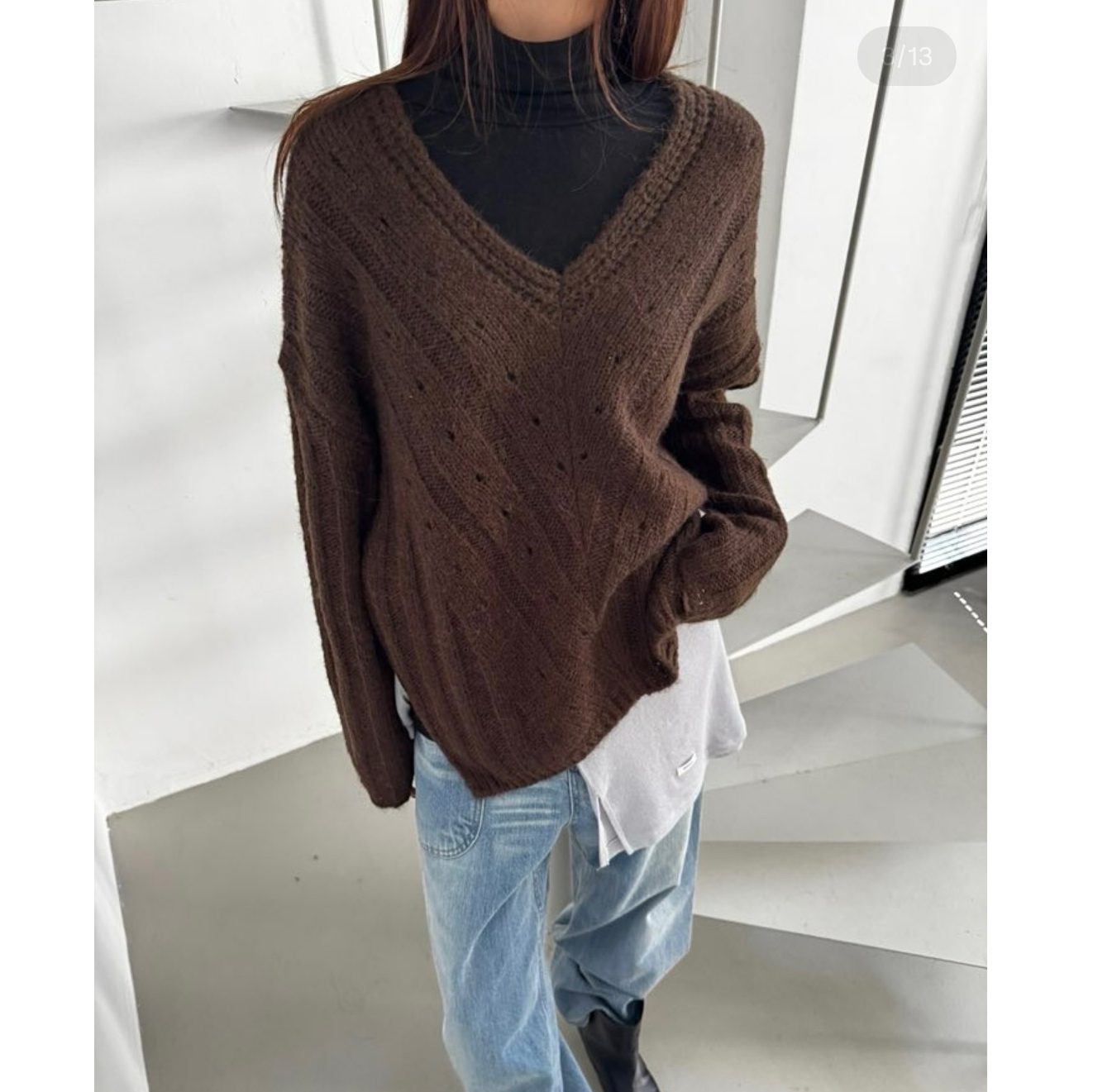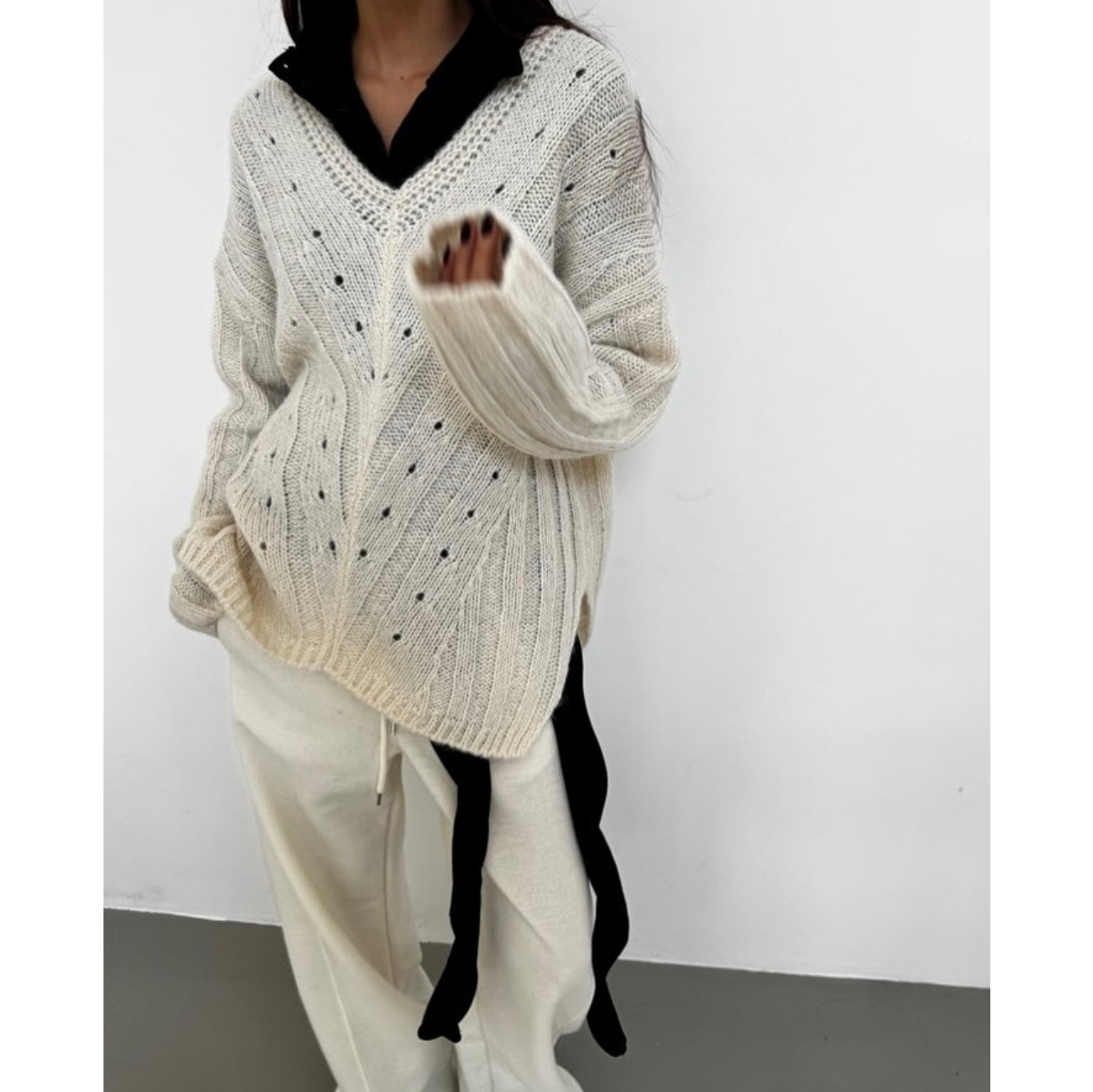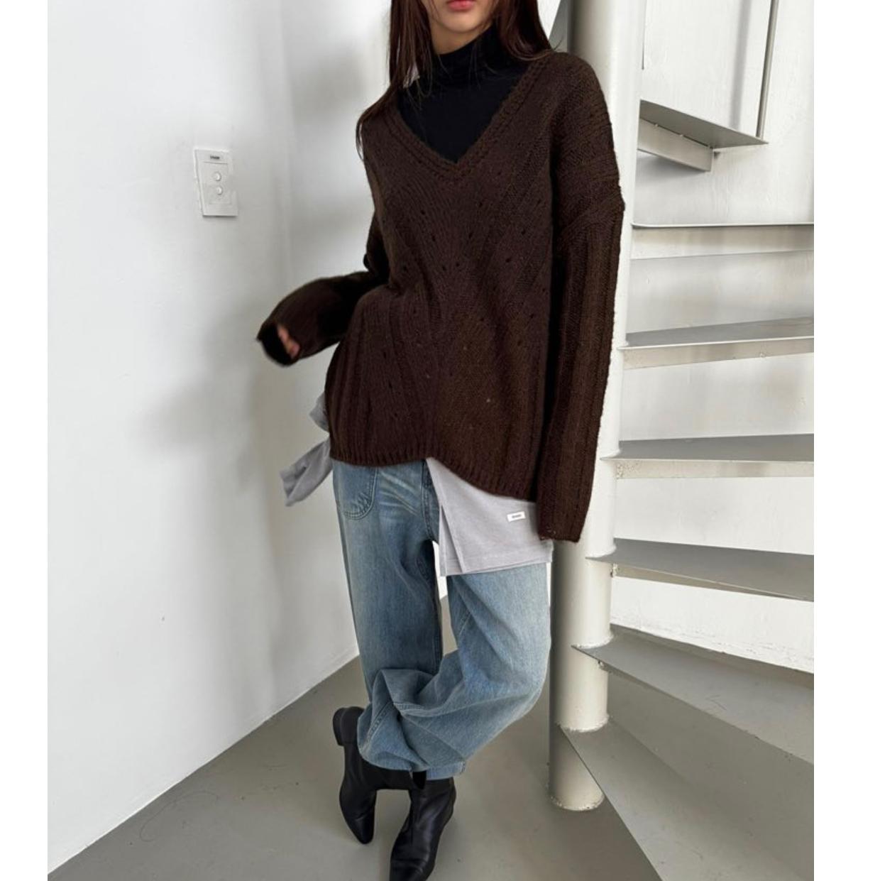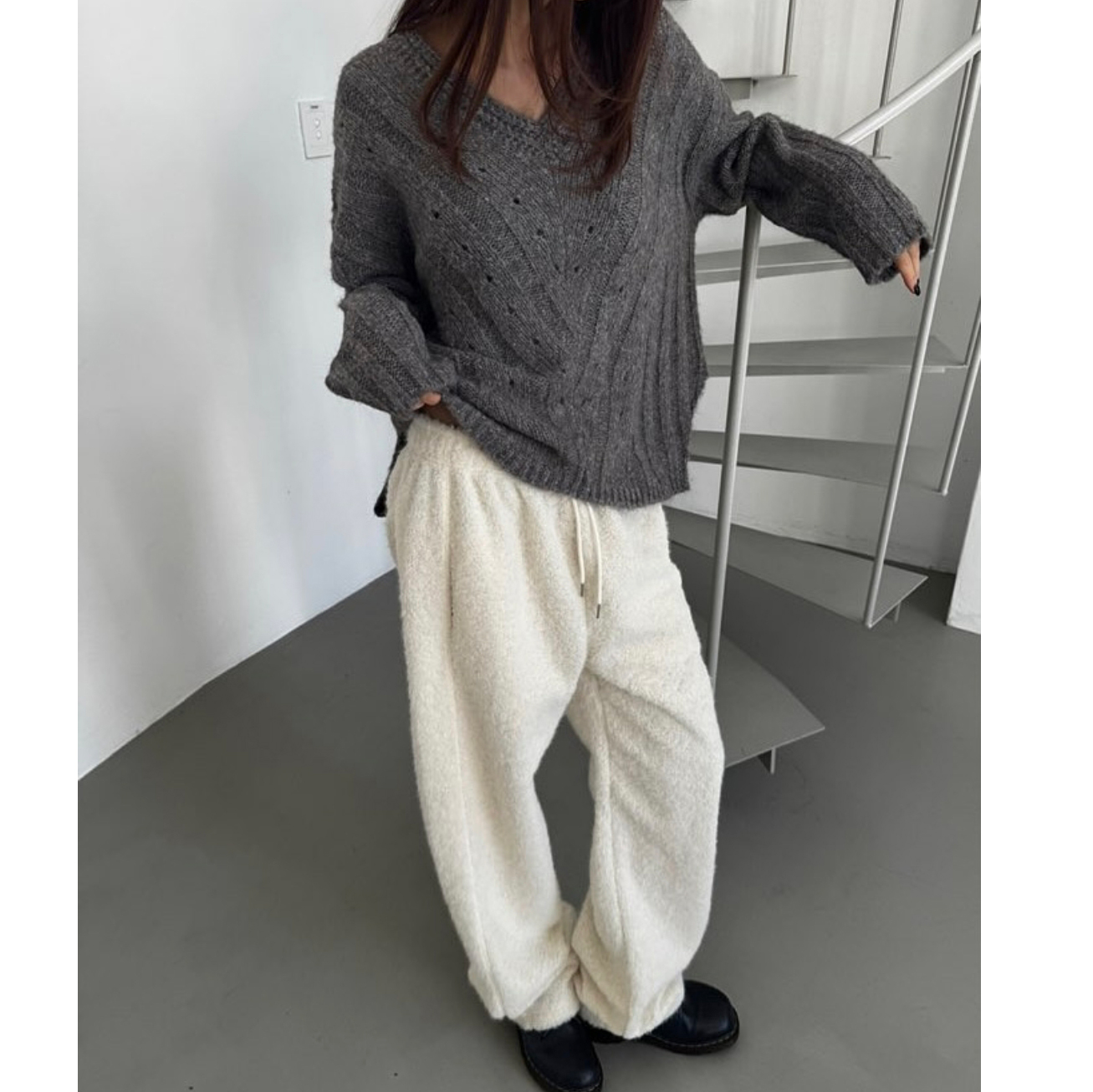 헤리 하이퀄리티 알파카 브이넥 루즈핏 니트